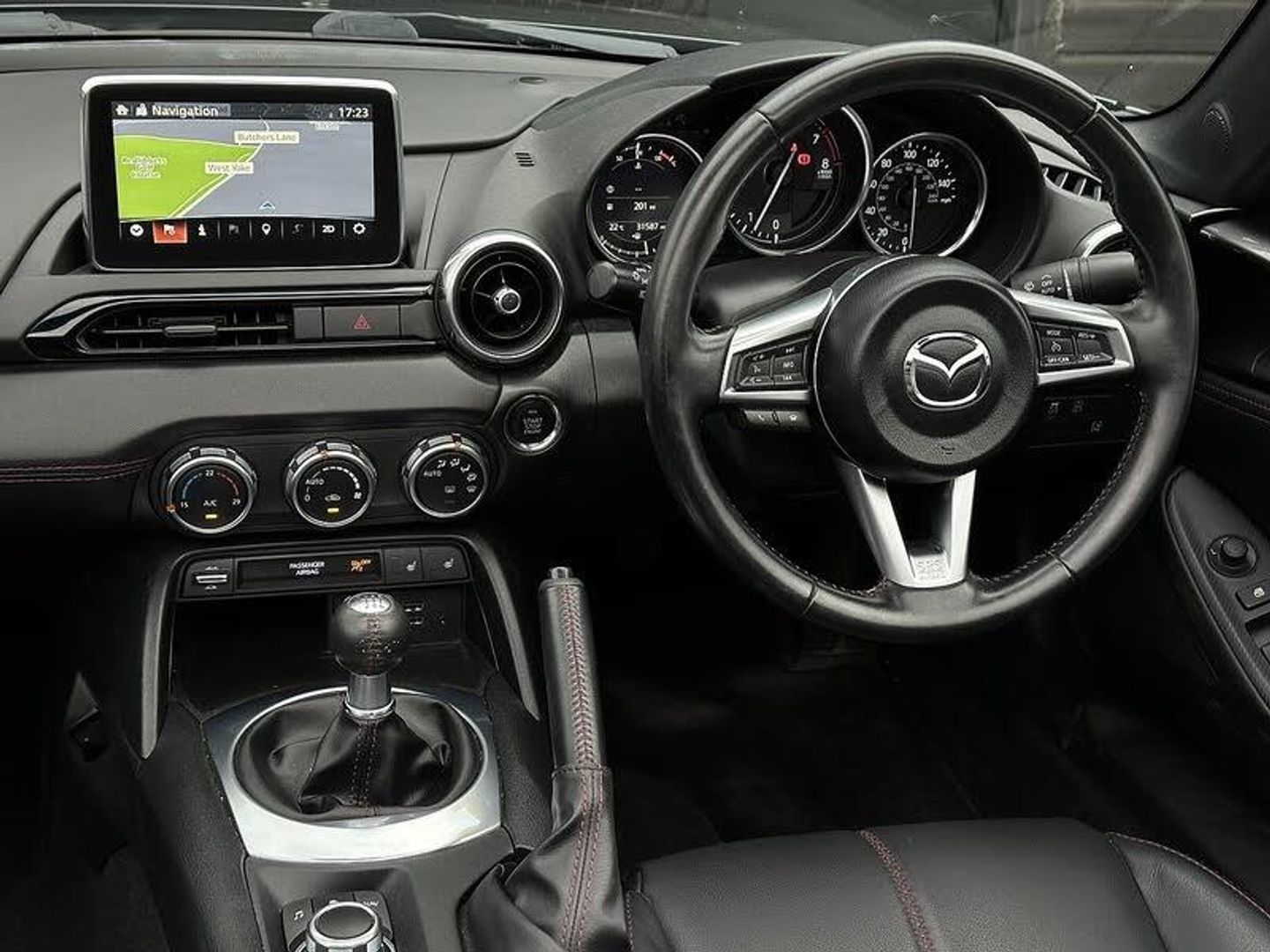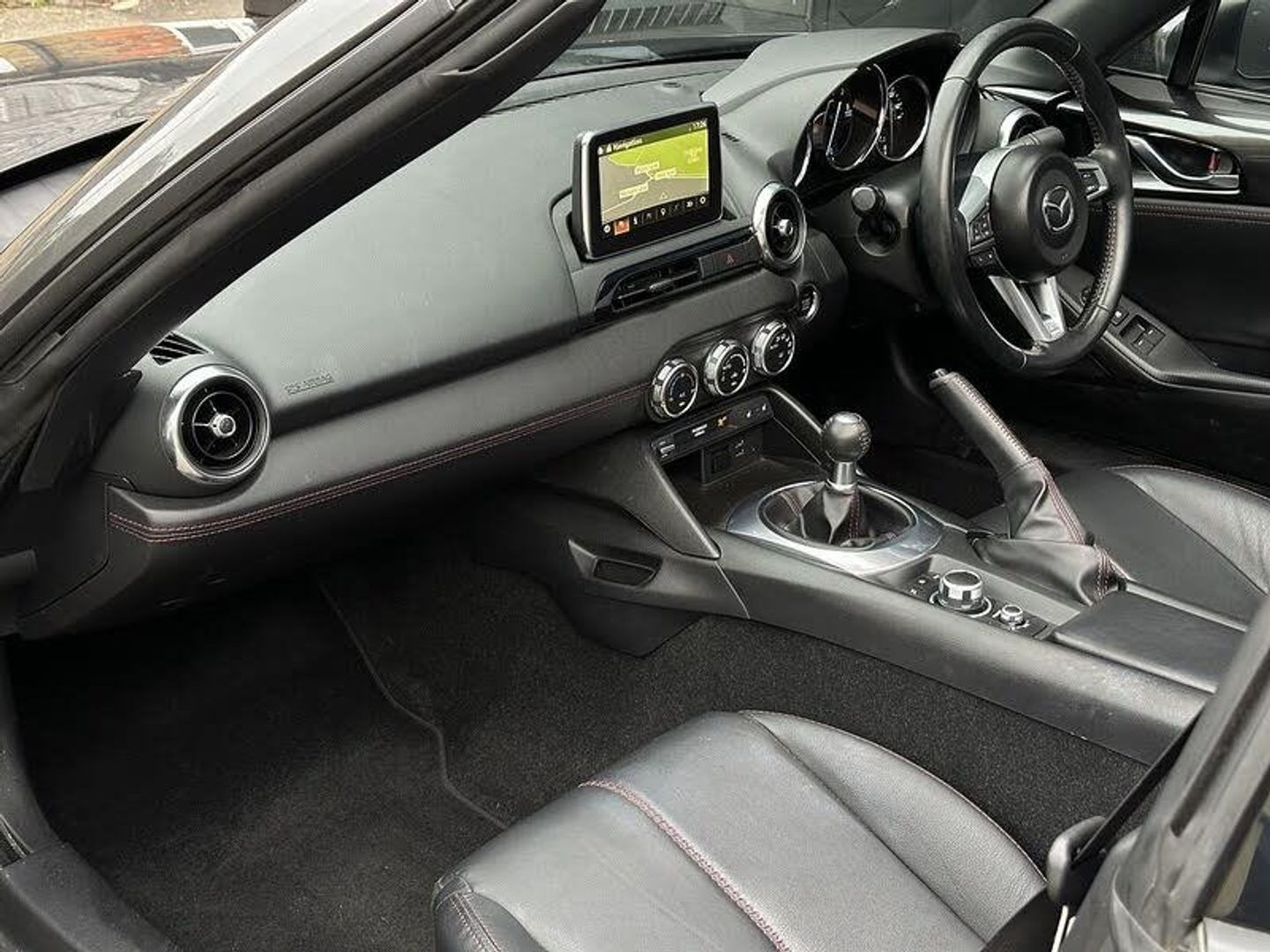 Leather - Black with Red Stitching,Machine Grey, 7in Colour Touch Screen Display, Aha App and Stitcher App Integration, Audio Transfer from Bluetooth Devices, Auxiliary - AUX - and Two USB Input, Integrated Bluetooth, Multimedia System, Satellite Navigation System, USB - iPod Connectivity, Analogue Speedometer, Cruise Control with Manual Speed Adjustment, Lane Departure Warning System, Multimedia Commander, Rear Parking Sensors, Trip Computer, Tyre Pressure Monitoring System, 17in Alloy Wheels - Bright Finish, Body Coloured Door Mirrors, Dual Exhaust System, Electric Windows - One Touch Auto Down, Electrically Adjustable-Heated Door Mirrors, Emergency Tyre Repair Kit, Fashion Bar Cladding, Fuel Filler Lid - Body Colour, Hardtop - Power Retractable, Windblocker, Dusk Sensing Automatic Headlights, Headlights - Adaptive Front Lighting System, Headlights - Coming-Leaving Home, Headlights - LED with Auto Headlight Levelling, LED Daytime Running Lights, Rear Brake Light - High Mounted, Air Conditioning - Climate Control, Air Conditioning Dials - Chrome, Air Vent Surrounds - Chrome, Auto Dimming Rear View Mirror, Chrome Meter Rings, Coinbox, Cupholder - Front x2, Engine Start-Stop Button, Gear Knob - Leather with Chrome Surround, Handbrake - Leather Wrapped, Heated Seats, Inner Door Handles - Chrome, Interior Upper Door Trim - Body Coloured, Rain-Sensing Front Wipers, Seats - Drivers Manual Slide-Recline and Tilt Adjustment, Seats - Front Passenger Manual Slide and Recline Adjustment, Side Door Trim - Black with Red Stitching, Steering Wheel - Leather, Steering Wheel - Mounted Audio and Bluetooth Controls, Steering Wheel - Tilt Adjustment, Storage - Rear Centre Box with Lockable Lid, Sunvisors - Drivers and Passengers with Covered Vanity Mirror-Ticket Holder, Adjustable Speed Limiter, Double Pinion Electric Power Assisted Steering - DP-EPAS, Sports Suspension, Automatic Passenger Airbag Deactivation System, DHS - Deployable Hood System, Driver and Passenger Front Airbags, Dynamic Stability Control - DSC - with Traction Control System - TCS, Four-Wheel Anti-Lock Braking System - 4W-ABS with Electronic Brake-Force Distribution - EBD, Hill Hold Assist, ISOFIX Child Seat Anchorage - Passenger Seat, LSD - Limited Slip Differential, Remote Central Locking with Deadlocking and Remote Boot Release, Seatbelts - 3 Point - ELR - 2x with Pre-Tensioners, Seatbelts - Reminder Screen with Audible Warning, Side Airbags, SKYACTIV-Body Engineered Triple H Body Structure to Help Protect Occupants from Impact Forces, Smart Keyless Entry, SRS - Supplementary Restraint System, Thatcham Category 1 Alarm and Immobiliser