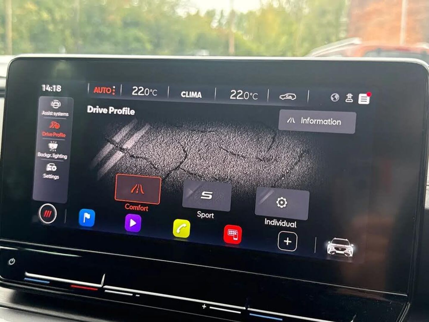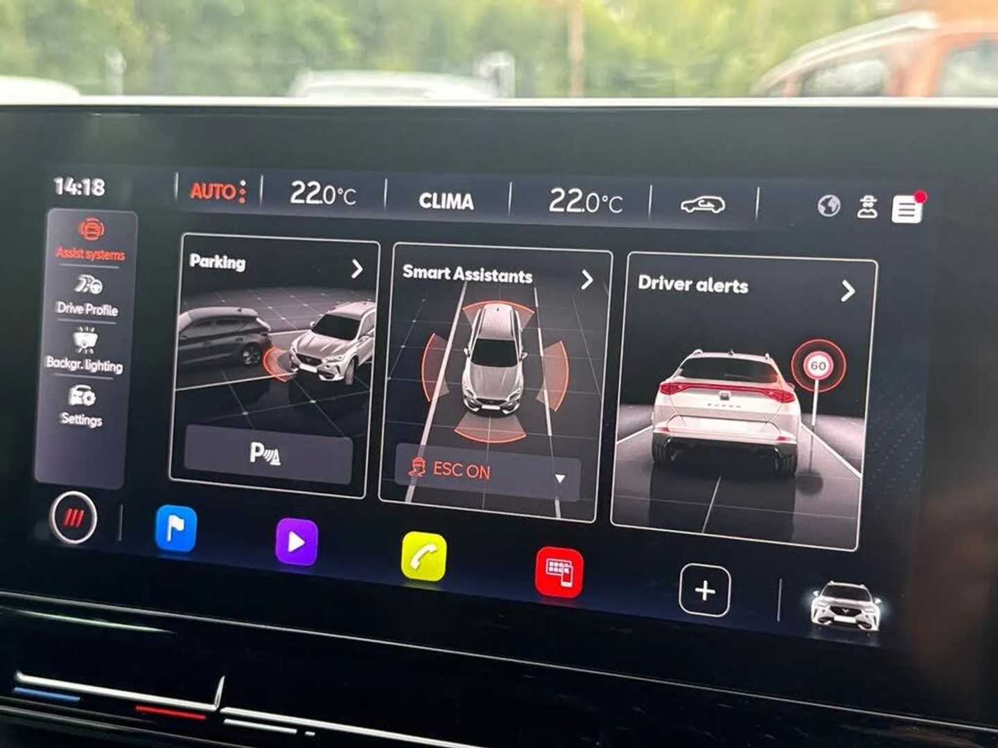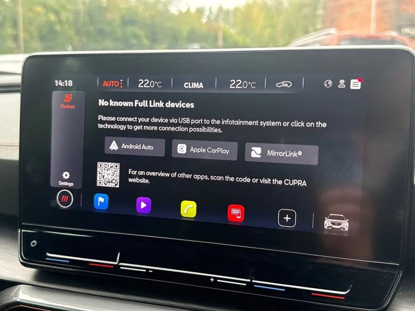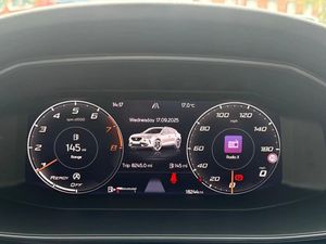 Digital cockpit and configurable dashboard,Driver alert system,Driving profile selection,Forward collision warning with automatic braking,Lane assist,Navigation system with 12'' Touchscreen Display,PAS,Predictive adaptive cruise control with speed limiter,Rear parking sensors,RPM, trip computer, outside temp gauge, instrument light brightness, low fuel warning light, lights on reminder, gearshift indicator,Service interval indicator,Start/stop system with regenerative braking,Voice control system,Wired Android Auto,Wireless apple carplay,Wireless phone charger,Electronic locking differential and dynamic traction support,Standard suspension,2 front and 2 rear USB type C sockets,Auxiliary input socket,DAB radio,Auto dimming rear view mirror,Body colour door handles,Body coloured bumpers,Dark grey wing mirror,Daytime running light with automatic headlight control and coming home feature,Dynamic headlight range control,Electric front/rear windows,Electrically adjustable, heated and folding door mirrors,Front fog lamps with cornering function,Gloss black roof rails and window surrounds,LED Headlights,LED Taillights with dynamic indicator,Rain sensing wipers,Rear diffuser with black simulated exhaust pipes,Rear side wing doors,Rear wash/wipe,Third brake light,Tinted rear windows,Welcome lights,12v power supply in centre console,12V socket,12v socket in loadspace,2 front and 2 rear reading lights,230V socket,3 seat bench in 2nd row,60/40 split rear bench seat with armrest and mechanical seat release,Dust/pollen filter,Front and rear head restraints,Front centre armrest,Height/reach adjust steering wheel,Illuminated interior front door sills,Illuminated sunvisor with mirror,Interior ambient lighting,Isofix,Leather multi function steering wheel,Luggage tie-down hooks,Manually adjustable height and lumbar support for front seats,PVC/Cloth upholstery with copper stitching + Sport seats,Single front passenger seat,Three zone climate control with control panel in rear,Variable luggage/load compartment floor,Safety and driving pack (M) - Formentor,3 point seatbelts on all rear seats,ABS,Brake control system - ESC and brake booster,Child proof door locks,Driver and front passenger airbags with front passenger airbag de-activation,Electronic parking brake,Front and rear disc brakes,Front side curtain airbags,Hill hold control,Public e-call,Seat belt reminder for front and rear seats,Tyre pressure monitoring system,Anti theft alarm system,Keyless entry and start system (KESSY),Locking wheel bolts,Copper and aluminium interior detailing