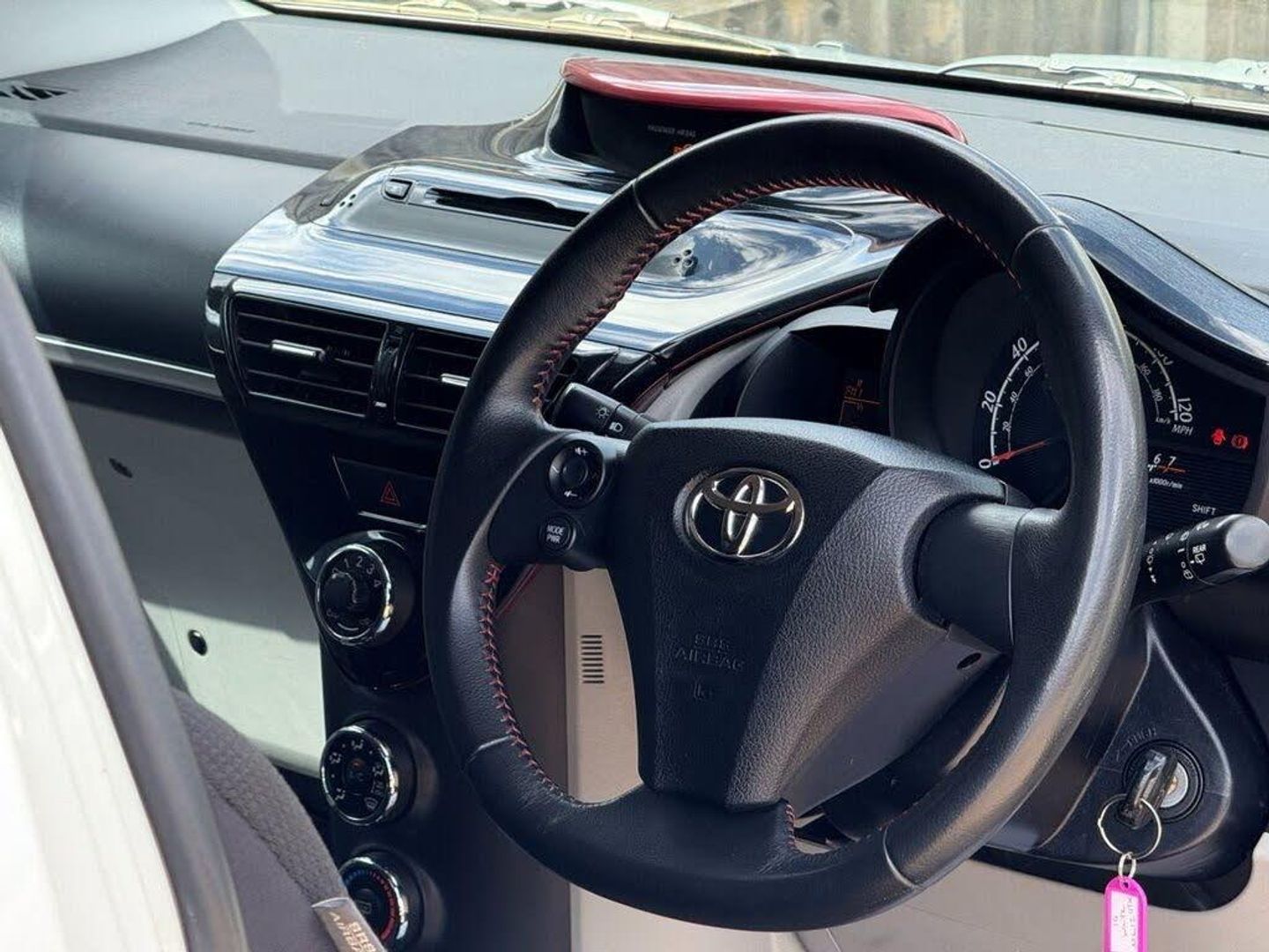 15in Alloy Wheels, ABS - Anti Lock Braking System, Air Conditioning, Airbags - Curtain Front and Rear, Airbags - Curtain Rear Window, Airbags - Driver, Airbags - Driver Knee, Airbags - Front Passenger, Airbags - Front Passenger Cushion, Airbags - Front Passenger Cut-Off Switch, Airbags - Large Side and Driver and Passenger, Aux Input, BAS - Brake Assist System, Black & Grey Interior Trim, Body Shell with High Tensile Steel Elements, Door Mirrors - Heated, EBD - Electronic Brakeforce Distribution, Electric Windows - Front, Front Cupholders x 1, Front Power Windows, ISOFIX Child Restraint System, Immobiliser Thatcham Category 2 Approved, Keyless Entry System, Multi Information Display, Plum & Black Interior Trim, Pollen Filter, Privacy Glass - Rear, Radio and CD Player with MP3 and WMA, Seats - 50-50 Split Folding Rear, Seats - Drivers Height Adjustment, Side Impact Beams, Speakers x6, Steering Wheel - Audio Controls, Steering Wheel - Leather, Tilt and Telescopic Power Steering, Traction Control - TRC, VSC+ - Vehicle Stability Control Plus