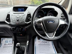 Surrey Specialist Cars are proud to present our lovely Ford Ecosport Zetec Turbo. This amazing car comes with Service History, finished in stunning metallic grey with grey contrast interior. The car will come with Long MOT so it will be ready to go. The 1L Petrol engine offers superb economy at over 53 MPG on combined cycle. Features Include Multifunction Steering Wheel, Trip Computer, Heated Windscreen, Cruise Control, Stereo/Phone Control, Bluetooth Audio, AUX Input, USB Input, FM Radio, CD Player, Climate Control, 12V Charging Socket, 5 Speed Manual Gearbox, Electric Windows, Fog Lights, Cup Holders, 16 Inch Alloy Wheels and two Remote Control Keys to name a few. We are open 7 days a week, and prepare all of our cars to the highest standards. We have a Click & Collect option available, and can also arrange delivery on request. All cars are HPI clear and a full history report is provided with every car. We welcome any inspection and viewing is highly recommended. All cars are available with our AA warranty starting from just £150 for 3 months. Debit and credit card facilities are available and we offer competitive finance packages. If you have any questions or would like to view any of our cars give us a call or drop us a message on whatsapp 01483 363 144 to arrange an appointment with one of our team. We also offer full bespoke walkaround videos on request. We are always on the lookout for high quality stock, if you have a car we are interested in we guarantee to pay the best price for your part exchange. Go to our website for many more images, and information on all our current stock. All cars can be reserved with a £250 deposit