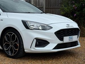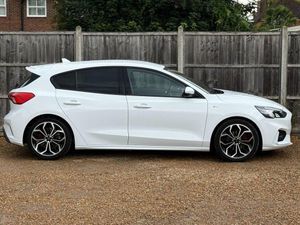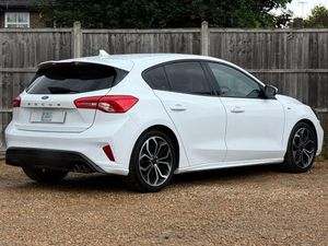 Surrey Specialist Cars are proud to present our lovely Ford Focus ST Line X. This amazing car comes with Full Service History from the Main Dealer, finished in stunning metallic white with grey contrast interior. The car has a MOT until December 2025 so it is ready to go. The 1L Petrol engine offers superb economy at over 58 MPG on combined cycle. Features Include Multifunction Steering Wheel, Trip Computer, Satellite Navigation, Parking Camera, Heated Seats, Stereo/Phone Control, FM/DAB Radio, CD Player, Bluetooth Audio, USB Input, AUX Input, Air Conditioning, Heated Rear and Front Screen, Start/ Stop System, 12V Charging Socket, Fog Lights, 6 Speed Manual Gearbox, 18 Inch Alloy Wheels and two Remote Control Keys to name a few. We are open 7 days a week, and prepare all of our cars to the highest standards. We have a Click & Collect option available, and can also arrange delivery on request. All cars are HPI clear and a full history report is provided with every car. We welcome any inspection and viewing is highly recommended. All cars are available with our AA warranty starting from just £150 for 3 months. Debit and credit card facilities are available and we offer competitive finance packages. If you have any questions or would like to view any of our cars give us a call or drop us a message on whatsapp 01483 363 144 to arrange an appointment with one of our team. We also offer full bespoke walkaround videos on request. We are always on the lookout for high quality stock, if you have a car we are interested in we guarantee to pay the best price for your part exchange. Go to our website for many more images, and information on all our current stock. All cars can be reserved with a £250 deposit