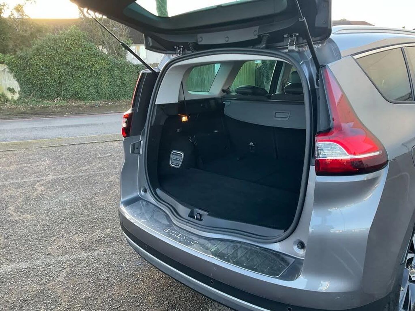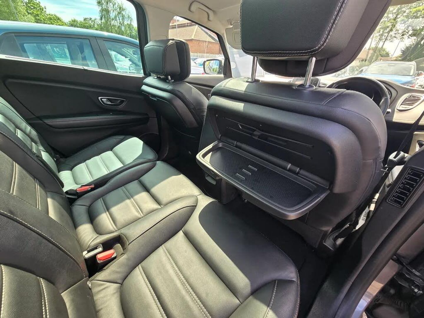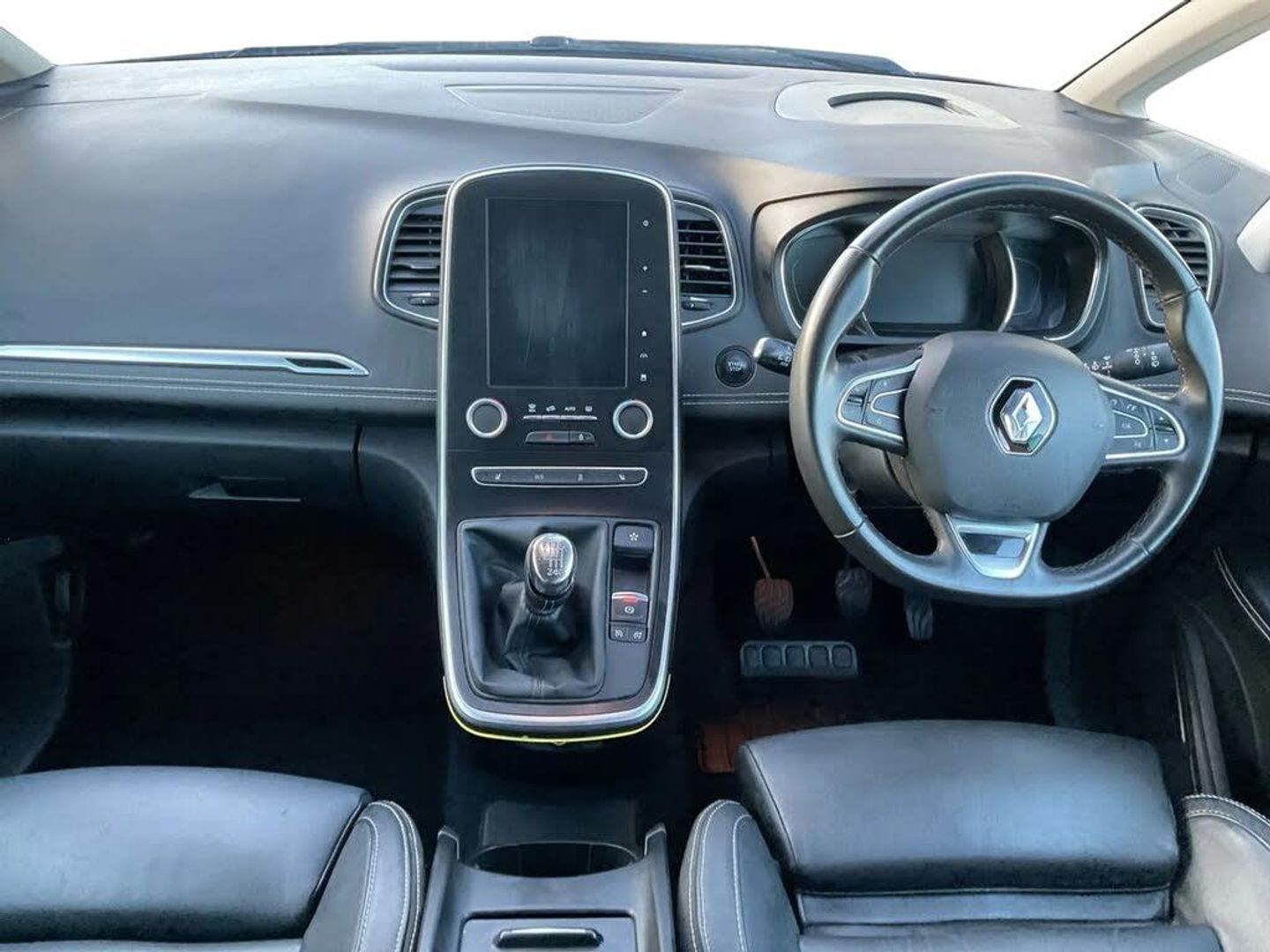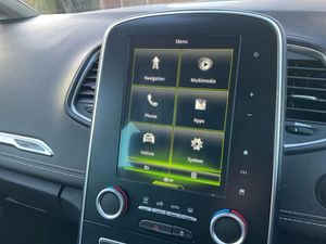 Bluetooth hands free telephone connection,Colour head up display,Cruise control + speed limiter,Digital fuel gauge with low fuel warning light,Digital speedometer,Door/boot open warning light,Drive mode selector,Eco mode,Engine start/stop button,Fatigue detection system,Front and rear parking sensors,Outside temperature gauge,R-Link 2 multimedia system with 8.7" touch screen, TomTom Live 3D navigation, european mapping and app store,Rear parking camera,Rev counter,Trip computer,Variable power steering,Visio system,Voice control system,2 USB ports,2 USB sockets in rear,Auxiliary input socket,Auxiliary input socket in rear,Bluetooth audio streaming,DAB Digital radio,Fingertip remote control,Automatic headlights + automatic windscreen wipers,Body colour door handles with chrome inserts,Body colour door mirrors,Chrome inserts to side mouldings,Chrome side window trim,Chrome trim on tailgate,Coming home function,Cornering front fog lights,Door mirror puddle lights,Electric adjustable heated door mirrors,Electric folding mirrors,Electric rear windows,Electrochrome rear view mirror,Extra tinted glass in rear windows and tailgate,Fixed panoramic sunroof with electric sunblind,Front and rear towing rings,Front grille with chrome trim surround,Full LED headlights,Heated rear windscreen,Heated windscreen washer jets,Integrated fuel filler cap,LED daytime running lights,LED indicators in door mirrors,LED tail lights,One touch electric front windows,Rear wash/wipe,Roof rails,Side indicator repeaters,12V power point front,12V power point in luggage area,12V power socket in rear,2nd row 60/40 split/fold,2nd row LED reading lights,3 individual folding 2nd row seats,3 rear seat adjustable head restraints,3rd row storage with cup holders,Air recirculation system,Ambient lighting,Aviation tables on seatbacks of first row,Comfort front headrests,Driver/passenger sunvisors and vanity mirrors,Dual zone automatic climate control + air filtration,Front and rear courtesy lights with delay,Front door pockets with bottle holders,Gear shift indicator,Height adjustable driver's seat,Height adjustable front head restraints,Height adjustable passenger seat,Height/reach adjust steering wheel,Illuminated dashboard,Illuminated glovebox,Illuminated luggage compartment,ISOFIX on front passenger and rear outer seats,Leather gear knob with satin chrome insert,Leather upholstery,LED reading lights,Nappa leather steering wheel,Pollen filter,Rear lateral windows sunblind,Seats - all fold flat,Sliding centre console box,Storage pockets in backrests of front seats,Variable boot floor,Premium Leather Pack - Scenic/Grand scenic,ABS + EBD + EBA,Automatic parking brake,Child locks on rear doors,Driver and passenger airbags,ESP + ASR traction control + CSV understeer control,Front and rear curtain airbags,Front lateral airbags,Front passenger airbag deactivation,Height adjustable front seatbelts + pretensioners,Hill start assist,Inertia reel 3 point seatbelts on all seats,Seatbelt warning,Tyre pressure monitor,Hands free Renault card,Immobiliser,Insurance approved Cat 1 alarm system,RAID (Renault Anti-Intruder Device) with automatic door locking,Superlocking,20" Quartz alloy wheels,Emergency Spare Wheel - Space Saver,Oyster Grey