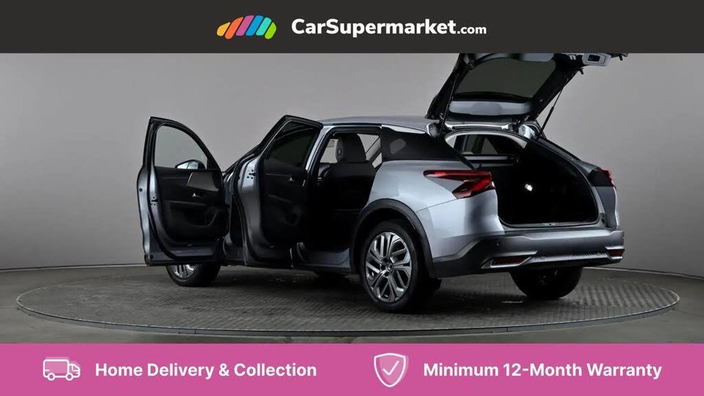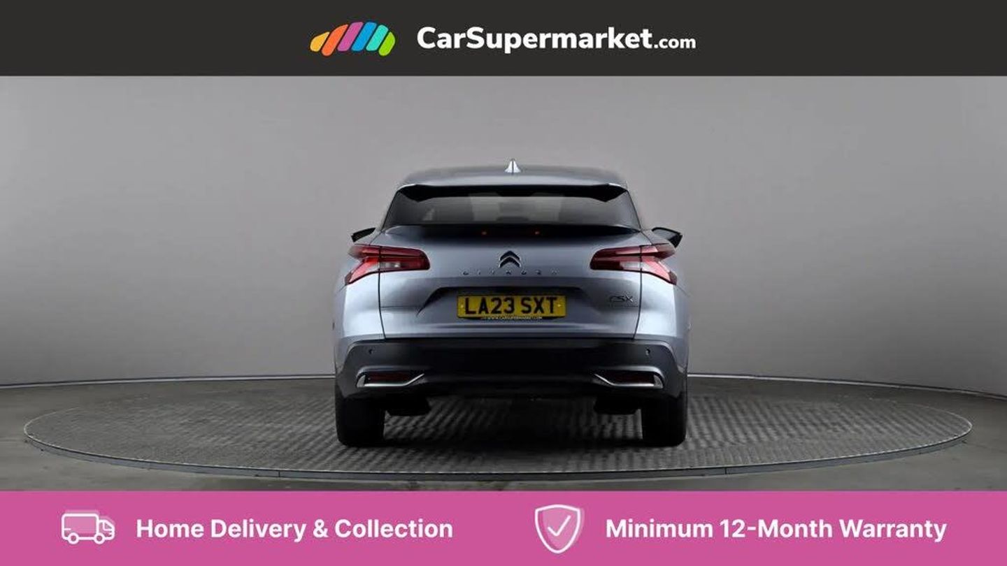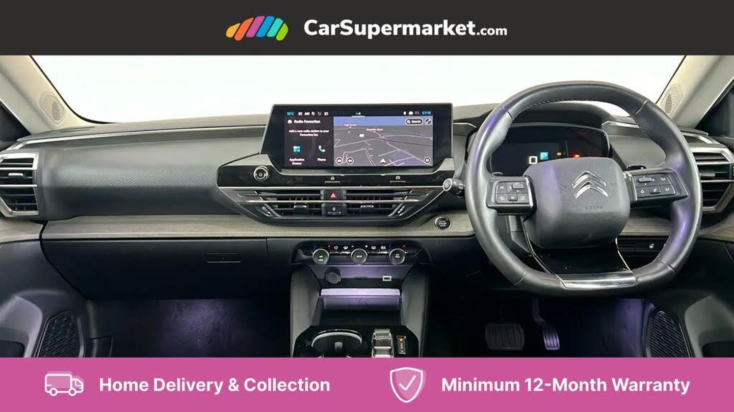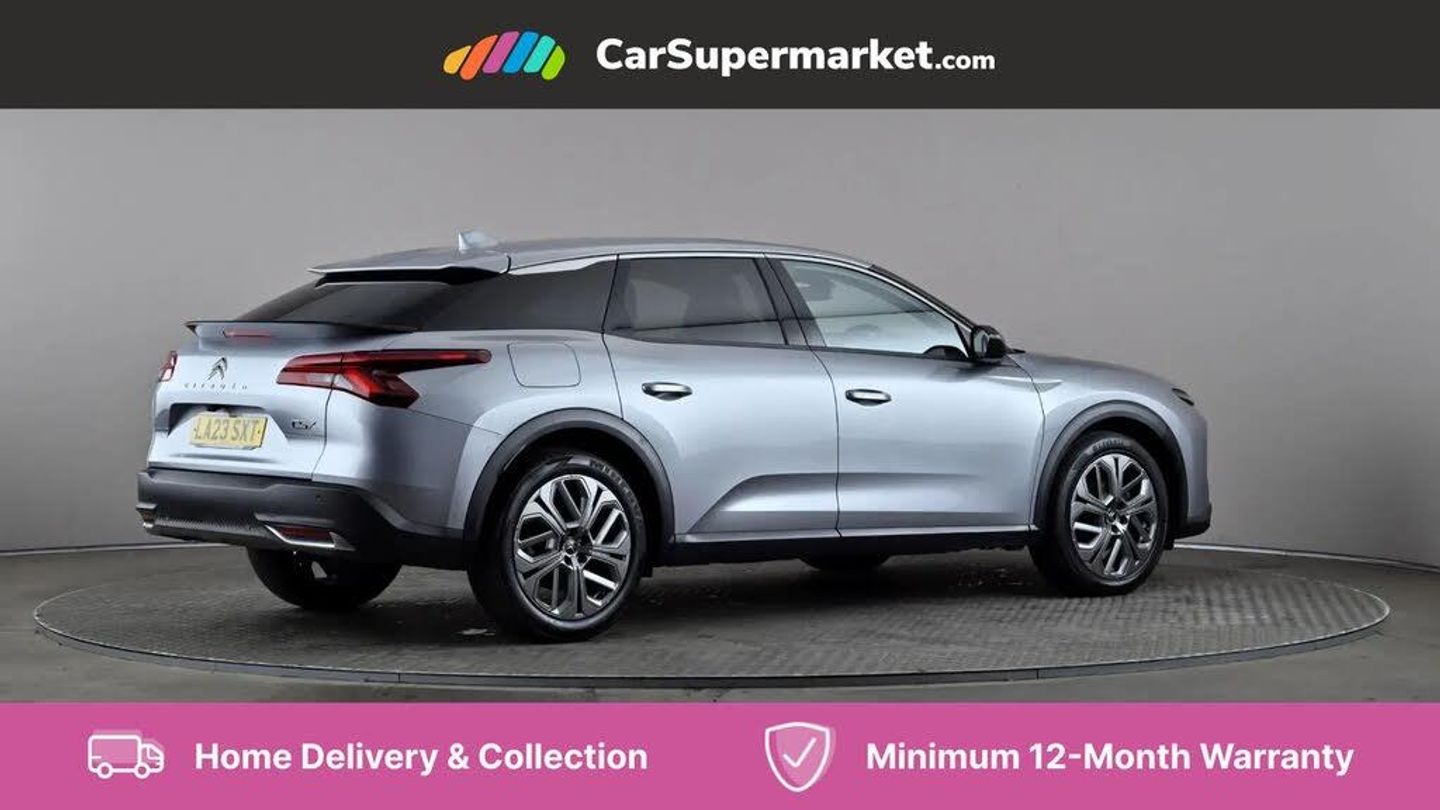 12" Central touch screen with separate heating and ventilation controls (with ADAS and Home buttons),7'' Digital instrument cluster with smoked glass, 10 + 2 indicator lights and ambiance backlighting,Citroen connect box with emergency and assistance system,Coffee Break Alert,Connected 3D navigation,Driver attention alert system,Driver information panel with lighting fault indicator,E-call,Electric variable power assisted steering,Extended blind spot detection,Extended traffic sign recognition,Forward collision warning,Front and rear parking sensors,Highway Integrated Assist (Adaptive Cruise Control with Stop & Go function and Lane Positioning Assist),In-crash braking,Lane change assistant,Lane keep assist,Multi window screen,MyCitroën Drive Plus (incorporating electronic user guide),Outside temperature display,Radar Controlled Active Safety Brake (with enhanced pedestrian and cyclist pickup and able to function at night),Rear cross traffic alert,Remote functions: horn and lighting, lock/unlock doors, vehicle status,Speed limit recognition and recommendation,Top rear vision reversing camera,Voice recognition,Wireless mirror screen,Wireless smartphone charging,Citroen Advanced Comfort suspension with double (front & rear) progressive hydraulic cushions,2 front USB plugs : 1 USB type C charge + data (front of centre console), 1 USB type C charge only (under centre front armrest), able to charge IPAD,2 rear USB plugs charging only (able to charge IPAD),Bluetooth streaming,DAB Digital radio,Hi Fi System: 8 loudspeakers (2 front woofers, 2 front tweeters, 2 rear woofers and 2 rear tweeters),A pillar in black,Acoustic insulated and tinted windscreen with Head Up Display (eHUD),Automatic illumination of headlamps when unlocking,Automatic rain-sensitive flat blade wipers with integrated wash function,Automatic welcome and follow me home lighting,Automatically illuminating LED headlamps with automatic High Beam Assist (with driver adjustment controls in passenger compartment),Body coloured door handles,Chrome Citroën chevrons integrated into front grille and extending outward into front light signature,Electronic, heated, black folding door mirrors with integrated LED indicator, LED approach lighting,Extra tinted rear quarter panel windows,Extra tinted, heated rear window,Frameless electrochrome interior rear view mirror,Front and rear electric windows,Gloss black Citroën chevrons with chrome surround, chrome Citroën lettering and C5 X badging on rear tailgate,High level LED brake light,LED daytime running lights,LED fog lights with static cornering function integrated into front bumper apron,LED front indicators,LED rear lights,LED rear number plate lights,Rear side wing doors,Rear wiper,Remote 4-window opening/closing with plip,Satin chrome trim on rear bumper,Tinted front and extra tinted rear windows,12V power socket in front centre console,12V socket in boot,3 rear headrests,3 seat bench in 2nd row,Automatic dual zone air-conditioning with Soft/Normal/Fast variable settings, A/C max function and single- zone function (through touch screen),Black leather-effect central armrest with overstitching,Black leather-effect front and rear door panel inserts,Black tie down rings for secure load storage,Cabin air filter,Carpeted boot with low-friction loading floor rails,Courtesy lighting: front roof light, rear roof light, central console lighting, LED illuminated glovebox and LED boot light,Dashboard mounted black, backlit, chrome-ringed start/stop button,Driver and front passenger sun visors with mirrors and LED lighting,Driver's footrest,e-Toggle automatic gear selector switch on centre-console,Front and rear door pockets,Front and rear passenger storage areas in central console,Front headrests,Front seatback storage pockets,Height and reach adjustable steering wheel,High efficiency air filter,Illuminated passenger glovebox,Interior LED welcome lighting - door handles, front foot wells, driver instrument panel,ISOFIX points in outer rear seats with top tether anchorage points,Magic Handles - allows rear seats to be folded flat from the boot compartment,Mistral carpet with reinforced driver's foot well,Multifunction heated, grained leather steering wheel with paddle shifters, driving assistance and infotainment control functions,Plastic boot sill,Rear air vents with independent opening/closing and left and right airflow settings for rear seat passengers,Rear armrest storage and cup holders,Roll up awning fitted to tailgate,Satin chrome dashboard strip and satin chrome decor on bottom of door panels,Satin chrome highlighted air vents and steering wheel,Single front passenger seat,Smartphone storage in front of (front) centre armrest,Storage area for emergency safety triangle/first-aid kit,Storage under central armrest,2 tone horn,ABS,Curtain airbags,Driver and front passenger airbags,Electric parking brake,Electronic Stability Programme (ESP)