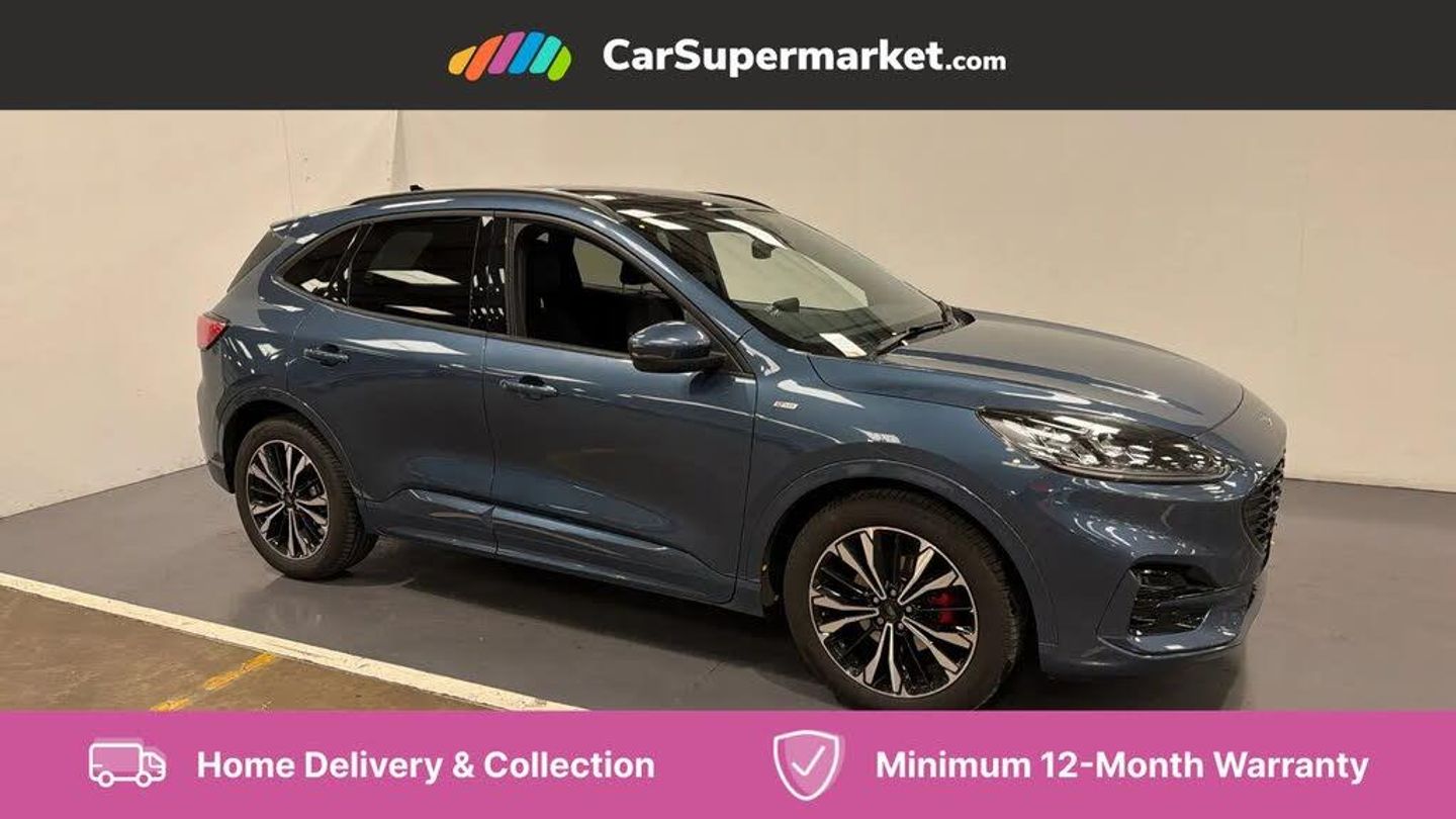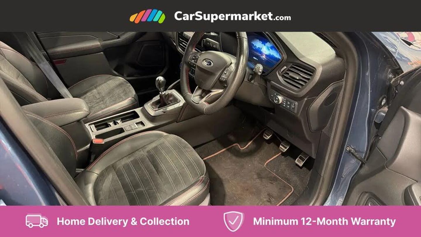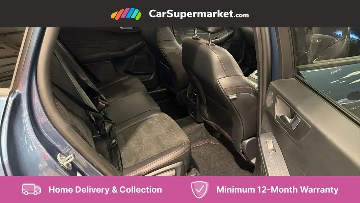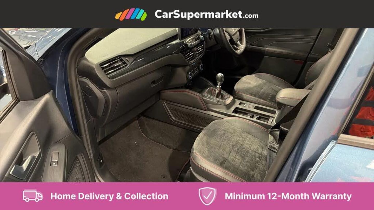 12.3" digital colour instrument cluster,Ford easy fuel,Ford SYNC 3 with 8" TFT LCD touchscreen, App Link, andriod auto/apple carPlay, emergency assistance and navigation with Ford pass connect,Front and rear parking sensors,Hands free power tailgate,Lane keeping aid with lane departure warning,Power assist steering,Rear view camera,Selectable drive modes,Service interval indicator,Sports suspension,Twist beam rear suspension,B&O premium audio system with 10 speakers and subwoofer, 2 USB ports, DAB radio/CD,Auto headlamps with high and low beam,Black roof rails,Day/night rear view mirror,Front LED fog lamps,Large rear spoiler,LED daytime running lights,LED rear lights,Power folding heated door mirrors with puddle lights,Power front/rear windows with global close,Power opening panoramic roof,Privacy glass,Quickclear heated windscreen,ST Line body styling kit with unique front and rear fascia and bumper, rear painted diffuser, front painted skid plates, dark mesh upper grille,ST Line front scuff plates,Third brake light,Twin exhausts,10 way power adjustable drivers seat,2nd row sliding seats with 60:40 split,8 way manual passenger seat including lumbar support and height adjust,Alloy pedals,Centre console with electronic parking brake,Dark headlining and pillars,Dual electronic automatic temperature control,Flat bottomed leather steering wheel in sensico with red stitching,Front and rear head restraints,Heated passenger and driver seats,Heated rear seats,Heated steering wheel,Partial premium touch sensico leather upholstery with black cloth inserts and red stitching,Rear charging point,Sports seats,ST Line gear knob,3x3 point rear seatbelts,Airbags - front driver/passenger, front and rear curtain,Drivers knee airbag,Electronic stability control (ESC) and ABS,Ford MyKey Gen 2 safety system,Manual child proof rear door locks,Post collision braking,Pre collision assist with autonomous emergency braking,Rear seat Occupancy alert,Red brake calipers,Tyre pressure monitoring system,Engine immobiliser,Keyless entry and Ford power start button (Keyless start),Locking wheel nuts,Remote powered central double locking doors,Thatcham category 1 alarm,Chrome Blue,Partial Sensico - Rapton Cloth - Ebony with Red Stitching
