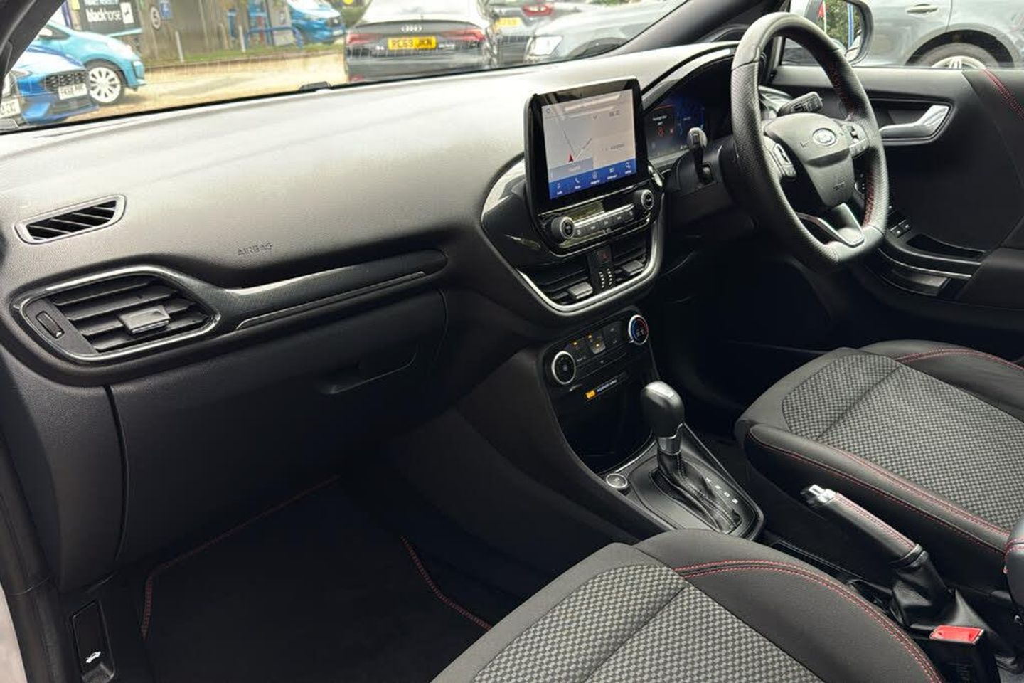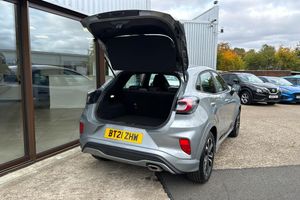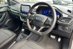 17in Alloy Wheels - 5x2 Spoke - Black Machined Finish ABS - Anti-lock Braking System Acoustic Laminated Windscreen Active Grille Shutter Automatic Dimming Rear View Mirror Automatic Headlights with Rain-Sensing Wipers and Auto High Beam Centre Console with Armrest - Stowage Courtesy Lights - Ambient LED Courtesy Lighting - Single Colour Cruise Control - Lane Keeping Aid and Lane Departure Warning Driver Seat Lumbar and Height Adjustment Electric Windows - Front and Rear Electronic Stability Control - ESC with Traction Control and Emergency Brake Assist - EBA Emergency Brake Warning - Automatic Hazard Warning Lights First Aid Kit Strap Floor Mats - Front and Rear Ford Easy Fuel System Ford MegaBox Extended Bootspace Ford Power Starter Button Ford SYNC 3 Navigation Front Bumper - Unique ST-Line Sport Design - Body Colour Front Door Threshold Plates - ST-Line Front Fog Lights with Cornering lights and LED Rear Lamps Front Seats - Sports Style Full Digital 12.3in Instrument Cluster Gearshift Knob - Soft Feel with Red Stitching Headliner - Deluxe Instrument Panel - High Level Large Rear Spoiler - Body Colour with Centre High Mounted Stop Light Locking Wheel Nuts Lower Bodyside Moulding - Body Colour Manual Air Conditioning Post Collision Braking Power Steering Power-Foldable Heated Door Mirrors with Puddle Lamps Pre-Collision Assist with Autonomous Emergency Braking and Pedestrian-Cyclist Detection Projector Headlamps with LED Daytime Running Lights Puma Badge Quickclear Heated Windscreen Rear Bumper Body Colour - Diffuser Rear Parking Sensors Rear Seats - 2-Way Head Restraint Up-Down Rear Seats - Second Row 60-40 Folding Seats Remote Central-Double Locking Restrain Device Pack ST-Line Badge ST-Line Body Styling Kit ST-Lined Flat-Bottomed Leather Steering Wheel - Leather Handbrake Selectable Driving Modes - Normal - Eco - Sport - Slippery and Trail Speed Limiter Sports Suspension Thatcham Alarm Trip-Fuel Computer Tyre Inflation Kit Tyre Pressure Monitoring System - TPMS Wireless Charging