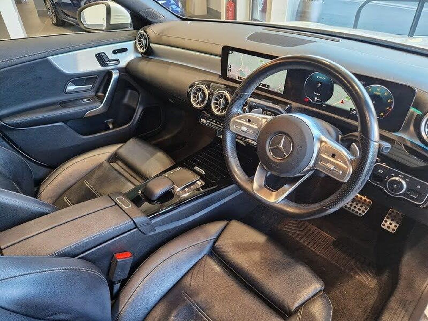 Leather - Black,Polar White, DAB Digital Radio Tuner, Dual Bluetooth Interfaces, Hard-Disk Navigation, Live Traffic and Map Updates, MBUX Multimedia System, Media Display - 10.25-inch with Touchscreen, Mercedes Me Connect - Standard Services, Mercedes-Benz Sound System - 225 W, Navigation Services, Pre-Installation for Mercedes-Benz Link, Pre-Installation for Private Car Share, Pre-Installation for Vehicle Monitoring, Pre-Installation for Vehicle Set-Up, Radio Aerial Integrated into Windshields Front and Rear, Smartphone Integration Comprising Apple CarPlay and Android Auto, USB - Type C - 2 Ports in Rear of Stowage Compartment, USB - Type C - Port in Front Stowage Compartment, Wireless Charging, ATTENTION Assist - Monitors Steering Behaviour and can Help Alert to Long Journey Fatigue, Brake-Pad Wear Warning Indicator, Cruise Control with Limiter, Dynamic Select with a Choice of Driving Modes - ECO-Comfort-Sport and Individual, Hey Mercedes - Voice Activation, Instrument Cluster - Fluid Level Warning Indicator for Fuel - Oil - Coolant and Washer Fluid, Instrument Cluster - Outside Temperature Display, Instrument Cluster - Service Indicator ASSIST, Instrument Cluster - Trip Computer in Multi-Function Display with Current Fuel Consumption Indicator, Lamp Failure Indicator, Touchpad on Centre Console, Traffic Sign Assist, Tyre Pressure Monitoring System, 18in Alloy Wheels - AMG 5-Twin-Spoke Design - Painted Titanium Grey with a High-Sheen Finish, AMG Bodystyling, Beltline Strips - Chrome, Bonnet with Power Domes, Brake Calipers - Mercedes-Benz Lettering on Front, Bumpers - Body Coloured, Chrome Weather Strip, Diamond Radiator Grille with Pins in Chrome - Silver-Painted Louvre and Insert in Chrome, Door Handles - Body Coloured, Door Mirrors - Electrically Adjustable and Heated with Integrated LED Indicators, Exhaust System - 2 Visible Tailpipe Trim Elements and Rear Apron with Trim in Chrome, Glass - Rear Windscreen - Heated with Timer Control, Mirror Package, Panoramic Roof, Privacy Glass, Rear Fog Light, Summer Tyres, TIREFIT Tyre-Sealant Kit, Windows - Electric Windows - 4, Headlamp Assist - Automatic Headlamp Activation, High Level Third Brake Light - LED, LED Rear Tail Lights, MULTIBEAM LED Headlights with Adaptive Highbeam Assist Plus, Air Conditioning - Air Vents with Surround in Silver Chrome, Air Conditioning - THERMOTRONIC Luxury Automatic Climate Control - Two-Zone with Display, Brushed Stainless Steel Sports Pedals with Rubber Studs, Centre Armrest - Front with Stowage, Door Sills - Front Door Sill Panels with Mercedes-Benz Lettering - Illuminated, Floor Mats with Stitched AMG Lettering, Heated Front Seats, Instrument Display - 10.25in Display, Interior 64-Colour Ambient Lighting, KEYLESS-GO Starting Function, Light and Sight Package, Luggage Nets on Driver and Front Passengers Backrests, Rain-Sensing Windscreen Wipers with Two Sensitivity Settings, Rear Armrest with Two Cup Holders, Roof Lining - Black, Seat Belts - Black, Seat Comfort Package, Seats - Electrically Adjustable Front Memory Seats with Lumbar Support, Seats - Rear Seat Backrests - Split Folding 40-20-40, Spectacles Compartment for Driver, Sports Seats with Fixed Head Restraints, Steering Column - Manually Adjustable for Height and Reach, Steering Wheel - 3-Spoke Multi-Function - Trimmed in Leather with Perforated Leather in Grip Area and Flattened Bottom Section, Steering Wheel - Galvanised Shift Paddles, Storage Compartment in Centre Console with Retractable Cover, Sun Visors with Illuminated Vanity Mirrors, Trim - Light Longitudinal-Grain Aluminium, Twin Cup Holders in Front, Direct-Steer Speed Sensitive Steering, Rear Axle - Multi-Link, Suspension - Lowered Comfort Suspension, ABS - Anti-Lock Braking System with BAS - Brake Assist, Active Bonnet - Pedestrian Safety Measure which Detects an Impact and Raises Bonnet by 65mm, Active Brake ASSIST, Active Lane Keeping Assist, Adaptive Brake Lights, Airbag - Kneebag for Driver, Airbags - Dual-Stag