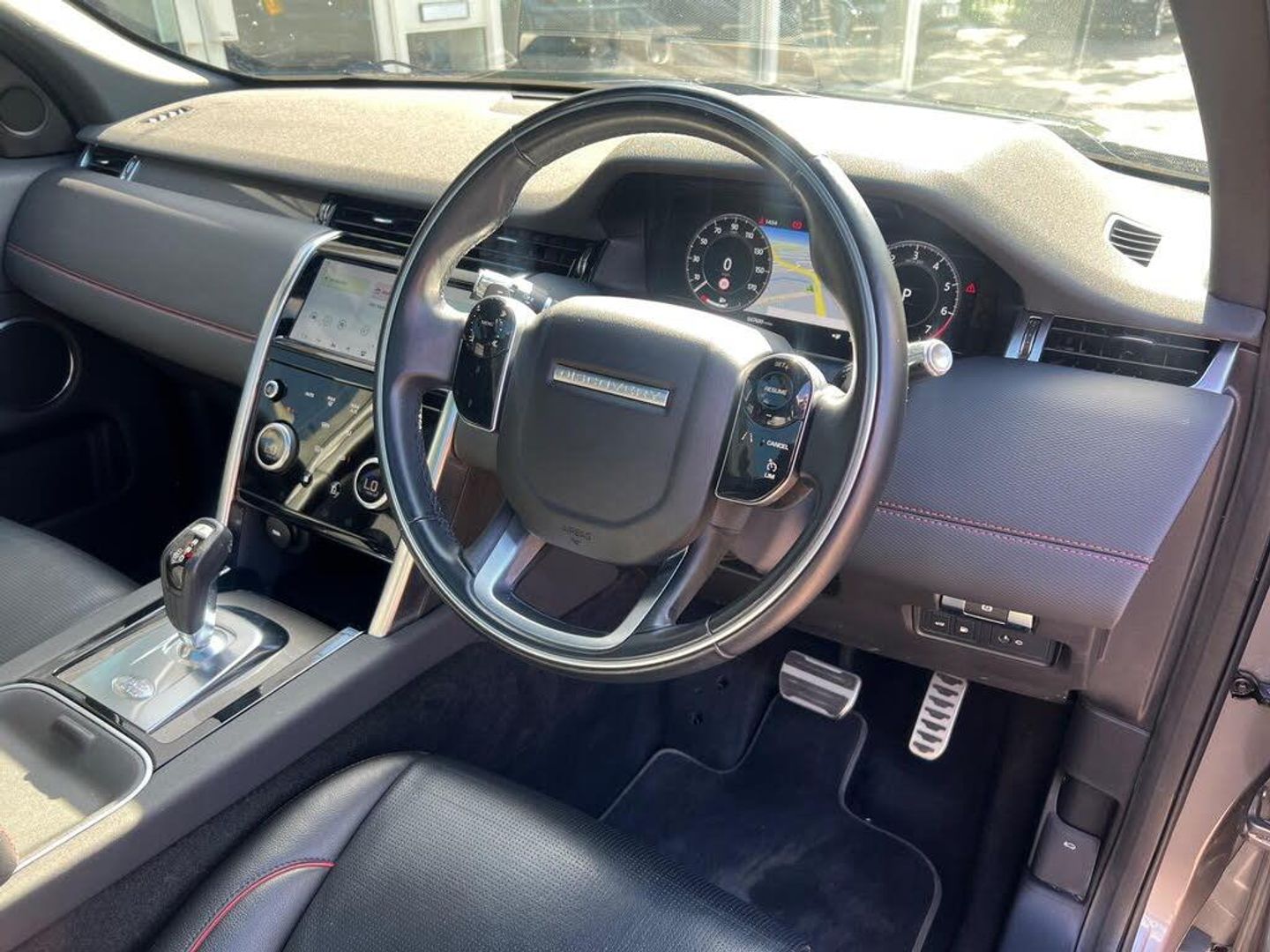 Eiger Grey Metallic, Ebony leather with mars red stitch, Titanium mesh finisher, R Dynamic Ext Black Pack, Contrast Black roof, 20 Gloss Black Alloys, Privacy glass, Panoramic roof with power blind, Heated seats, Seven seats, Gearshift paddles, Heated electric memory front seats, Powered tailgate, Climate control, Interactive driver display, Navigation Pro, Android auto, Apple CarPlay, DAB, Front & rear parking sensors, Rear camera, Heated windscreen, Premium LED headlights, Auto high beam assist, Powerfold heated mirrors with auto dimming & approach lights, Ambient lighting, Keyless entry, Traffic sign recognition & ASL, Cruise control, Blind Spot Assist, LKA, Terrain Response 2, R-Dynamic styling, Bright pedals, R Dynamic treadplates, Side steps. Ongar Bridge 12 Months Parts & Labour Guarantee.-Black Pack, Pan roof, Steps-Black Horse Dealer - Competitive Finance & PCP's available - Apr 9.9% - Open 7 days, Px welcome