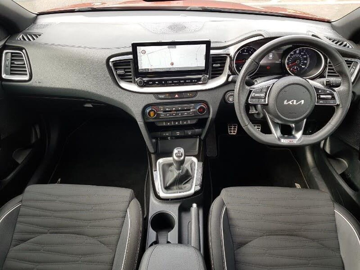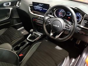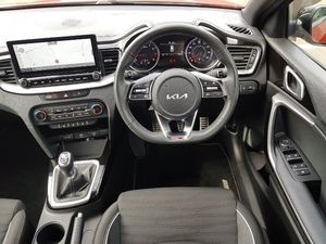 Kia connect UVO, 10.25" touchscreen satellite navigation, 4.2" supervision colour cluster display, Apple car play/Android Auto with voice control, Bluetooth with Voice Recognition & Music Streaming, Cruise control + speed limiter, Driver Attention Warning (DAW), Emergency call service, Emergency stop signalling system, Lane Following Assist (LFA), Lane keep assist, Manual speed limit assist, Motor driven power steering, Rear parking sensor, Reversing camera system with dynamic guidelines (Integrated into centre fascia screen), Trip computer, Steering wheel mounted controls, USB Fast Charger in Front Centre Console, USB port for connection of a media device, Automatic headlights control, Body coloured rear roof spoiler with high gloss black trim, High beam assist, LED daytime running lights, LED Headlights, Rain sensing front wipers, 60/40 split folding rear seat, Driver's seat height adjuster, Dual zone automatic air conditioning, Heated front seats, Heated steering wheel, ISOFIX Child seat top tethers and anchor fixings, Tilt/telescopic adjustable steering wheel, 17" GT-Line alloy wheels