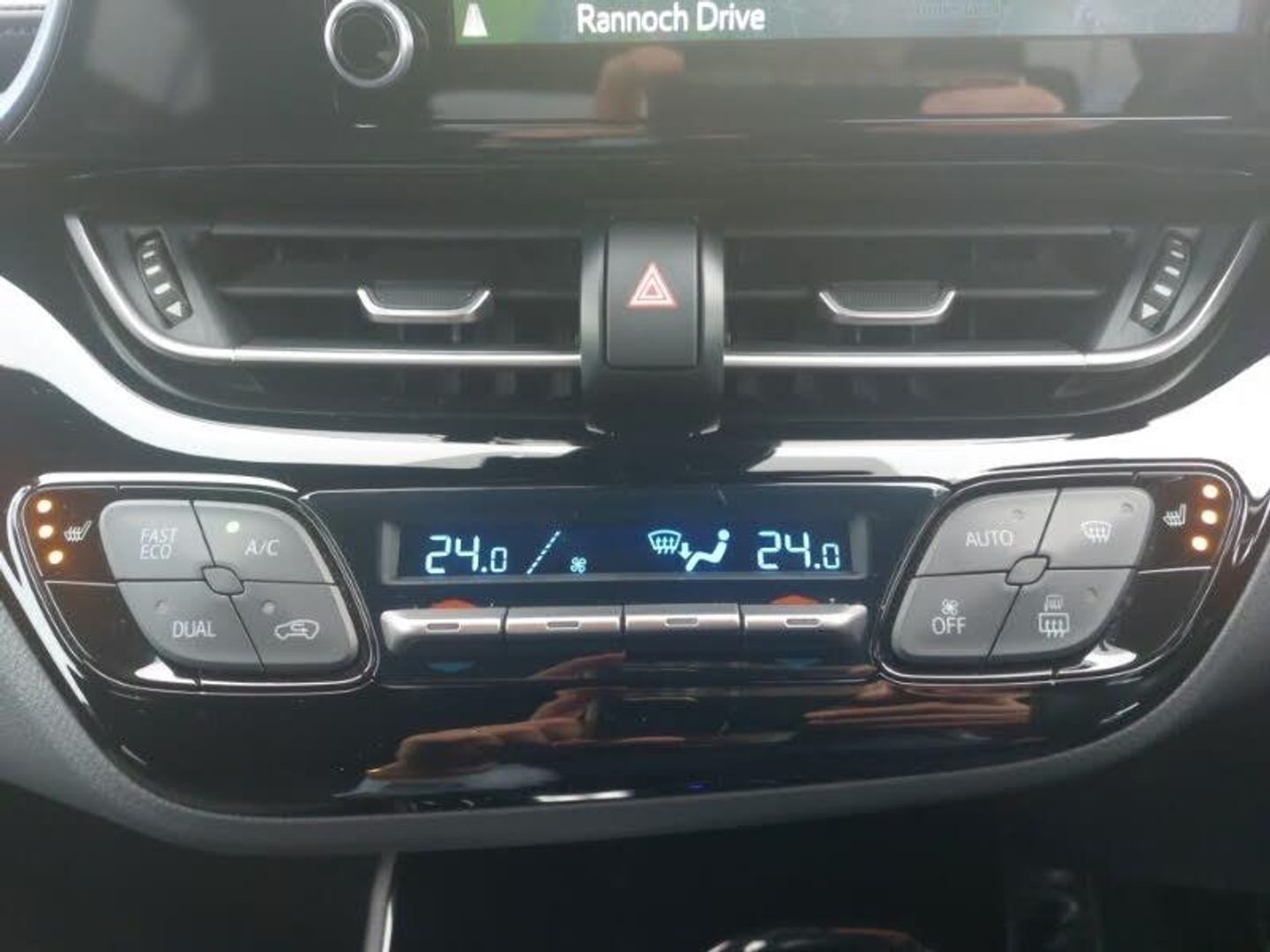 Touch 2 Go navigation system, Reversing camera, Rear parking sensors with ICS, Bluetooth connectivity, 4.2" coloured TFT screen for multi-information display, Adaptive cruise control, Front parking sensors with ICS and auto braking, Simple Intelligent parking assist, Smart entry and push button start, Voice recognition, Vehicle Stability Control (VSC), DAB Radio (Digital Audio Broadcasting), Toyota touch 2 multimedia system with 8" display, USB connector, Wi-fi connectivity, Auto high beam, Auto wipers, Automatic headlights, Automatic headlights cut-off, Follow me home headlights, LED daytime running lights, LED front light guide, LED High mounted stop light, LED rear brake lights, LED rear combination lights, Privacy glass, UV-filter on driver and passenger windows, 3 spoke leather steering wheel, Adjustable speed limiter switch on steering wheel, Audio and telephone switches on steering wheel, Dual zone automatic air conditioning, Heated driver and front passenger seats, Isofix attachments on outer rear seats, Leather gearshift, Manual telescopic steering wheel, Manual tilt steering wheel, Multimedia switches on steering wheel, Power adjustable lumbar support on driver seat, Voice recognition switch on steering wheel, Hill start assist control (HAC)