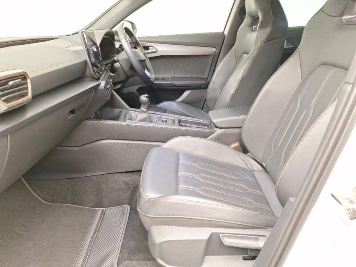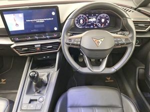 19" 'Exclusive' machined sport matte black and silver alloy wheels, Genuine Nappa leather Pack - Cupra, Black headlining, 60/40 split rear bench seat with armrest and mechanical seat release, Three zone climate control with control panel in rear, Auto dimming rear view mirror, LED Headlights, Rain sensing wipers, Electrically adjustable heated and folding door mirrors with memory function, 2 front and 2 rear USB type C sockets, Auxiliary input socket, Digital cockpit and configurable dashboard, Rear view camera, Wireless apple carplay, Park assist (inc front/rear parking sensors), Navigation system with 12'' Touchscreen Display, Lane assist