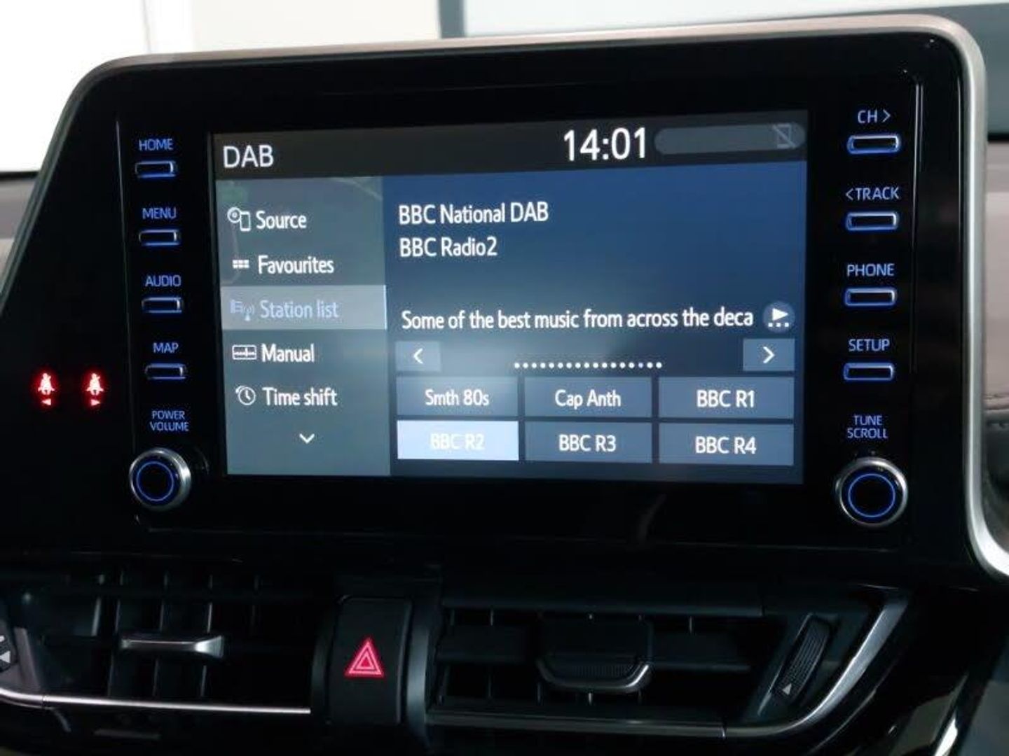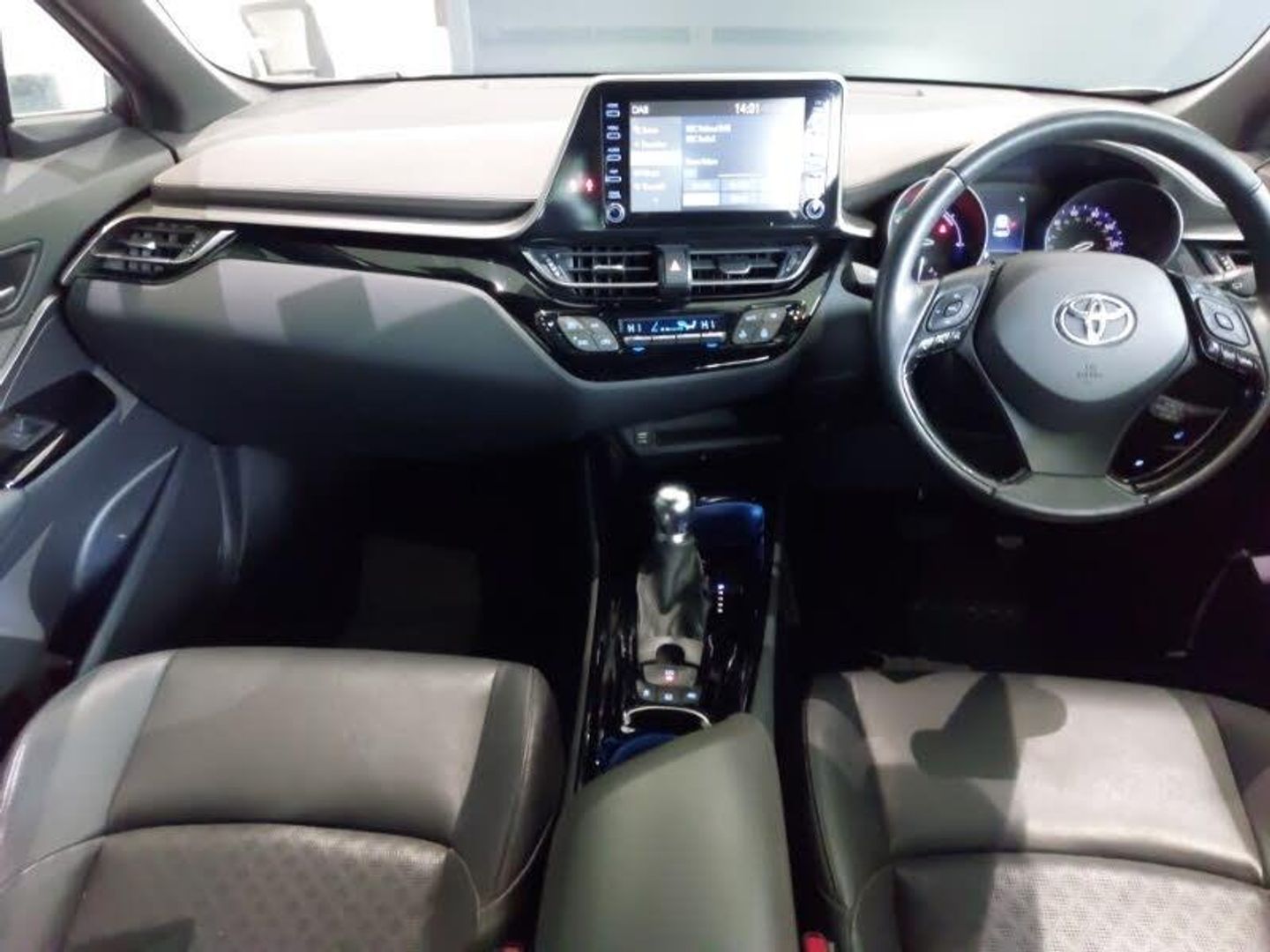 4.2" coloured TFT screen for multi-information display, Leather pack - C-HR, Tech with parking sensor pack - C-HR, Heated steering wheel, Adaptive cruise control, Bluetooth connectivity, Hybrid system indicator, Lane departure alert with steering control, Reversing camera, Simple Intelligent parking assist, Touch 2 Go navigation system, Toyota touch 2 multimedia system with 8" display, USB connector, Wi-fi connectivity, Adaptive LED Headlights, LED daytime running lights, LED front light guide, LED fog lights, LED High mounted stop light, LED rear brake lights, LED rear combination lights, Blue ambient lighting on front doors, Dual zone automatic air conditioning