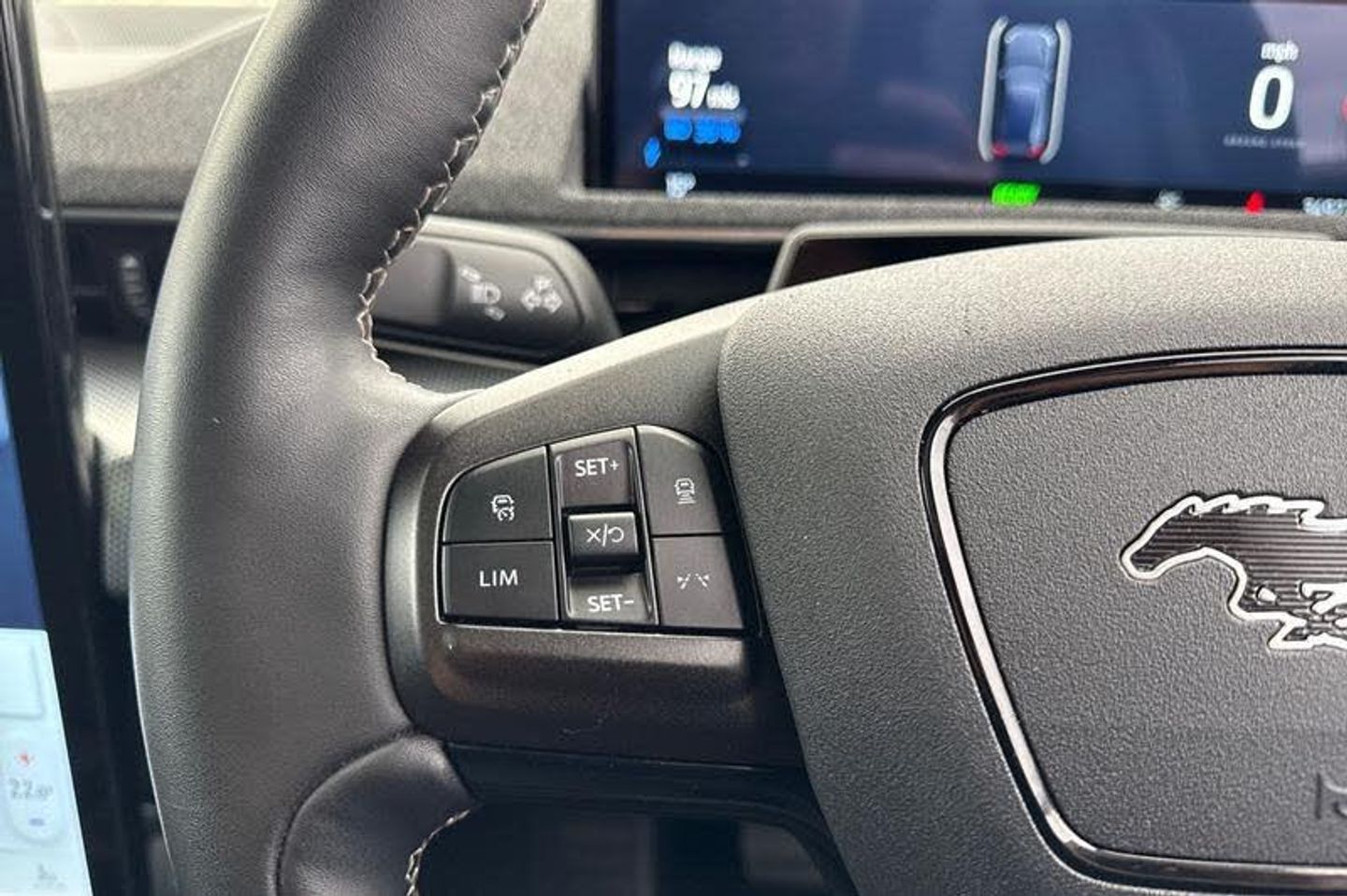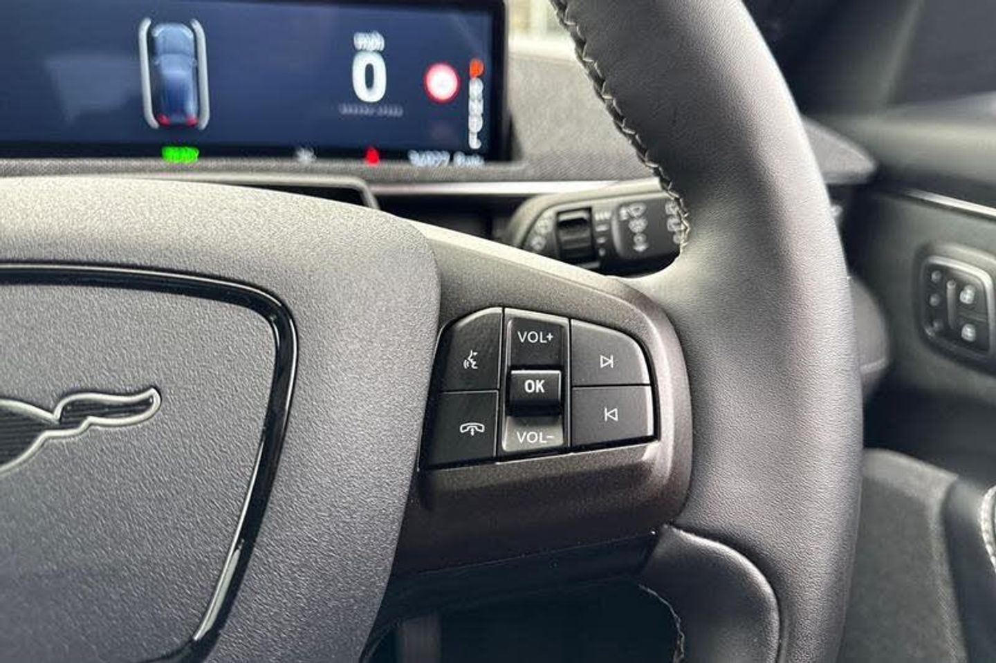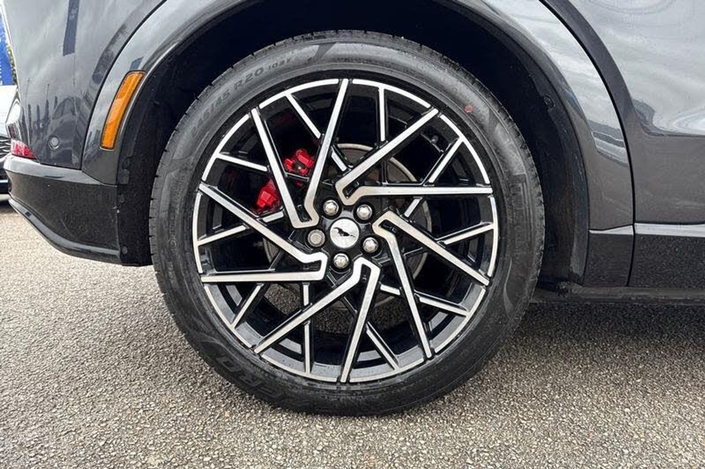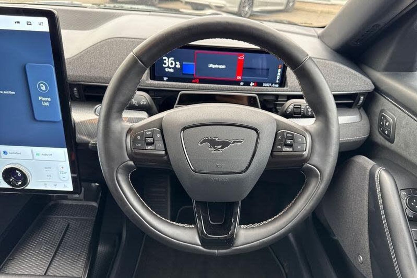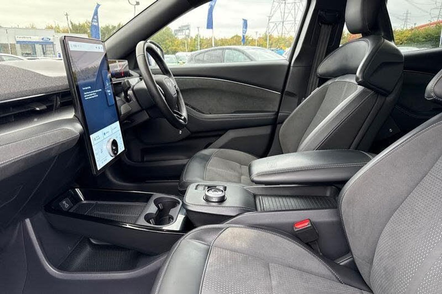 BLIS Blind Spot Information System, Adaptive Cruise Control, Panoramic Glass Roof , Heated Seats, Heated Steering Wheel, 360 Camera, Power Tailgate, Charging Mat, Bang Olufsen Sound System , Satellite Navigation System, Electric Memory Seats, Keyless Entry, Front + Rear Parking Sensors, Push Button Start, Privacy Glass, Part Leather Seats , Dual Zone Climate Control, Cruise Control + Speed Limiter, Lane departure warning with lane keeping aid, 10.2 full digital cluster and 15.5 central touch screen, Applink remote control system, Distance alert system, Electric power steering, Ford pass connect embedded modem, Selectable drive modes - active, whisper and untamed, Trip computer, Adaptive LED Mustang signature headllamps, Black door cladding, Black power folding door mirrors with Mustang logo projection puddle lamps, Blade front grille design, Body colour bumpers, Body coloured wheel mouldings, Exclusive paint, LED signature tail lights, Quickclear heated windscreen, Side cladding and wheel arches in piano black, Unique GT bumpers, Unique GT front grille design, Front headrests, Front trunk, GT performance seats, One pedal drive, Rear head restraints, 19 brembo brakes, 3 point rear seatbelts, ABS, ESP, Evasive steering assist, Pre collision assist with Forward Collision Warning (FCW), Dynamic Brake Support (DBS), Autonomous Emergency Braking (AEB), Red brake callipers