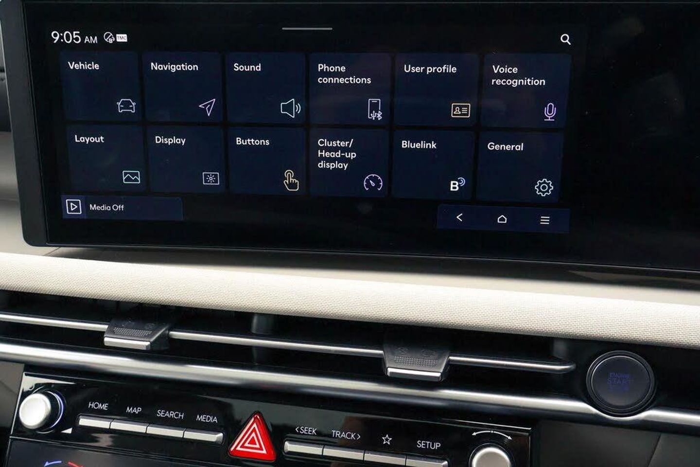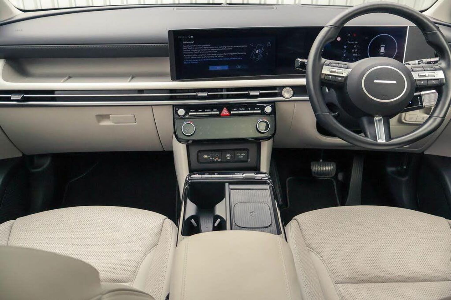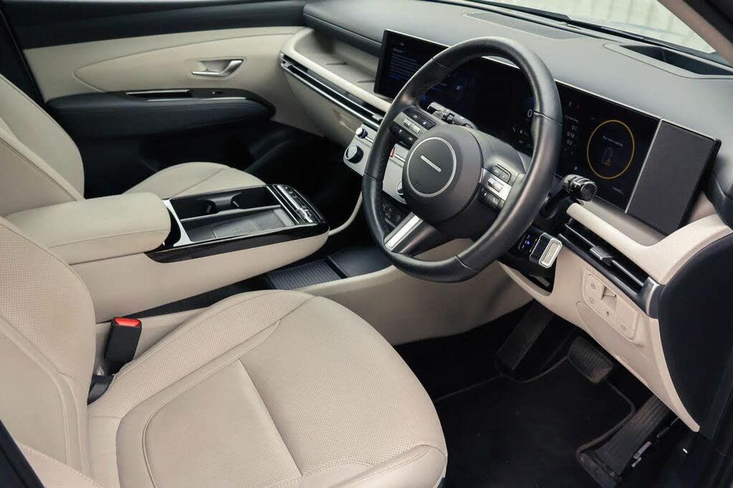 12.3" LCD display with driver's supervision instrument cluster, 12.3" widescreen navigation with bluelink and mapcare, Blind spot view monitor, Bluetooth system, Cruise control - smart adaptive speed control with stop and go function, Digital clock, Drive mode selector, Driver attention warning, E-call, Emergency stop signalling system, Forward Collision Avoidance Assist (FCA) - Car, Pedestrian and Cycle, Forward Collision Avoidance Assist Junction Turning (FCAJX), Front and rear parking sensors, Front, rear and side parking distance warning, Highway Driving Assist (HDA), Hyundai road side assistance, Intelligent speed limit assist, Lane follow assist, Lane keep assist, Over the air updates(OTA), Parking collision avoidance assist (PCA), PAS, Rear camera and guidance parking system, Rev counter, Smart power tailgate, Surround view monitor, Tailgate open warning light, Trip computer, Trip odometer, Voice recognition, Water temperature gauge, Windscreen washer fluid sensor and warning indicator, Wireless Apple CarPlay/Android Auto, Wireless phone charging pad, 2 front and 2 rear USB-C ports, DAB Digital radio, Krell premium audio system with 8 speakers and subwoofer, Steering wheel mounted audio/phone controls, Adjustable intermittent front windscreen wipers with aero wiper blade, Auto dimming rear view mirror, Automatic defog system, Automatic headlights with dusk sensor, Automatic windscreen wipers with rain sensor, Black wheel arches, Body colour bumpers, Body colour door mirrors with integrated indicators, Body colour exterior door handles, Electric tilt/slide panoramic sunroof, Electrically adjustable, heated and power folding door mirrors, Follow me home headlights, Front and rear electric windows with anti-trap mechanism and one touch control, Front fog lights, LED 3rd brake light, LED daytime running lights, LED rear lights, Matrix LED headlights, Positioning Lights - LED, Privacy glass - Rear windows and tailgate, Rear side wing doors, Rear wash/wipe with intermittent wipe setting, Roof rails, Tinted glass with windscreen shade band, Trailer stability assist, 12V power outlets in front console and luggage compartment, 3 seat bench in 2nd row, 40/20/40 split folding rear seat, 64 colours interior ambient lighting, Adjustable head restraints (Up and down), Cupholders in rear armrest, Door courtesy lights, Driver and passenger sunvisors with illuminated LED vanity mirrors, Driver's seat electric adjustments, Driver's seat memory, Front and rear door pockets, Front armrest with storage box, Front centre console and door bottle holders, Front passenger's seat electric adjustments, Heated front seats, Heated rear seats, Heated steering wheel, Height/reach adjustable steering column, Illuminated/air conditioned glove compartment, ISOFIX child seat anchorage points attached on outer rear seats, Leather upholstery, Leather wrapped steering wheel and gear knob, Luggage compartment lighting, Luggage cover, Luggage hooks, Luggage net, Map and reading lights, Rear seat remote folding function, Rear side window sunblind, Reclining rear seats, Retractable load cover, Single front passenger seat, Sunglasses holder, Three zone climate control, Touch sensitive climate controls with temperature dials, TUCSON branded metal door scuff plate, Underfloor boot compartment, Ventilated front seats, Deadlocks, Immobiliser, Locking wheel nuts, Remote control central locking, Smart key with keyless entry and engine start/stop button, Speed sensitive auto door locking, Thatcham category 1 alarm