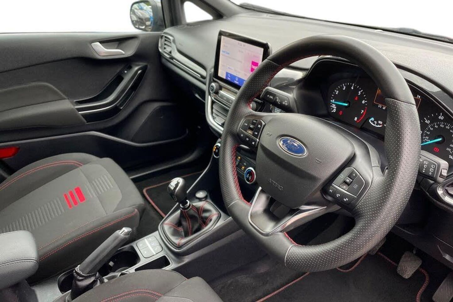 17in Alloy Wheels - 5x2-Spoke - Rock Metallic, 4.2in TFT Ice Blue Illumination Analogue Cluster with Trip Computer, Active Grille Shutter, Air Conditioning - Manual, Airbags - Driver and Front Passenger, Airbags - Front Side Impact, Airbags - Side Curtain, Anti-Lock Braking System - ABS with Electronic Brake Force Distribution - EBD, Automatic Rain Sensing Wipers and Auto-Dimming Rear View Mirror, Black Interior Headlining, Cargo Area Cover, Centre Console - Premium with Openable Stowage Area with USB Connectivity - 2 Cupholders and 12v Power Point, Chrome Exhaust Trim, Courtesy Light - Front LED with Map-reading Light, Cruise Control includes Speed Limiter and Intelligent Speed Assistance, Door Handles - Body Colour, Door Lever - Chrome Finish, Door Mirrors - Heated - Electric - Integrated Side Indicators - Body Coloured, EPAS - Electric Power Assisted Steering, Electric Windows - Rear, Electrically-Operated Front Windows with One Touch Drivers, Emergency Brake Warning - Automatic Hazard Warning Lights, Enhanced Electronic Stability Control - ESC with Traction Control - Emergency Brake Assist - EBA - Hill Start Assist - HSA, Floor Mats - Front Deluxe Carpet, Ford Easy-Fuel Capless Refuelling System, Ford SYNC2.5 without Navigation or Embedded Voice Control and Embedded Modem, Front Bumper - Unique ST-Line, Front Seat - Driver 4-Way Manual Adjust, Front Seat - Passengers Manual Fore-Aft Adjustment, Front Seats - Drivers and Passengers Seatback Map Pockets, Front Upper Grille - Unique ST-Line - Body Coloured, Gearshift Knob - Polyurethane, Handbrake - Black, IPS - Intelligent Protection System, Keyless Start, LED Headlights with Daytime Running Lights and Integrated Fog Lights, Lane-Keeping Aid with Lane-Keeping Assist, Locking Wheel Nuts, MyKey, Parking Distance Sensors - Rear, Quickclear Heated Windscreen, Rear Bumper - Unique ST-Line, Rear Fog Lamps, Rear Lights - Non-LED - Splite, Rear Privacy Glass, Rear Seat - 60-40 Split Back and Cushion, Rear Seat Centre Headrest, Remote Central-Double Locking, ST-Line Badge, Seats - Front Passenger 2-Way Adjustment, Seats - ISOFIX Mounting Provision for Child Seats, Selectable Drive Modes, Sports Seats, Sports Tuned Suspension, Steering Column - Rake and Reach Adjustment, Steering Wheel - ST-Line 3-Spoke Sensico-trimmed Flat-bottomed with Red Stitching, Tailgate Handle - Body Colour, Tailgate Wash-Wipe, Thatcham Category Alarm with Power Door Deadlocks, Traffic Sign Recognition, Auto High Beam and Driver Alert, Trip Computer, Tyre Pressure Monitoring System - TPMS, Tyre Repair Kit, Unique ST-Line Grille - Full Bodystyling Kit, and Large Body Coloured Rear Spoiler