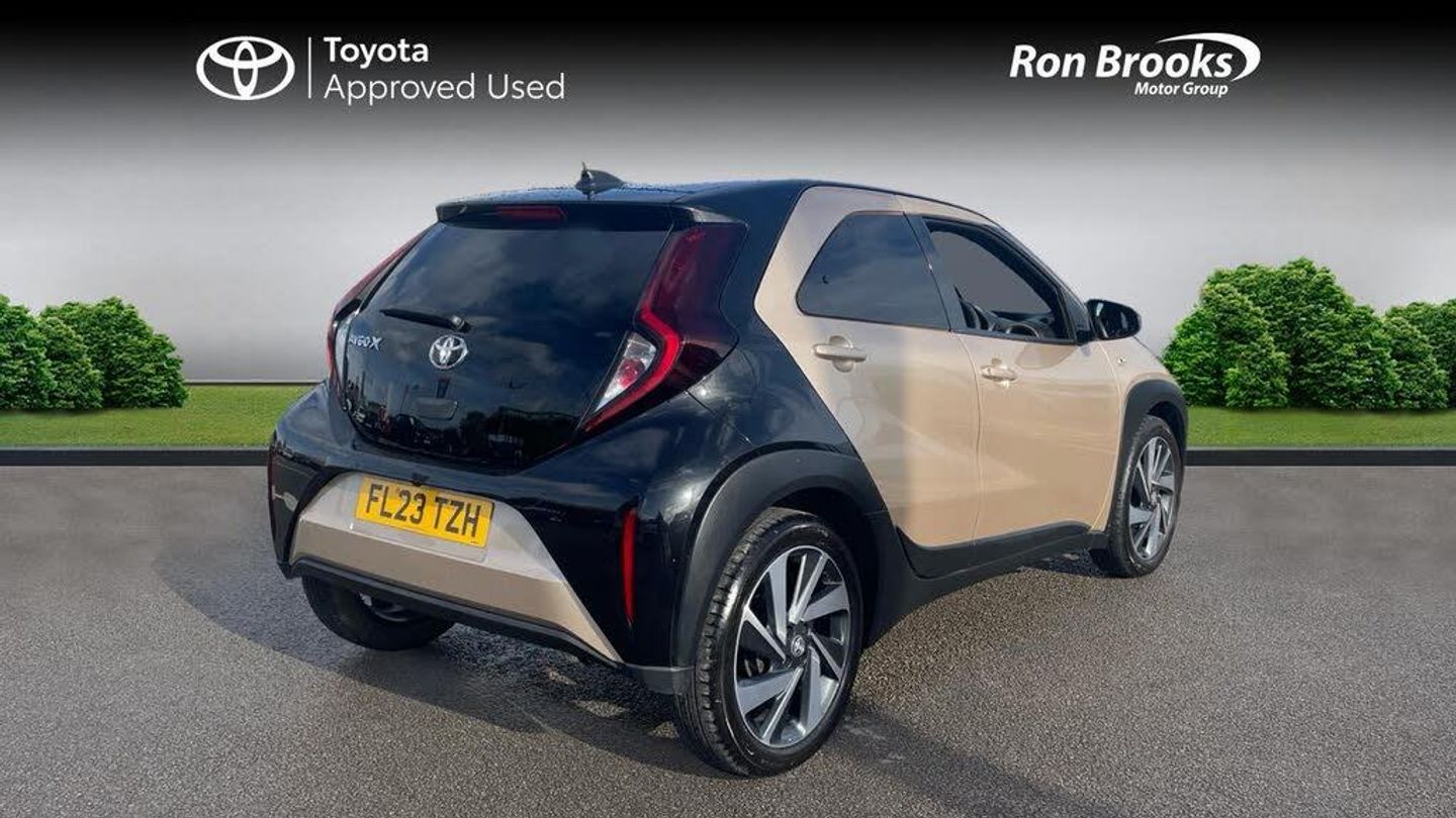 This 2023 Toyota Aygo X VVT-i Edge is a Toyota manufacturer approved vehicle with a full service history and only one owner from new, offering you complete peace of mind. This stylish Edge trim model is powered by an efficient 1.0L Euro 6 petrol engine. It comes equipped with Toyota Safety Sense, featuring adaptive cruise control that can be conveniently managed via the steering wheel. You'll also appreciate the automatic air conditioning, auto headlights, and a reversing camera for easier parking.The Aygo X Edge stands out with its impressive fuel economy of 59 mpg, demonstrating its efficiency compared to other vehicles. Its low CO2 emissions and low insurance group further highlight its cost effective nature, making it an economical choice for everyday driving. This well maintained vehicle also benefits from a 12 month warranty, ensuring your ownership experience is both enjoyable and secure.-Toyota Approved-FSH-1Yr Wty!-Ron Brooks Toyota Used Cars, 145 Point Check, Prepared to Toyota Standards & 1 Year Toyota Warranty