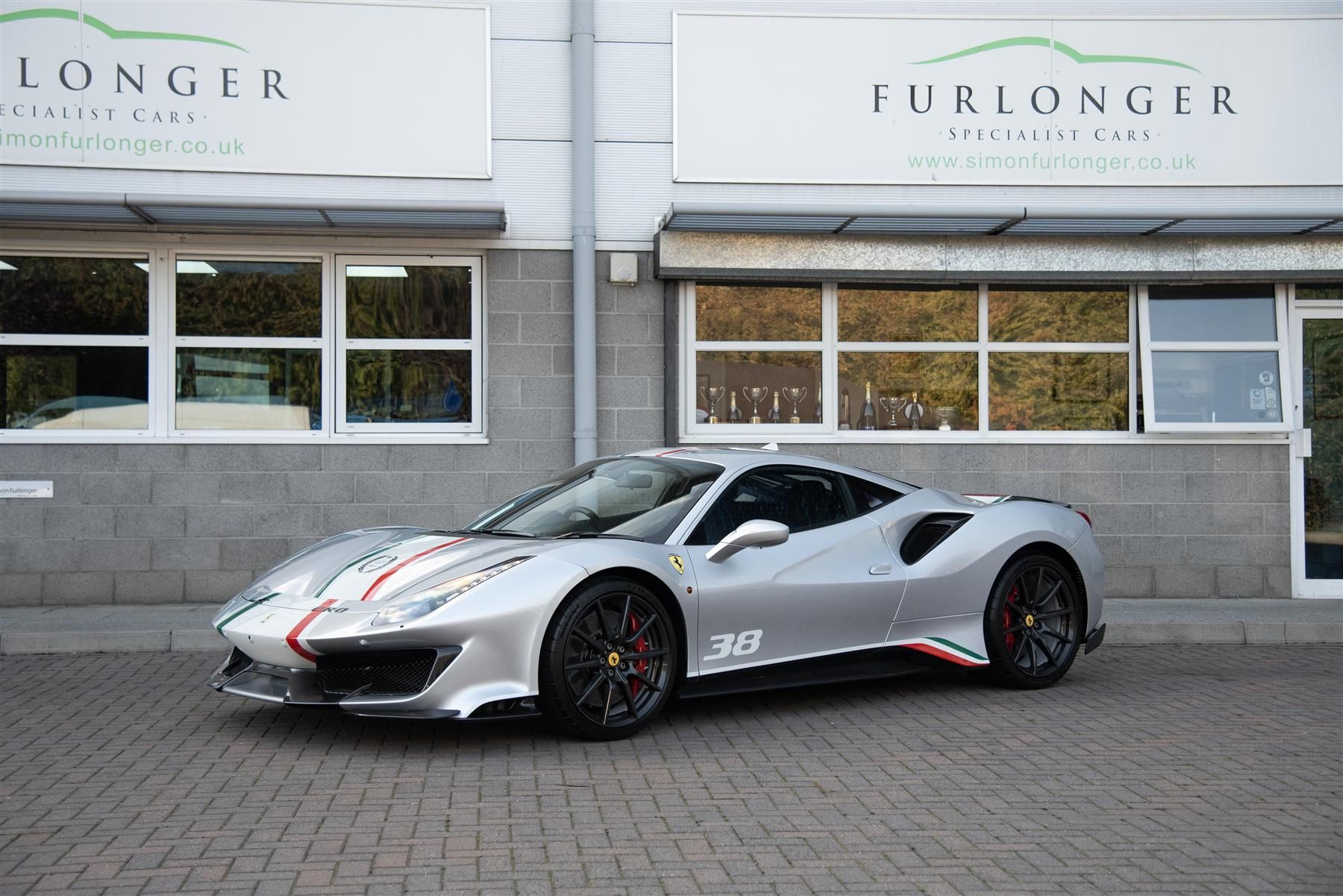 This UK-supplied Ferrari 488 Pista Piloti’s specification comprises of an Argento Nürburgring exterior, over a Nero Alcantara-trimmed interior with Rosso contrast stitching and embroidered headrest Cavallinos on the carbon fibre reclining bucket seats and a matte carbon fibre trim package. Each model has the original customer’s Corse Clienti racing number on the doors and steering wheel-base, with this example wearing number 38, in addition to the celebratory laurel reef on the bonnet.