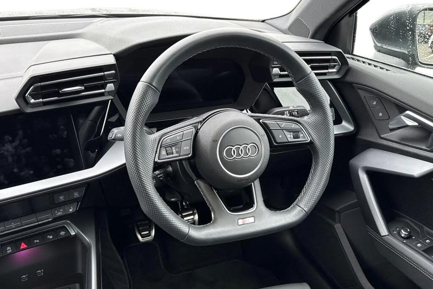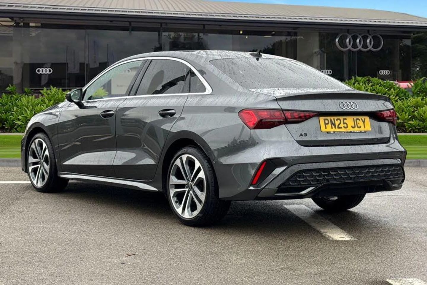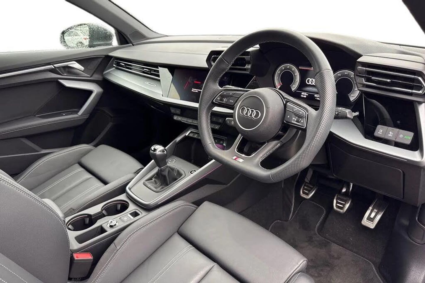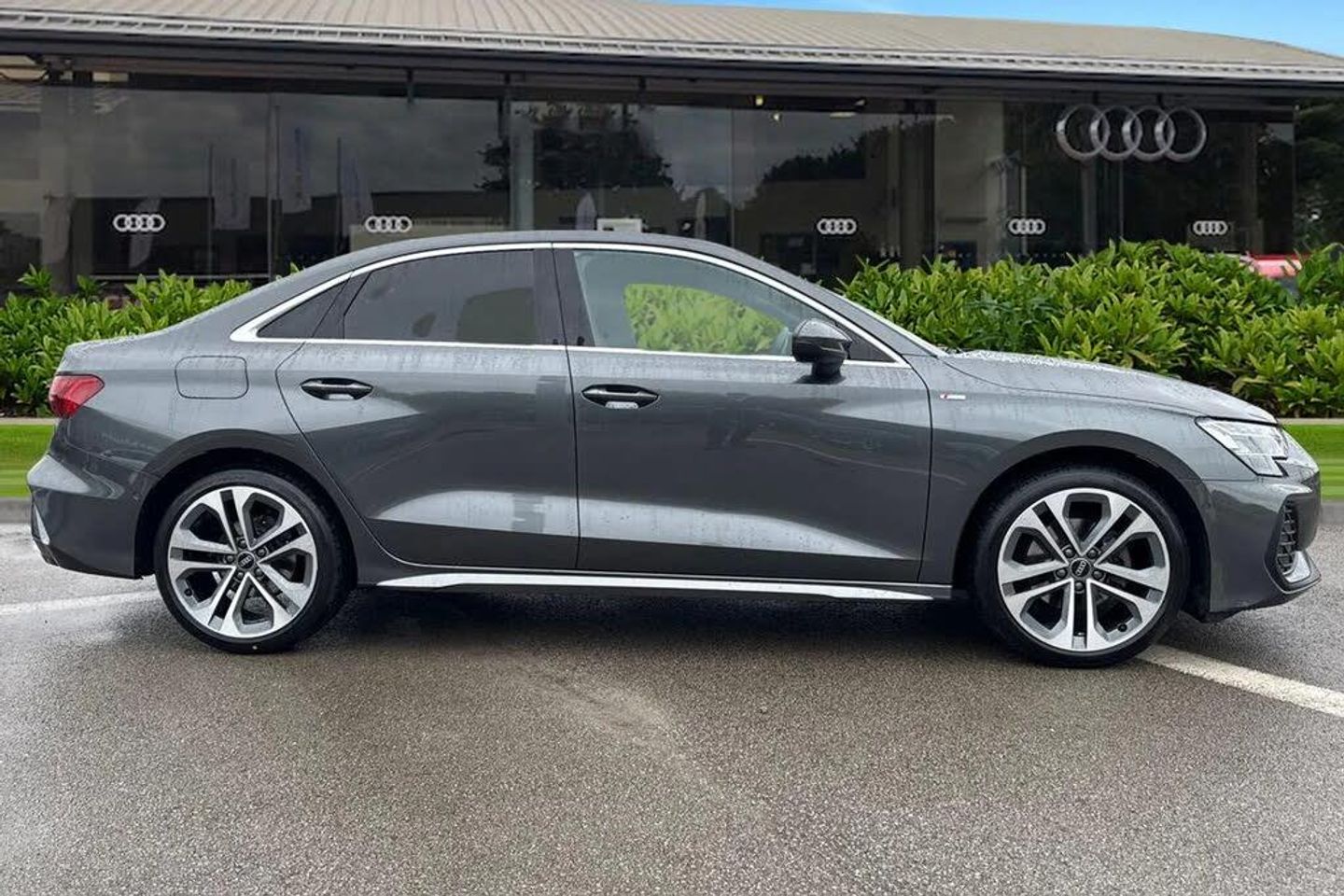 ;Experience the perfect balance of style, performance and everyday practicality with this stunning Audi A3 Saloon S line, finished in sleek Daytona Grey. Powered by a refined 1.0 TFSI 116PS engine paired with a smooth 6-speed manual gearbox, it delivers efficiency without compromising on driving pleasure ? enhanced further with Audi Drive Select to tailor your journey to any road. Sitting confidently on 18-inch alloy wheels in Graphite Grey with gloss-turned finish, this A3 pairs striking looks with sport suspension for a dynamic yet composed ride. The sharp LED headlights with dynamic rear indicators ensure maximum visibility while adding an unmistakable road presence. Step inside to discover a driver-focused cabin featuring front sports seats with 4-way lumbar support, heated seat function and a flat-bottomed leather sports steering wheel. Premium touches like aluminium inlays, multi-coloured LED interior lighting and S line detailing create a modern, refined atmosphere. Technology is at the heart of this A3: the Audi Virtual Cockpit Plus, 10.1-inch MMI Navigation Plus touchscreen and Audi Smartphone Interface put everything at your fingertips, while the Audi Phone Box Light with wireless charging keeps you seamlessly connected. Safety is paramount too, with Audi Pre-Sense Front, lane departure warning, and camera-based traffic sign recognition all included. Practicality comes with a generous 425-litre boot, split folding rear seats, and thoughtful touches like 3-zone cl...