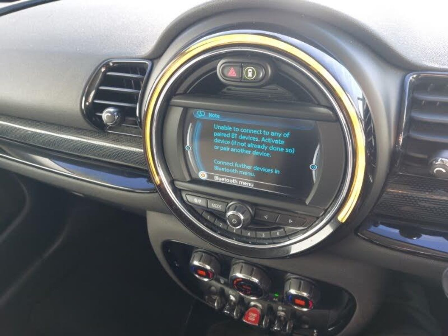 Steering wheel audio controls, Servotronic speed sensitive power steering, Service interval indicator, Personal Profile, On board computer, Navigation system, MINI TeleServices, Exterior temperature gauge, Brake pad wear indicator warning light, Diesel particulate filter, Electronic differential lock, Radio visual boost, MP3 compatible radio/single CD player, MINI Connected, DAB digital radio module, Auxiliary input socket, Interior lights pack - Mini Clubman, Thatcham category 1 alarm + immobiliser, Drive away door locking, Keyless Start