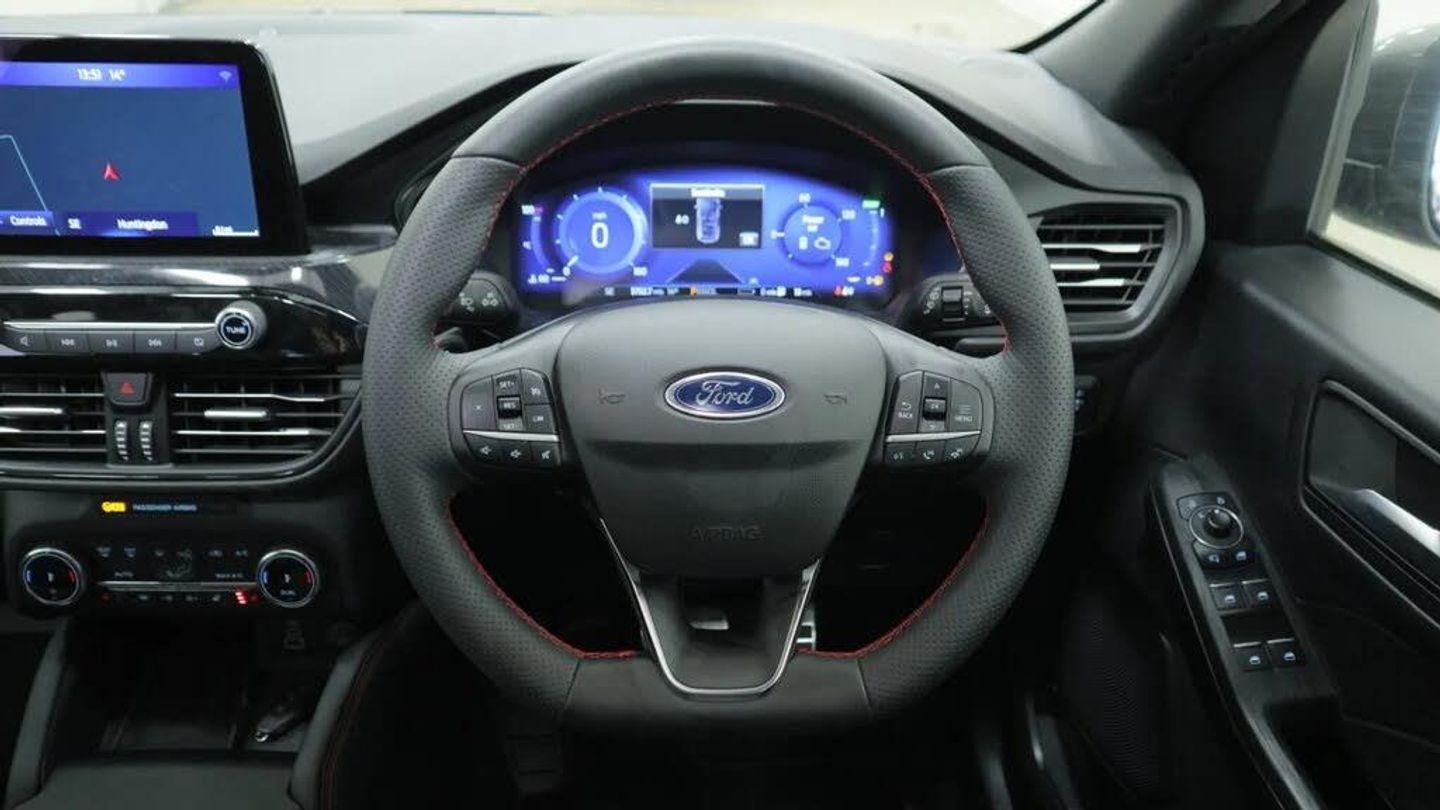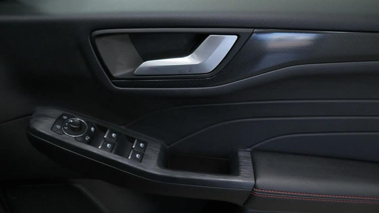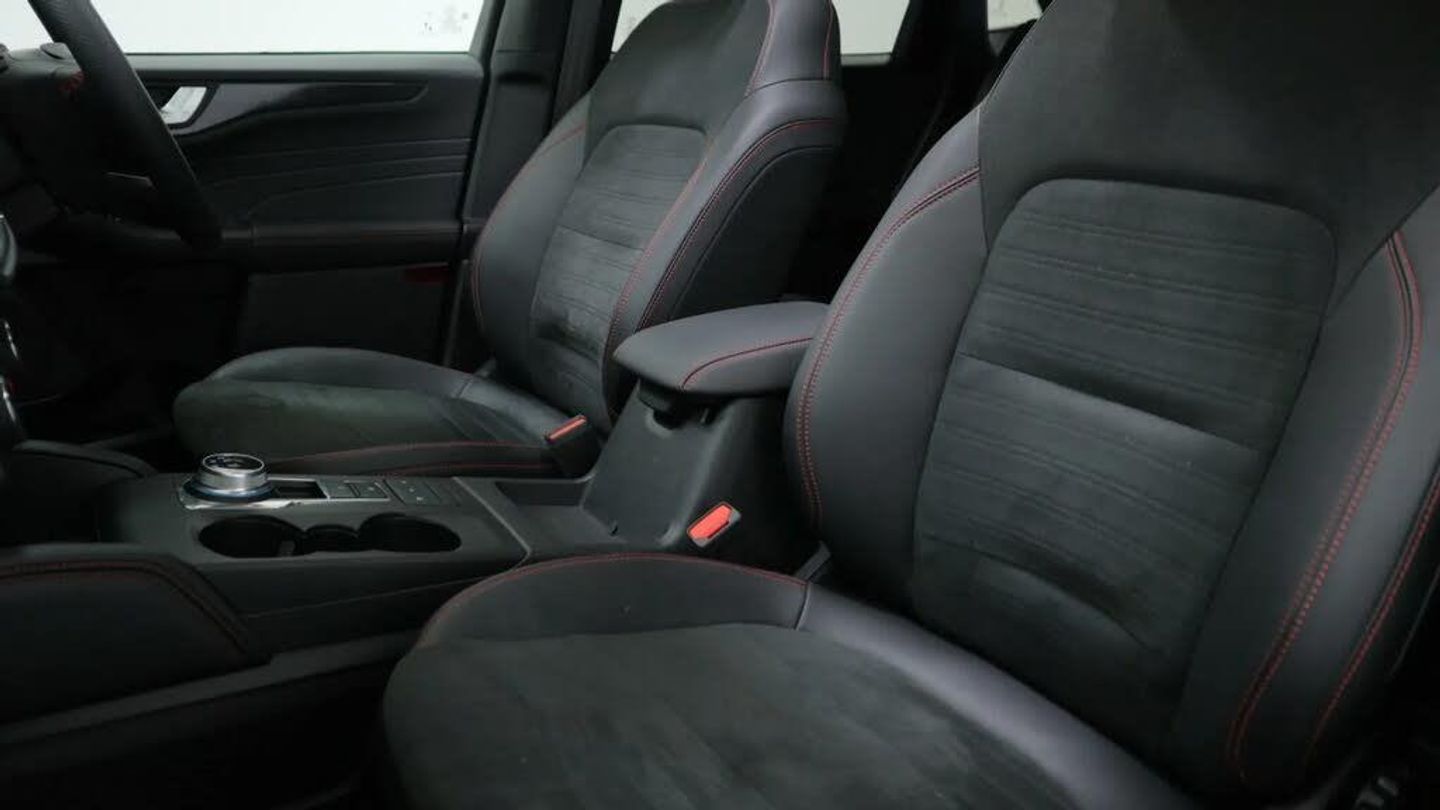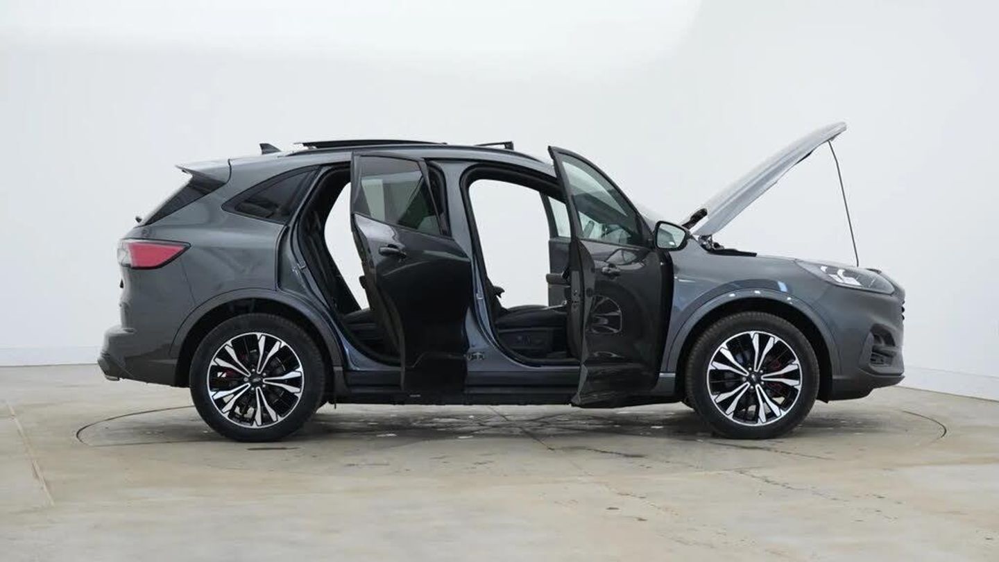 12.3" digital colour instrument cluster,Ford easy fuel,Ford SYNC 3 with 8" TFT LCD touchscreen, App Link, andriod auto/apple carPlay, emergency assistance and navigation with Ford pass connect,Front and rear parking sensors,Geo awareness,Hands free power tailgate,Lane keeping aid with lane departure warning,Power assist steering,Rear view camera,Selectable drive modes,Service interval indicator,3-Pin Home charge cable (230V/16A Domestic socket),3.7 kW monophase on board charger,Sports suspension,Twist beam rear suspension,B&O premium audio system with 10 speakers and subwoofer, 2 USB ports, DAB radio/CD,Auto headlamps with high and low beam,Black roof rails,Body colour bumpers,Day/night rear view mirror,Front LED fog lamps,Large rear roof spoiler,LED daytime running lights,LED rear lights,Power folding, electrically adjustable and heated door mirrors with puddle lights,Power front/rear windows with global close,Power opening panoramic roof,Quickclear heated windscreen,Rain sensing wipers,Rear privacy glass,Rear side wing doors,Rear wiper,ST Line body styling kit with unique front and rear fascia and bumper, rear painted diffuser, front painted skid plates, dark mesh upper grille,ST Line front scuff plates,Third brake light,Twin exhausts,2nd row sliding seats with 60:40 split,Alloy pedals,Centre console with electronic parking brake,Dark headlining and pillars,Electronic automatic temperature control (EATC),Flat bottomed leather steering wheel in sensico with red stitching,Front and rear head restraints,Heated passenger and driver seats,Heated rear seats,Heated steering wheel,Partial premium touch Sensico with black cloth inserts and red stitching,Rear centre head restraint,Single front passenger seat,Sports seats,ST Line front and rear floor mats,3x3 point rear seatbelts,Airbags - front driver/passenger, front and rear curtain,Drivers knee airbag,Electronic stability control (ESC) and ABS,Ford MyKey Gen 2 safety system,Manual child proof rear door locks,Post collision braking,Pre collision assist with autonomous emergency braking,Rear seat Occupancy alert,Red brake calipers,Tyre pressure monitoring system,Engine immobiliser,Keyless entry and Ford power start button (Keyless start),Locking wheel nuts,Remote powered central double locking doors,Thatcham category 1 alarm,Magnetic,Mini Spare Wheel - 17in Steel