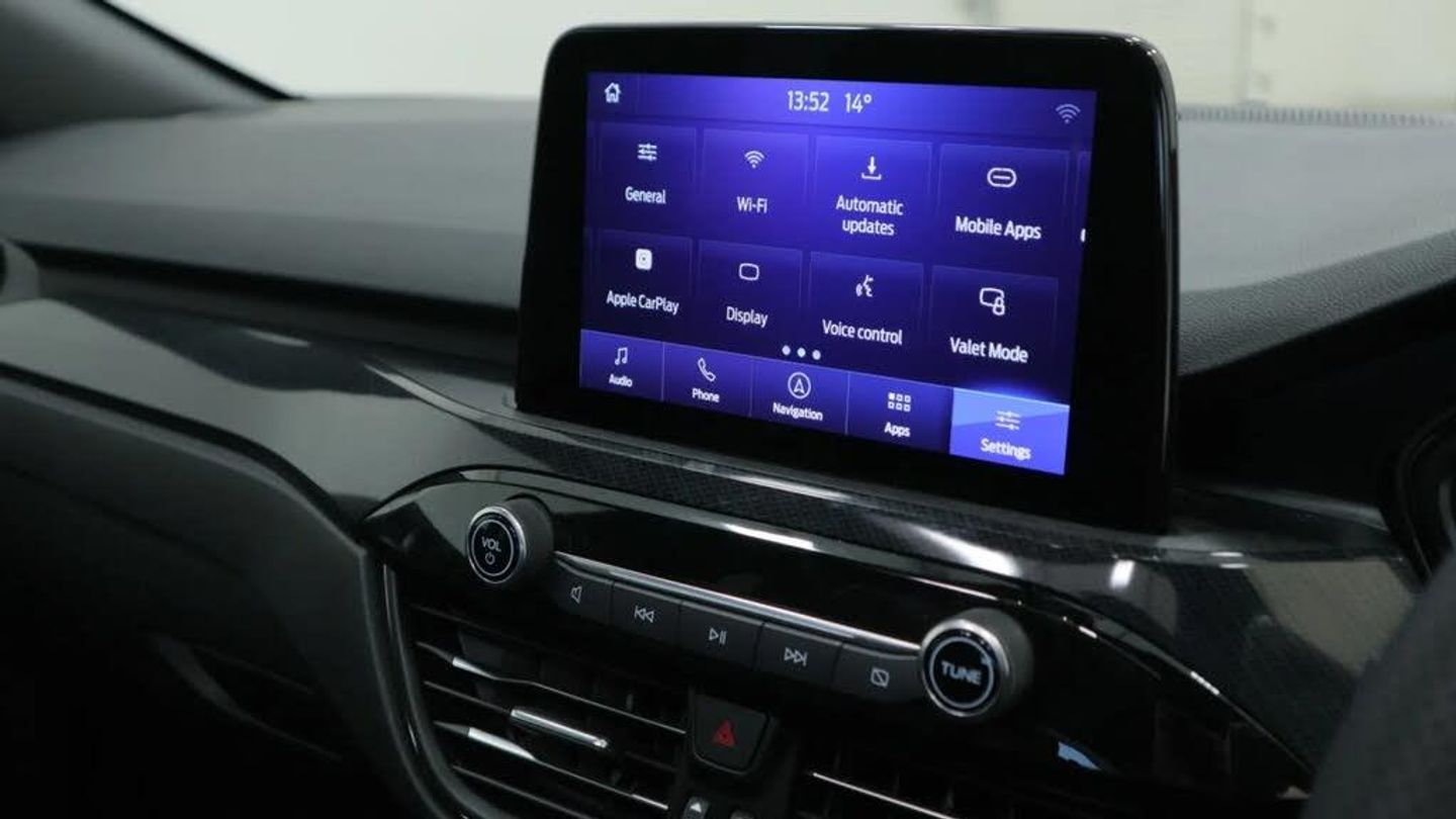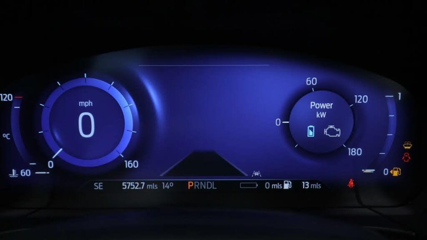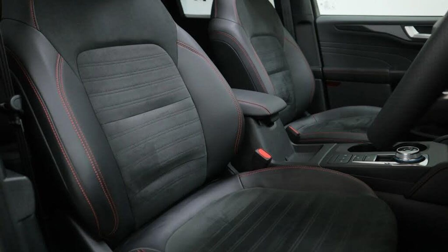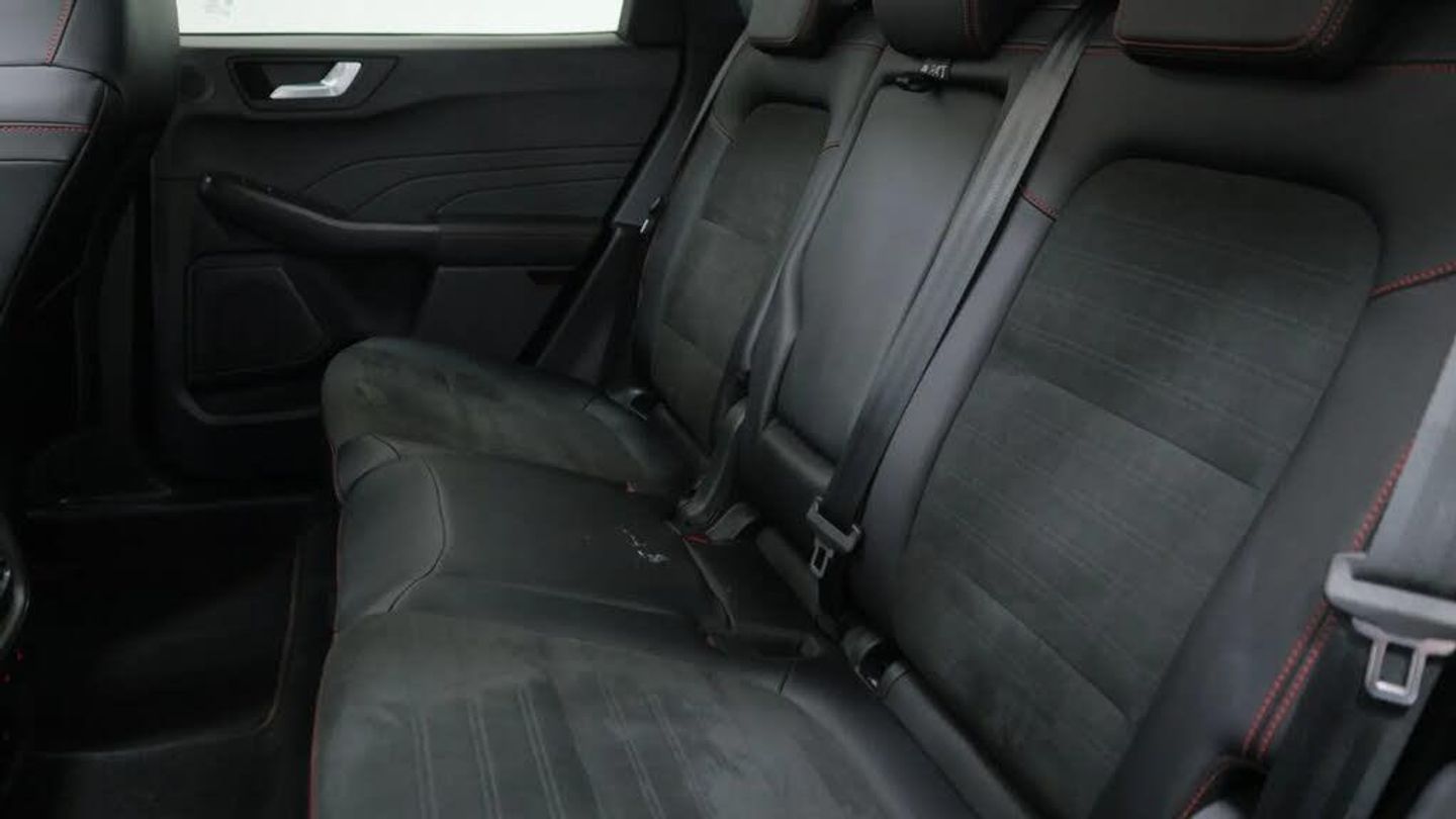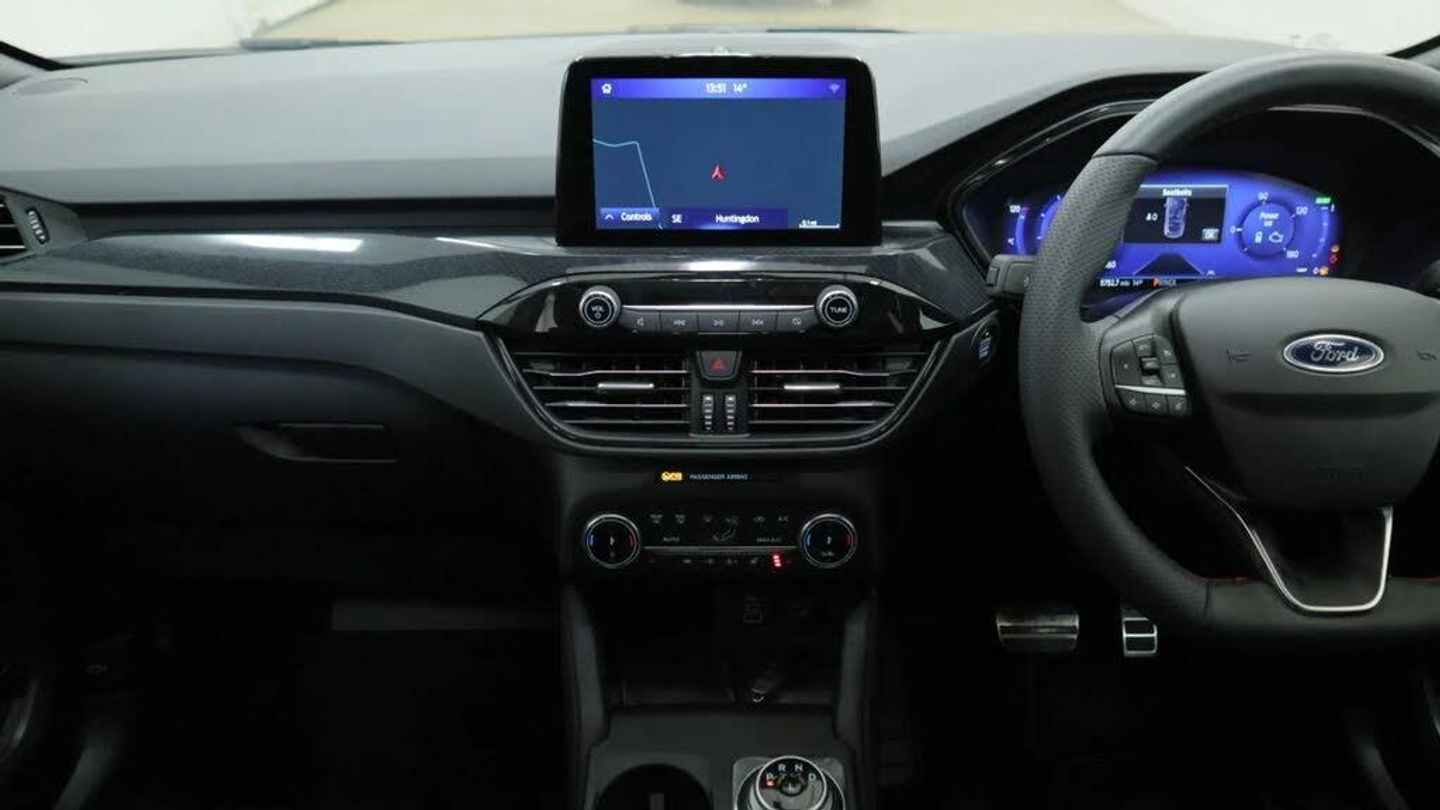 12.3" digital colour instrument cluster,Ford easy fuel,Ford SYNC 3 with 8" TFT LCD touchscreen, App Link, andriod auto/apple carPlay, emergency assistance and navigation with Ford pass connect,Front and rear parking sensors,Geo awareness,Hands free power tailgate,Lane keeping aid with lane departure warning,Power assist steering,Rear view camera,Selectable drive modes,Service interval indicator,3-Pin Home charge cable (230V/16A Domestic socket),3.7 kW monophase on board charger,Sports suspension,Twist beam rear suspension,B&O premium audio system with 10 speakers and subwoofer, 2 USB ports, DAB radio/CD,Auto headlamps with high and low beam,Black roof rails,Body colour bumpers,Day/night rear view mirror,Front LED fog lamps,Large rear roof spoiler,LED daytime running lights,LED rear lights,Power folding, electrically adjustable and heated door mirrors with puddle lights,Power front/rear windows with global close,Power opening panoramic roof,Quickclear heated windscreen,Rain sensing wipers,Rear privacy glass,Rear side wing doors,Rear wiper,ST Line body styling kit with unique front and rear fascia and bumper, rear painted diffuser, front painted skid plates, dark mesh upper grille,ST Line front scuff plates,Third brake light,Twin exhausts,2nd row sliding seats with 60:40 split,Alloy pedals,Centre console with electronic parking brake,Dark headlining and pillars,Electronic automatic temperature control (EATC),Flat bottomed leather steering wheel in sensico with red stitching,Front and rear head restraints,Heated passenger and driver seats,Heated rear seats,Heated steering wheel,Partial premium touch Sensico with black cloth inserts and red stitching,Rear centre head restraint,Single front passenger seat,Sports seats,ST Line front and rear floor mats,3x3 point rear seatbelts,Airbags - front driver/passenger, front and rear curtain,Drivers knee airbag,Electronic stability control (ESC) and ABS,Ford MyKey Gen 2 safety system,Manual child proof rear door locks,Post collision braking,Pre collision assist with autonomous emergency braking,Rear seat Occupancy alert,Red brake calipers,Tyre pressure monitoring system,Engine immobiliser,Keyless entry and Ford power start button (Keyless start),Locking wheel nuts,Remote powered central double locking doors,Thatcham category 1 alarm,Magnetic,Mini Spare Wheel - 17in Steel