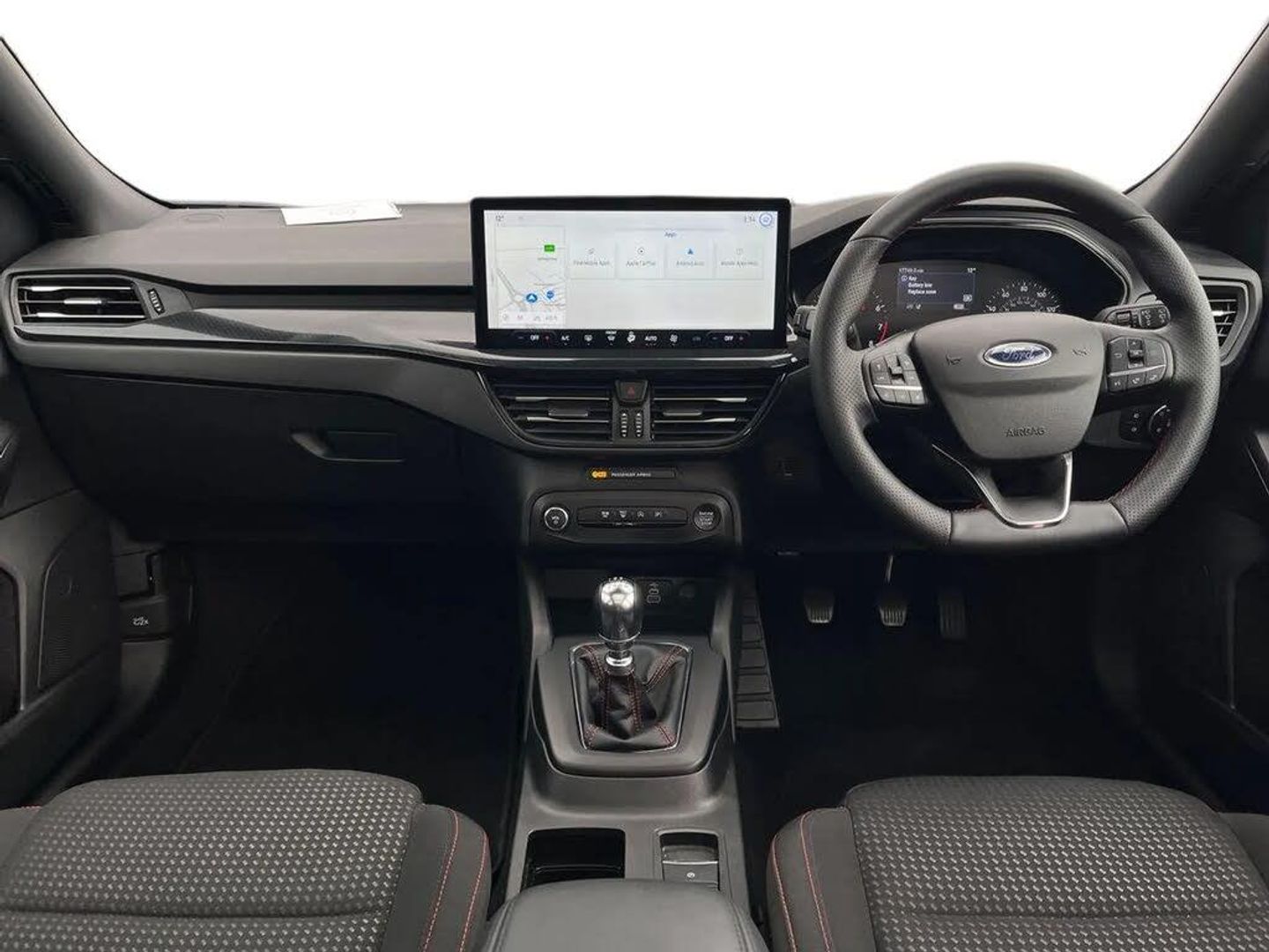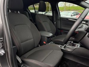 4.2" Colour TFT Ice blue illumination analogue cluster with trip computer,Bluetooth system,Digital clock,Easy fuel capless refuelling system,Eco mode,Ford SYNC 4 Navigation with 13.2'' touchscreen, DAB radio, Emergency Assistance, Apple Carplay & Android Auto, 6 speakers & FordPass Connect,Lane keeping system - lane keeping alert and lane keeping aid,PAS,Rev counter,Selectable drive mode,Service interval indicator,Sports tuned suspension,2 USB ports,Auto headlamps (on/off),Body coloured door handles,Electrically operated front and rear windows with one touch opening and closing,Electrically operated heated power fold door mirrors with puddle lamp with side indicators,Front variable intermittent wipers with electric wash,Full fixed LED headlamps,Heated rear window,LED daytime running lamp,LED rear lamps,LED third brake light,Polished twin tailpipe,Privacy glass,Quickclear heated windscreen,Rain sensor,Rear side wing doors,Tailgate wash/wipe,Unique ST-Line grille, full bodystyling kit, and large body coloured rear roof spoiler,3 rear headrests,3 seat bench in 2nd row,Cloth upholstery,Dual zone electronic air temperature control,Height adjustable front headrests,Isofix child seat preparation,Manual 2-way passenger seat adjust,Manual 4-way driver seat adjust, with manual lumbar adjust,Reach + rake adjustable steering column,Single front passenger seat,3x3 point rear seatbelts,ABS+Electronic Brake force Distribution,Auto hold function,Driver airbag,EDL traction control,Electronic parking brake,Electronic stability control,Front and rear seatbelt reminder,Front inertia reel height adjustable seatbelts with pre-tensioners,Front passenger airbag,Front side airbags,Passenger airbag deactivate switch,Post collision braking,Pre collision assist with autonomous emergency braking and pedestrian/cyclist detection,Remote/power child rear door locks,Side curtain airbags,Three rear inertia reel lap/diagonal seatbelts,Tyre pressure monitoring system,Keyless entry and keyless start,MyKey system,Remote central locking & engine immobiliser,Thatcham alarm with power door dead locks,17" 5 spoke Rock mettalic finish alloy wheels with mini spare wheel,Blind Spot Information System,Driver Assistance Pack,Panoramic Roof - Openable,Parking Pack