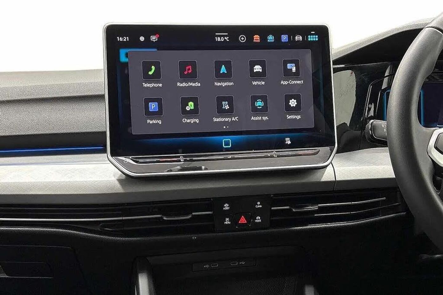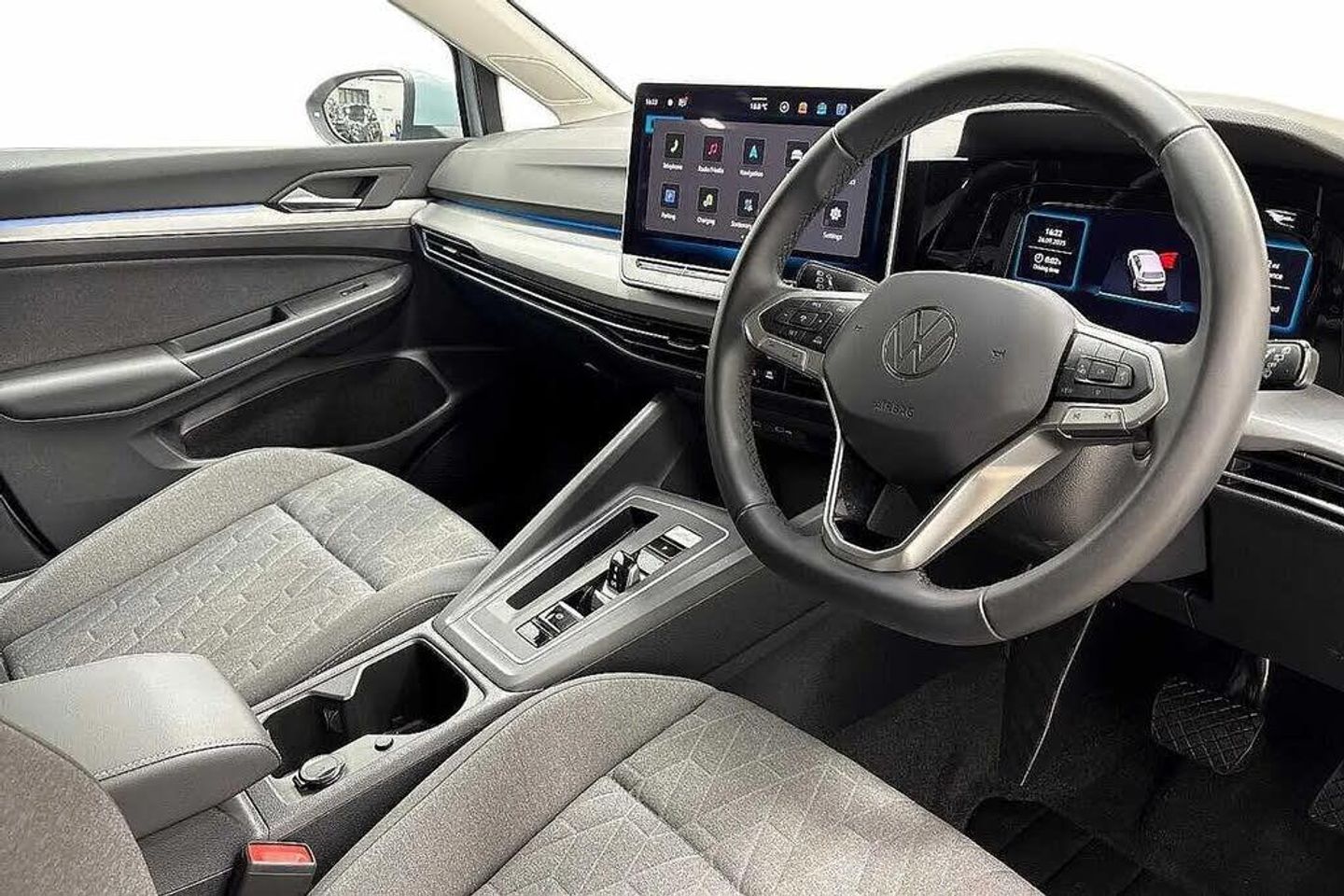 Metallic - Crystal Ice Blue,Front and rear electric windows,Heat insulating windshield made of laminated glass,Rain sensor,Rear tinted glass 65% light absorbing from B pillar backwards,Rear windscreen washer and wiper with interval delay,Body colour door handles,Rear exhaust tailpipe,Rear side wing doors,Standard bumpers,3rd brake light,Auto headlights,Automatic headlamp activation with Coming home and Leaving home feature,Exterior ambient lighting with illuminated door handles,LED daytime running lights,Rear fog light on one side and reversing lights on both sides,Welcome light with surround lighting,ABS,Autonomous emergency braking front assist with pedestrian and cyclist monitoring,Electronic parking brake with auto hold,ESC (Electronic Stability Control),Hill start assist,Rear disc brakes,Volkswagen roadside assistance,Activated carbon canister,Adaptive cruise control (ACC),Advanced driver attention and drowsiness monitor,Dynamic road sign display,Multifunction front facing camera for distance control,Oncoming vehicle braking when turning including swerve support,Preparation for light assist system,Speed limiter,Auto dimming rear view mirror,Body colour door mirrors,Exterior mirrors convex on the left and aspherical on the right,Remote electrically foldable door mirrors,puddle lights and reverse activated passenger's door mirror,3 point height adj front seatbelts + pretensioners,3 rear three point seatbelts,Child locks on rear doors,Driver and front passenger airbag with front passenger airbag deactivation,Extended pedestrian protection measures,Two tone horn,Tyre pressure loss indicator,E-Sim card for online connectivity,eCall emergency call system,We connect preparation,Wireless app connect,2 USB C ports in front,2 USB charging sockets on the centre console in the rear charging capacity upto 45W,6 Speakers - 4 in front and 2 in rear with central speaker,Comfort telephony + wireless charging,without wireless aerial connection,Digital radio reception (DAB),Diversity antenna for FM reception,Gaming platform via car app,Infotainment system with 12.9" display,Mobile phone interface with inductive charging feature,Multi-color Digital cockpit pro,selection of different info profile possible,Navigation system,Speedo,rev counter,electronic odometer,trip,service interval display,exterior temperature and fuel gauge,Traffic jam assist,Voice enhancer and voice control,Warning signal and warning light for front and rear seatbelts not fastened,We connect plus preparation,Hybrid propulsion system,Petrol Particulate Filter,Start-stop system with battery regeneration (recuperation - energy recovery during braking),Nature cross brushed decorative inserts for dashboard and front door panels,3 rear head restraints,3 seat bench in 2nd row,Front head restraints,Front seat lumbar support adjuster,ISOFIX anchors for child seats on outer rear bench seats and on front passanger seat compatible for i-Size,Manual height adjustable front seats,Single front passenger seat,Split folding backrest with centre armrest and unsplit rear seat bench,Air care climatronic 3 Zone automatic climate control with rear air conditioning control panel,12V socket in front centre console,12V socket in luggage compartment,Chrome plated radiator grille inserts,air vent surrounds and light switch surrounds,Front centre armrest,Plastic gear knob,Rear cupholder and loadthough,Soul black instrument panel,Standard pedal cluster,Storm grey roof lining,Luggage compartment lighting,XDS electronic differential lock for improved traction and handling,Sun visors with illuminated vanity mirrors,Technology park and comfort pro package - Golf Hatchback,Anti theft wheel bolts,Preparation for alcohol interlock,Charging cable Mode 2 Type 2 (10A),Charging cable mode 3,type 2 32 A,Tool kit for tyre mobility set,Tyre mobility kit Includes 12V compressor and tyre sealant