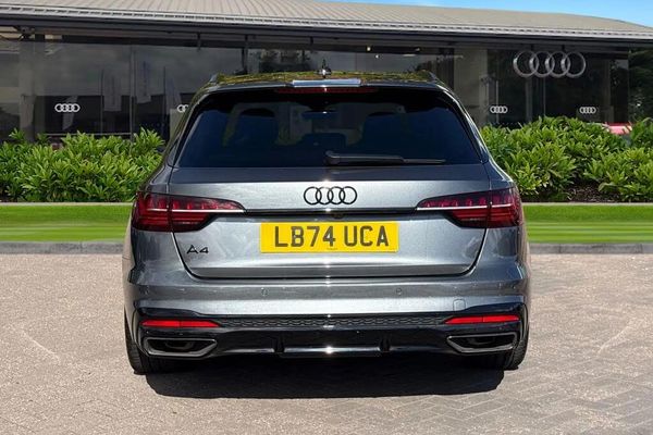 ;Welcome to this gorgeous 2024 Audi A4 Avant TFSI Black Edition is an Audi manufacturer approved vehicle, offering peace of mind with its proven provenance. This stylish estate car features a 2.0 litre petrol engine, meeting Euro 6 emission standards. The Black Edition trim enhances its sophisticated appearance, and it comes equipped with the desirable Technology Pack, which includes advanced LED headlights for superior visibility, a premium branded sound system to elevate your driving experience, and convenient wireless phone charging. Experience the dynamic performance of this A4 Avant, capable of accelerating from 0 to 62 miles per hour in just 7.3 seconds. This impressive acceleration demonstrates how this particular model offers a more engaging and responsive drive compared to many other vehicles in its class. The combination of its powerful yet efficient engine, refined handling, and the comprehensive technology package makes this Audi A4 Avant TFSI Black Edition a compelling choice for those seeking both practicality and driving pleasure. ?This vehicle is compliant with Clean Air Zone (CAZ) or Ultra Low Emission Zone (ULEZ) regulations, meaning it produces low emissions and helps to improve air quality in our cities.