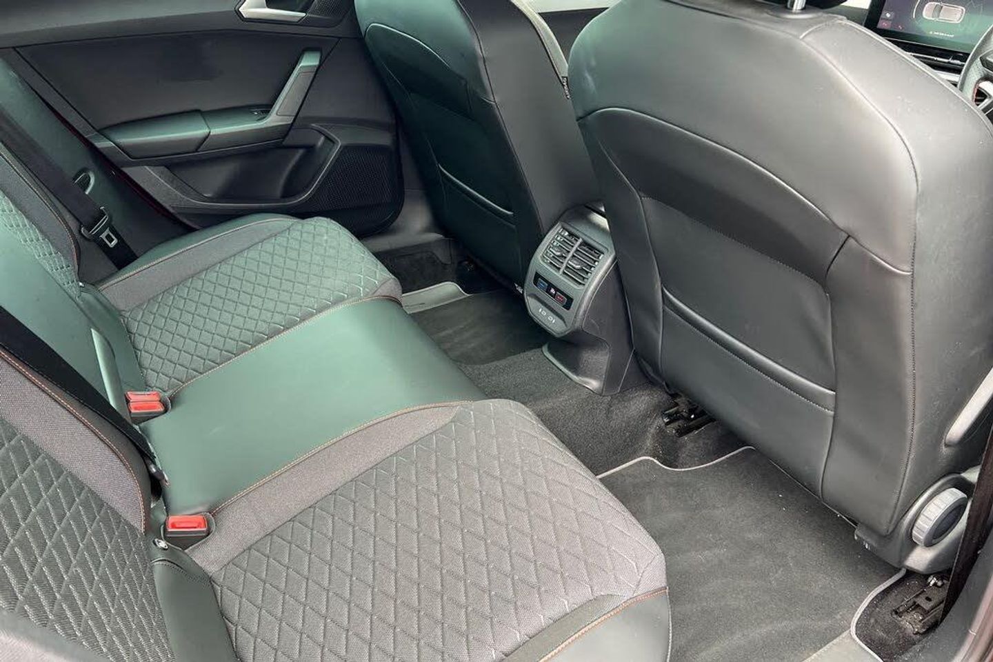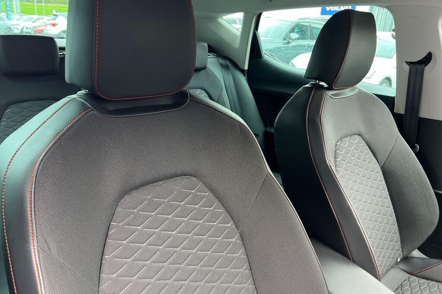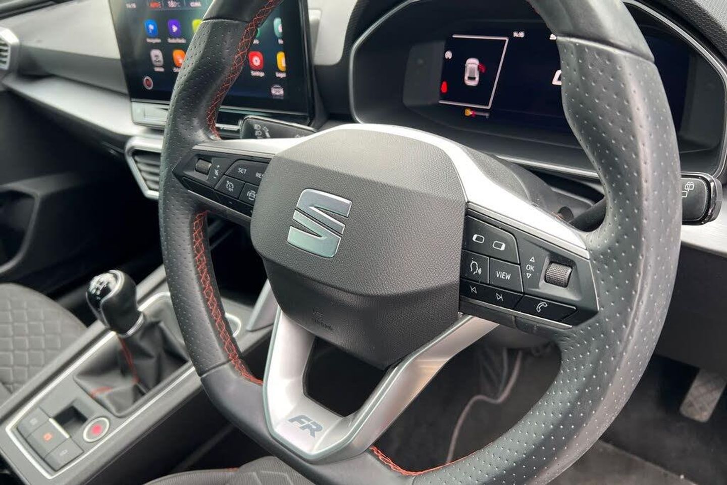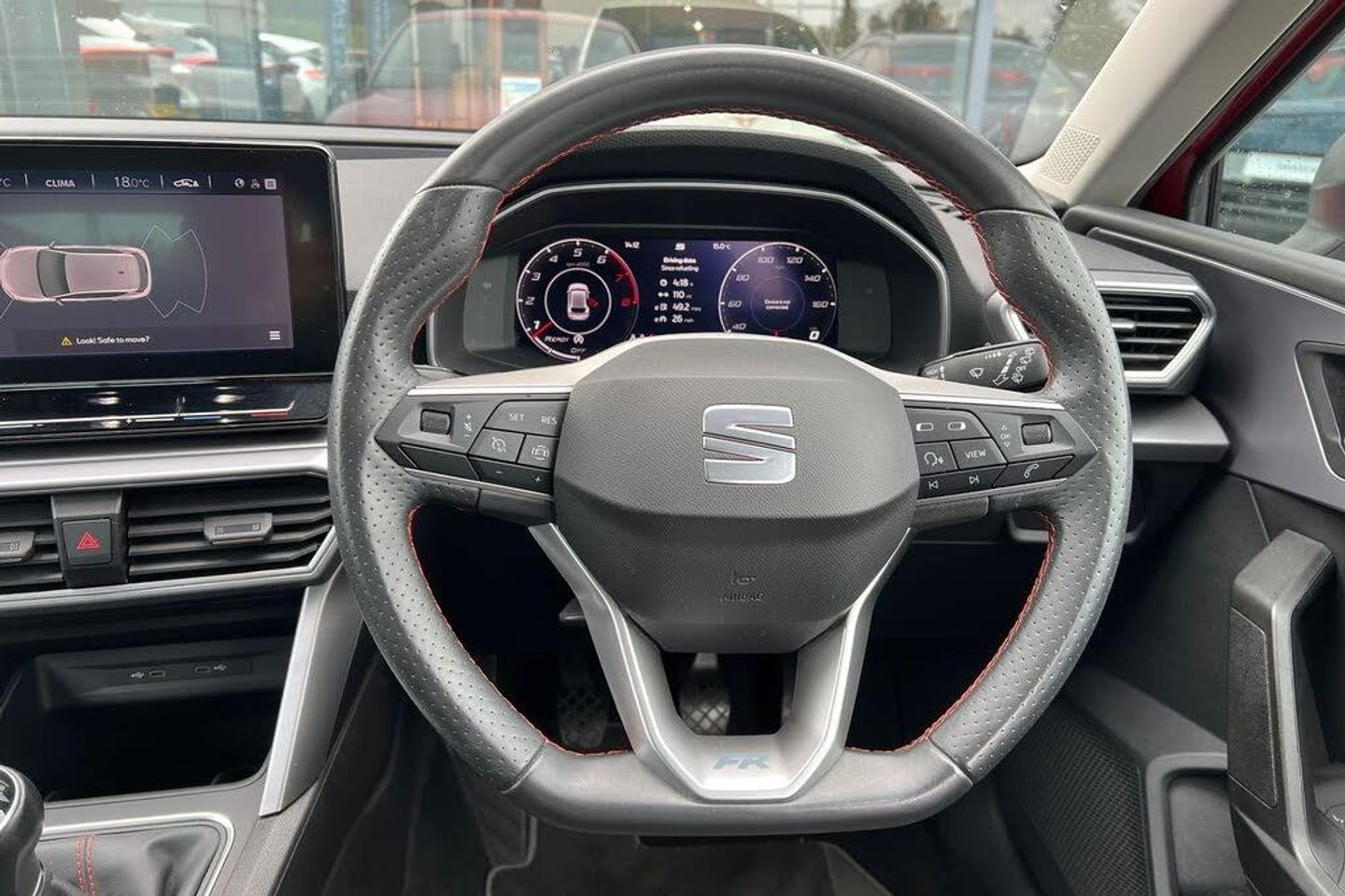 Seat Approved Sale, 12 Months Seat Approved Warranty, No Administration Fees Applicable, Complimentary 5 Day Drive Away Insurance, Up to 24 Months Seat Approved Warranty, Metallic paint, Metallic - Desire red, Cloth - Grey with lava red stitching and black door panels, Dark tinted rear windows, Electric front/rear windows, Rain sensing wipers, Rear wash/wipe, Sports suspension, Body colour door handles, Body coloured bumpers, FR sports bumper, Illuminated front door sill, LED front fog lamps with cornering function, LED headlights and tail lights with dynamic turn signals, welcome light silhouette from exterior mirrors and dynamic headlight range control, LED rear fog lamp, Separate daytime running light with automatic headlight control and coming home feature, ABS, Brake control system - ESC and brake booster, Electronic parking brake, Hill hold control, Rear disc brakes, Front assist with forward collision warning braking reaction to vehicles, pedestrians and cyclists, Lane keeping system, Park assist (inc front/rear parking sensors), Power assisted speed sensitive electro-mechanical steering, SEAT drive profile with 4 modes (Eco/Normal/Sport/Individual), throttle response, Auto dimming rear view mirror, Cosmo grey exterior mirrors with integrated LED indicators, Electrically adjustable, heated and folding door mirrors, 3 point seatbelts on all rear seats, Child proof door locks, Driver and front passenger airbags with front passenger airbag de-activation, front side and curtain airbags, Extended safety system - seat belt tensioner, window closure and hazard lights, Seat belt reminder for front and rear seats, Tiredness recognition system, driver alert system, Tyre pressure monitoring system, Full link smartphone integration with Mirror Link, wireless Apple CarPlay and wired Google Android Auto, Auxiliary input socket, Lockable tailgate, Start/stop system with regenerative braking, Digital cockpit, RPM, trip computer, outside temp gauge, instrument light brightness, low fuel warning light, lights on reminder, gearshift indicator, Service interval indicator, Chrome interior detailing, 60/40 split rear bench seat with armrest, Driver/passenger manual seat height adjustment, Front and rear height adjustable headrests, ISOFIX points in outer rear seats with top tether anchorage points, Lumbar adjustment for front seats, Dust/pollen filter, Three zone climate control, 12v power point in centre console, Cloth upholstery, Flat bottomed perforated leather steering wheel with red stitching and FR logo and leather gear stick, Folding boot cover, Front centre armrest, Front seatback storage pockets, Height/reach adjust steering wheel, Luggage tie-down hooks, Ambient lighting in door trim, Front and rear reading lights X 4, Interior lighting with LED lighting in sunvisor, glovebox and rear headlining, XDS electronic differential lock and dynamic traction support, Sunvisors with covered illuminated mirror, Media system plus with navigation - Leon, Anti theft alarm system with interior monitoring in cab, backup horn and towing protection, KESSY Go (Keyless start), Locking wheel bolts, Wireless phone charging, 17" Dynamic Bi-spoke alloy wheels with 91W tyres, Tool kit