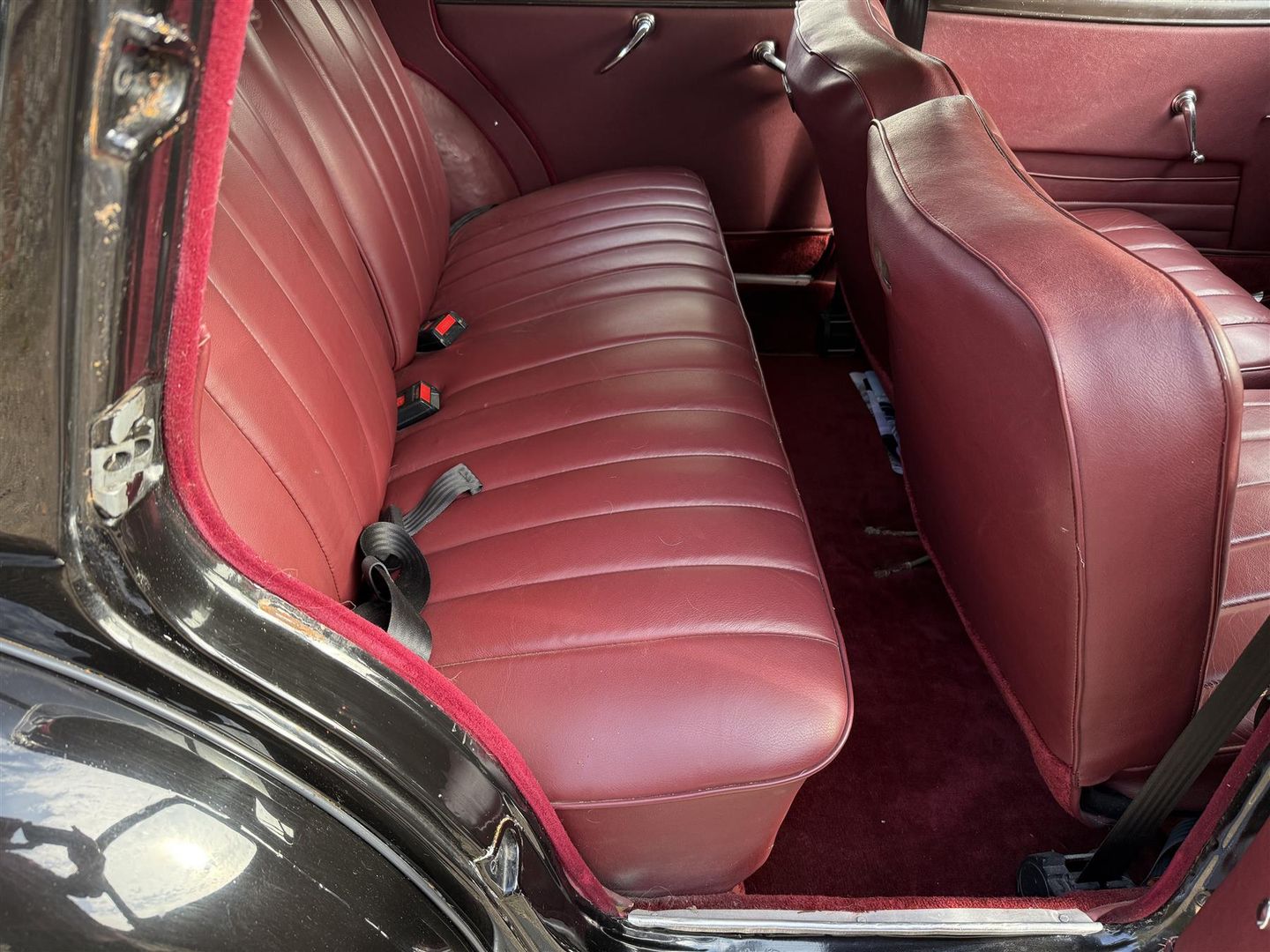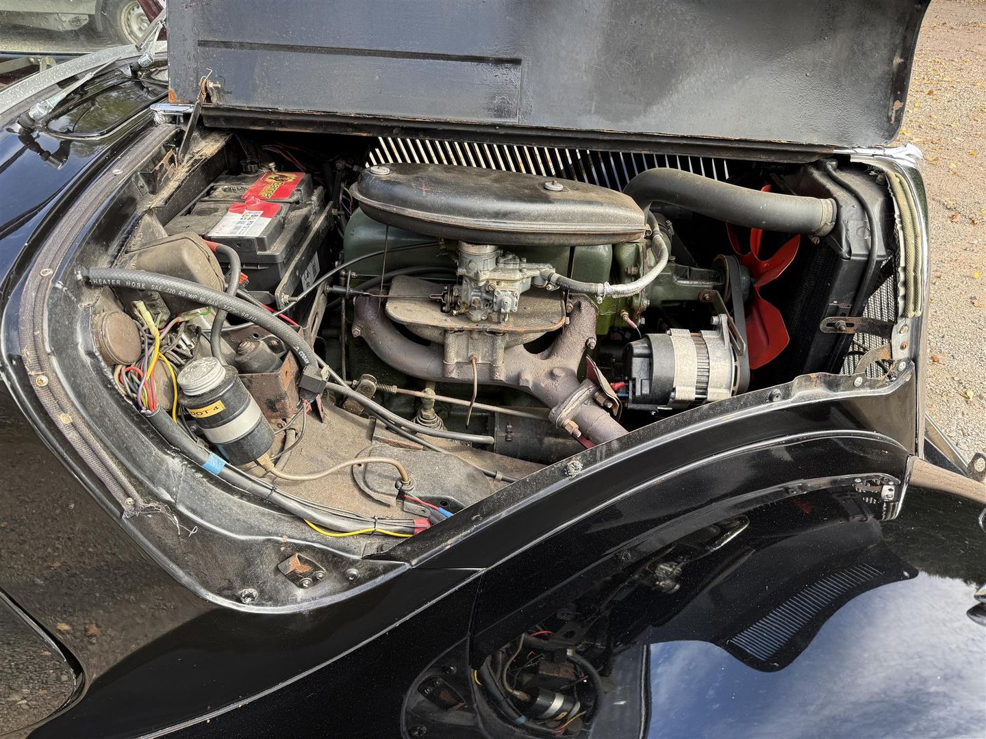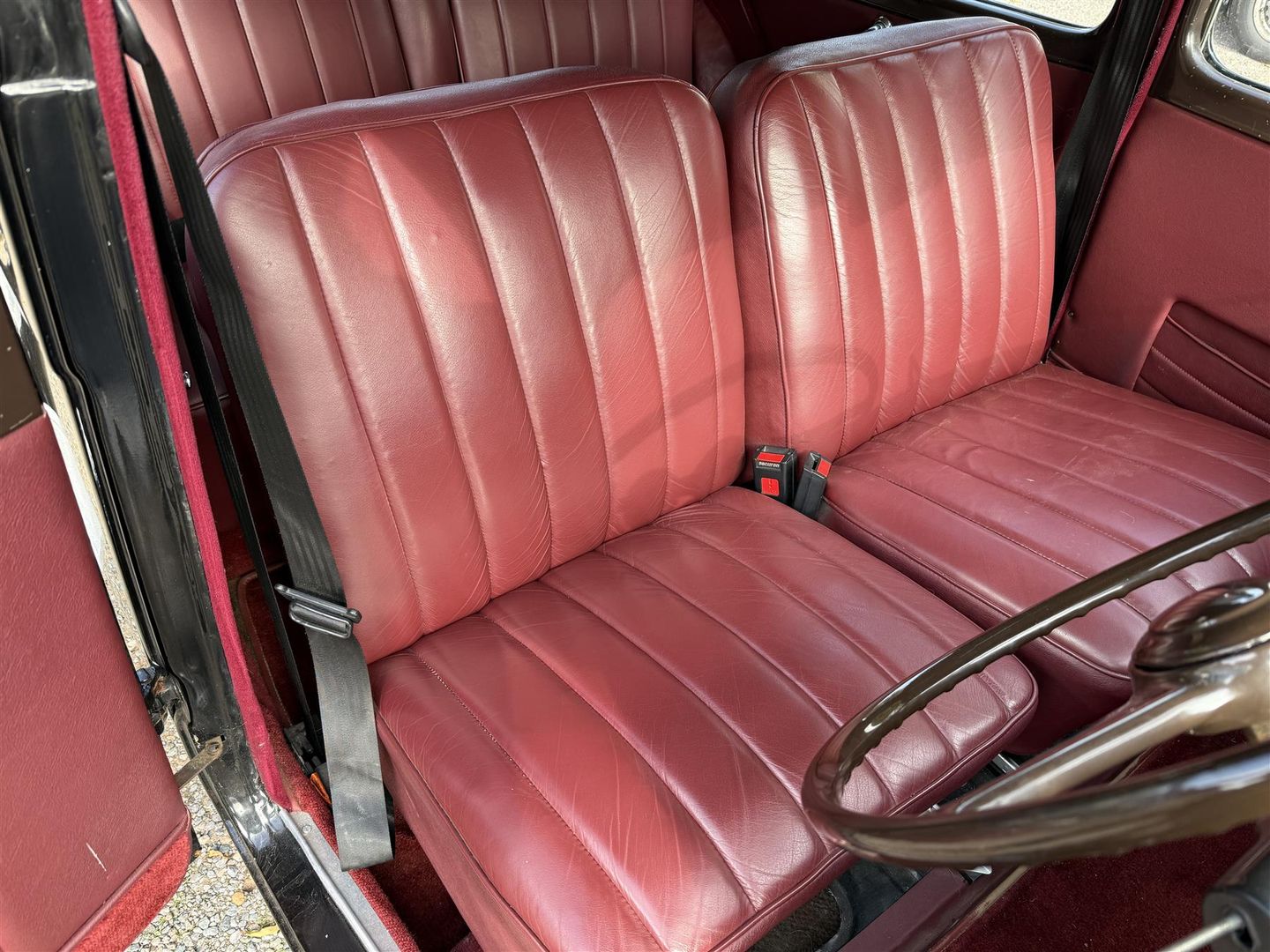 Electronic ignition, upgraded electrics including alternator, oil pressure and temperature gauges, unleaded head, inertia reel front seat belts, and rear seat belts, and is consequently lovely to drive without having lost it’s intrinsic character.