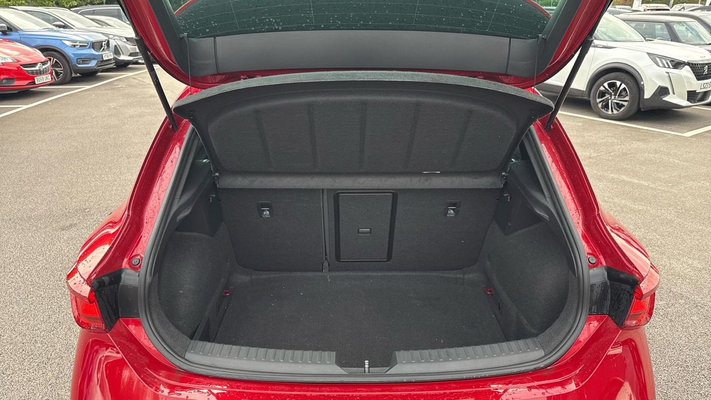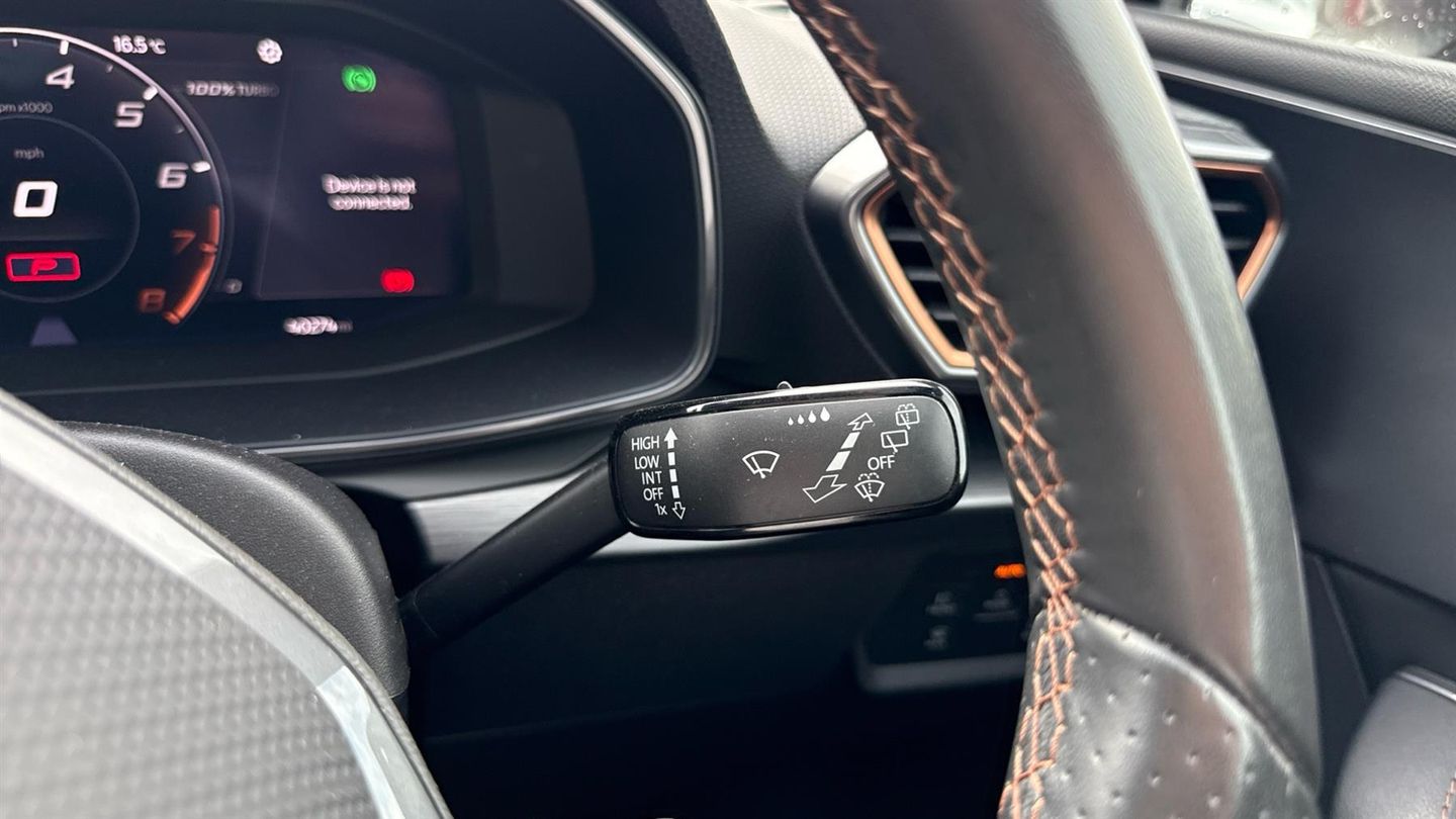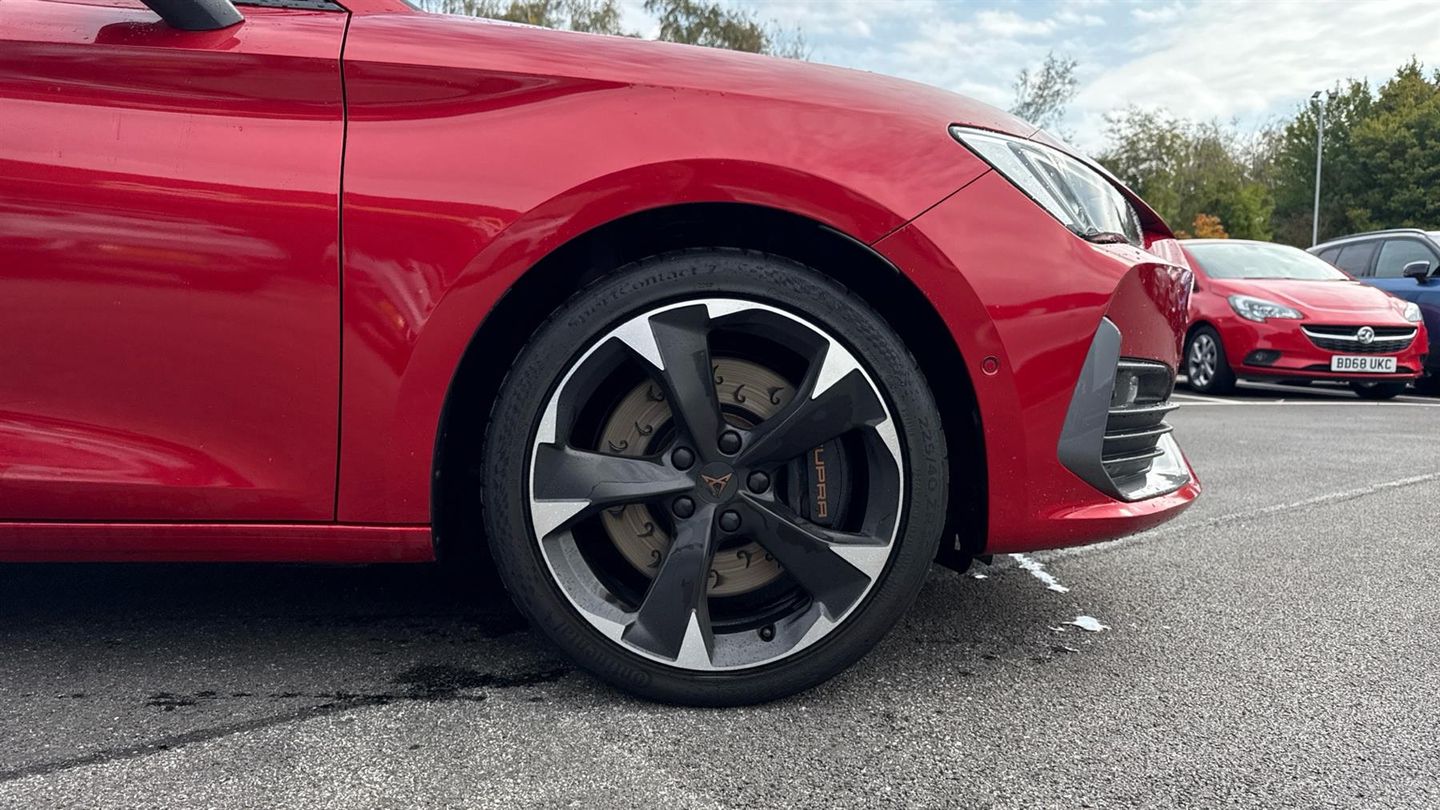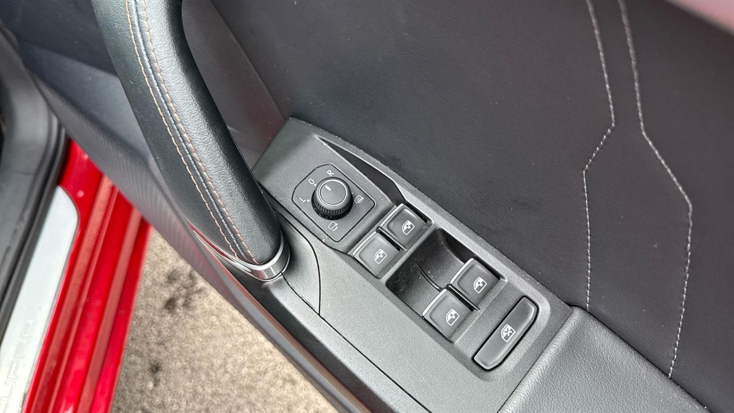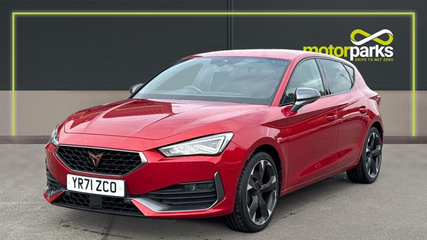 Features include Park Assist wa Rear Camera, Climate Control, Lane Assist, Cruise Control+Speed Limiter, Power Folding Mirrors and Cupra Driving Modes. Unleash hot hatch performance with the 2021 Cupra Leon VZ1 2.0 TSI 245, finished in striking Desire Red Metallic. Combining sharp styling with thrilling power and everyday usability, this sporty hatchback is built to excite. Under the bonnet, the 2.0 TSI turbocharged petrol engine delivers 245PS, paired with a smooth and responsive 7-speed DSG automatic gearbox. With lightning-fast shifts and punchy acceleration, the Leon VZ1 is engineered for driving enthusiasts. The VZ1 trim showcases Cupra's athletic design, featuring 18-inch machined alloy wheels, full LED headlights with dynamic indicators, sporty bumpers, rear diffuser, and quad exhaust outlets. The bold Desire Red Metallic finish makes its aggressive stance even more eye-catching. Inside, the cabin is driver-focused yet refined. Expect sports bucket seats, ambient interior lighting, a flat-bottomed Cupra steering wheel with drive mode buttons, and a 10.25-inch digital cockpit display. The 10-inch touchscreen infotainment system provides sat nav, Apple CarPlay, Android Auto, Bluetooth, and voice control, keeping you seamlessly connected. Practicality hasn't been forgotten - there's ample cabin space, a versatile boot, and five-door convenience, making it as usable as it is thrilling..