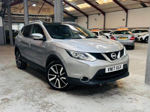 This 2017 Nissan Qashqai dCi Tekna offers excellent peace of mind with its MOT valid until July 2026 and a clear vehicle history check and 2 keys. Having had its last service on 6th October 2025 at 71,000 miles, it has service book with earlier records, this Euro 6 compliant 1.6L diesel model is ready for its next owner. The Tekna trim level ensures a premium experience, enhanced by features such as a panoramic sunroof with a one touch shade, Bluetooth connectivity for seamless calls and audio, and Bi-LED headlights and 360 Camera system for superior visibility. You'll also appreciate the convenience of the Intelligent Key system for keyless entry and the Executive Pack, which includes heated leather seats for added comfort.This Nissan Qashqai stands out with its impressive fuel economy, achieving a remarkable 61 miles per gallon, which indicates it is more economical than many similar vehicles. Furthermore, its low CO2 emissions and low insurance group highlight its cost effectiveness, making it a sensible choice for everyday driving.-Finance-SatNav-Heated Leather-VISIT OUR INDOOR SHOWROOM 7 days a week, FINANCE Available, CREDIT/DEBIT CARDS ACCEPTED, PX Welcome