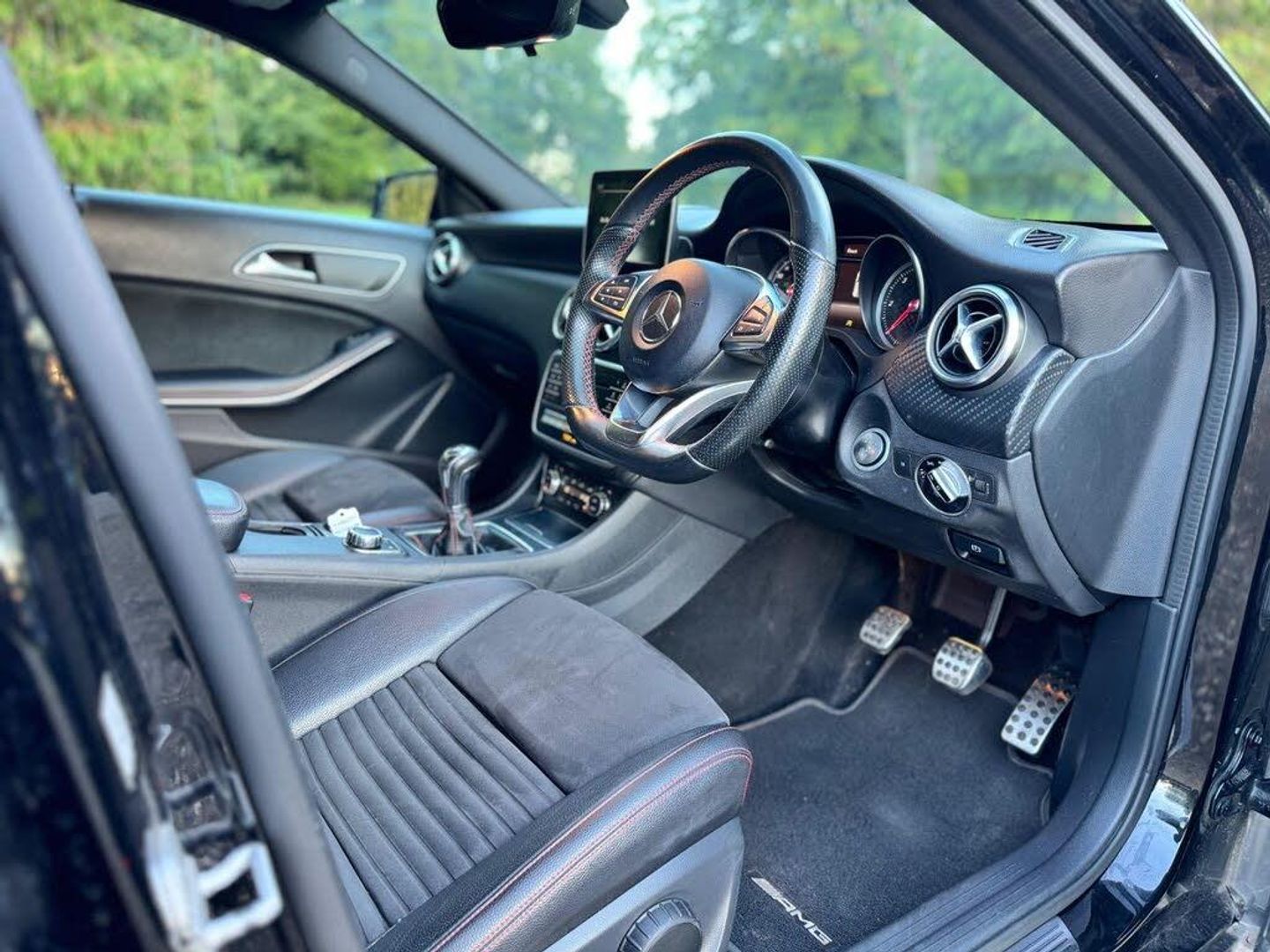 12V Socket, 12V Socket in Luggage Compartment, 18in Alloy Wheels - AMG 5-Twin-Spoke Design - Painted in Titanium Grey with a High Sheen Finish, 8-inch Frameless Tablet-style Colour Display, ABS - Anti-Lock Braking System with BAS - Brake Assist, AMG Bodystyling - Front and Rear Apron and Side Skirts, ATTENTION Assist, Active Bonnet - Pedestrian Safety Measure which Detects an Impact and Raises Bonnet by 65mm, Active Braking Assist, Adaptive Brake Assist with Hold Function and Hill Start Assist, Adaptive Brake Lights, Air Vents with Surround and Cruciform Nozzle in Silver Chrome, Airbags - Dual Stage - Driver and Front Passenger, Airbags - Head and Sidebags - Driver and Front Passenger, Airbags - Windowbags for Driver and Front Passenger, Alarm System with Immobiliser and Interior Protection - Thatcham Category 1, Audio 20 Radio-CD-MP3 Compatibility, Automatic Child Seat Recognition Sensor, Beltline Strips - Chrome, Bodystyling - Side Skirts - Body-Coloured, Brake Calipers - Mercedes-Benz Lettering on Front, Brake-Pad Wear Warning Indicator, Brushed Stainless Steel Sports Pedals with Rubber Studs, Bumpers - Body Coloured, Centre Armrest - Front with Stowage, Childproof Locks - Manually Operated for Rear Doors and Electrically Operated for Rear Power Windows, Controller on Centre Console with Chrome Surround, Crash-Responsive Emergency Lighting, Cruise Control with Limiter, Cup Holder - Double - Front, Direction Indicators with Lane-Changer Function, Door Handles - Body Coloured, Door Mirrors - Electrically Adjustable and Heated with Integrated LED Indicators, Door Mirrors - Mirror Housing in Body-colour, Drivers Kneebag, Dynamic Select with a Choice of Driving Modes - ECO-Comfort-Sport and Individual, ESP - Electronic Stability Programme with ASR - Acceleration Skid Control, ESP Cornering Dynamics Assist, Electric Parking Brake, Electric Windows - 4, Electronic Key - Chrome Surround, Exhaust System - Twin Trapezoidal Tailpipes in Polished Stainless Steel, First Aid Kit and Warning Triangle, Floor Mats - Red Stitched Edging - AMG Lettering, Fluid Level Warning Indicator for Fuel - Oil - Coolant and Washer Fluid, Footwell Lighting - Front and Rear, Glass - Rear Windscreen - Heated with Timer Control, Glove Compartment - Illuminated, Halogen Headlights with Integrated Daytime Running Lights, Headlamp Assist - Automatic Headlamp Activation, High Level Third Brake Light - LED, ISOFIX and Top-Tether Child Seat Fixing Points in Rear - Two Outer Seats, Illuminated Front Door Sills with Mercedes-Benz Lettering, Illumination - Storage Compartment, Instrument Cluster with Four Analogue Dials and Needles Suspended in Six-O-Clock Position, Light Failure Indicator, Lighting in Stowage Compartment and Vanity Mirrors, Load Securing Rings in Luggage Compartment, Luggage Compartment Cover, Luggage Net under Parcel Shelf and on the Left and Right in Luggage Compartment, Luggage Nets on the Rear of Front Seats, Media Interface, Mercedes Connect Me, Net in Passenger Footwell, Outside Temperature Gauge, Part LED Tail Lights, Pollen Filter, Power Steering - Sports Direct Steer System with Speed Sensitive Servo Assistance, Radiator Grille - Diamond with Pins in Chrome and Silver Louvre with Chrome Insert, Radio Aerial Roof Spoiler, Rain-Sensing Windscreen Wipers with Two Sensitivity Settings, Reading Lights and Console Light in Front and Rear, Rear Fog Light, Rear Seats - Split Folding 1-3 2-3, Rear View Mirror - Additional Lighting, Rear Windscreen Wiper, Remote Central Locking and Crash Sensor with Emergency Opening Function, Reversing Camera with Parking Guidelines - 180 Degree View, Roof Lining - Black, Seat Belts - Rear Three-Point - 3, Seat Belts Reminder - Front and Rear, Seat Comfort Package, Seat Occupancy Sensor - Front Passenger Seat, Seats - Front Cushion Length Adjustment, Seats - Front Manually Adjustable, Service Indicator ASSYST, Single-colour Ambient Lighting in Headrests and Interior Door Handles, Smartphone Integration, Spectacles C