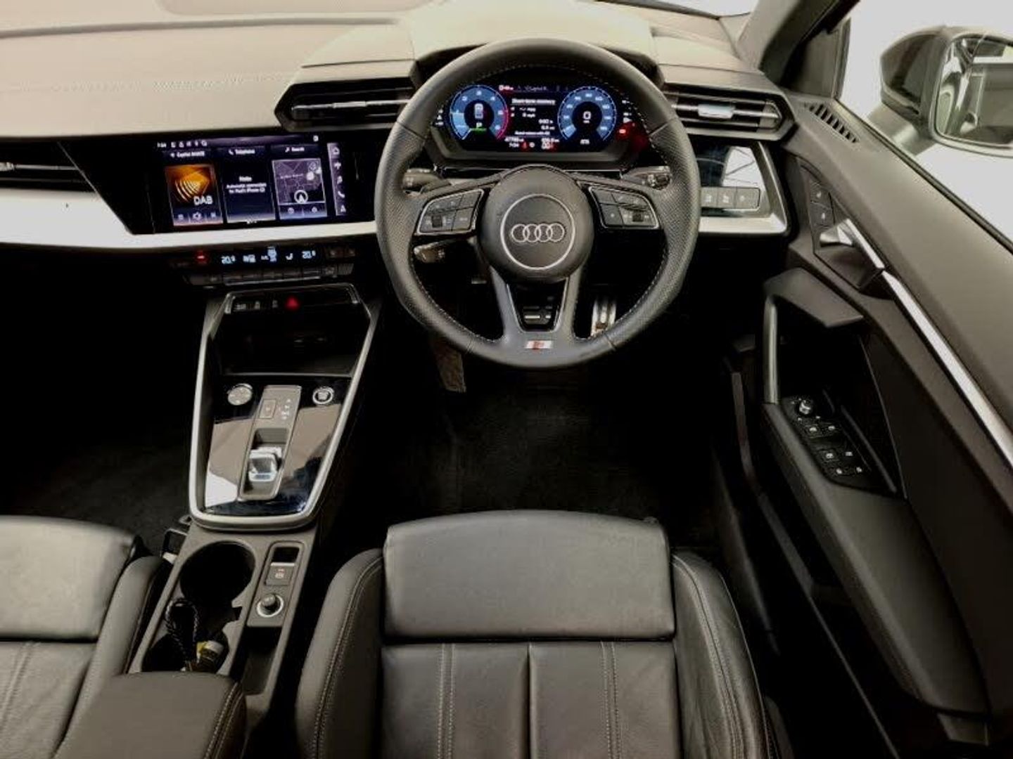 Audi drive select (Auto, Comfort, Dynamic, Efficiency and Individual), Audi Virtual Cockpit - 10.25" digital and colour instrument cluster, Collision avoidance assistant, Lane departure warning system, MMI Navigation Plus with high resolution 10.1" colour touch screen display, Electrically adjustable/heated/folding/auto dimming door mirrors with integrated LED indications + kerb view function for passenger side, LED daytime running lights, Light and rain sensors, Twin leather upholstery with front sports seats S embossed logo, Aluminium interior elements pack - A3, S line styling pack - A3 Saloon