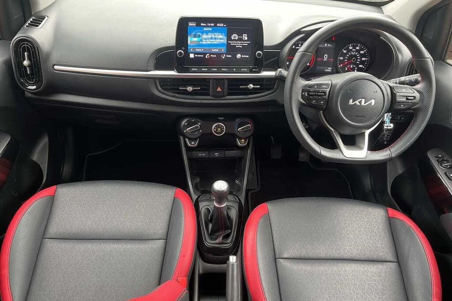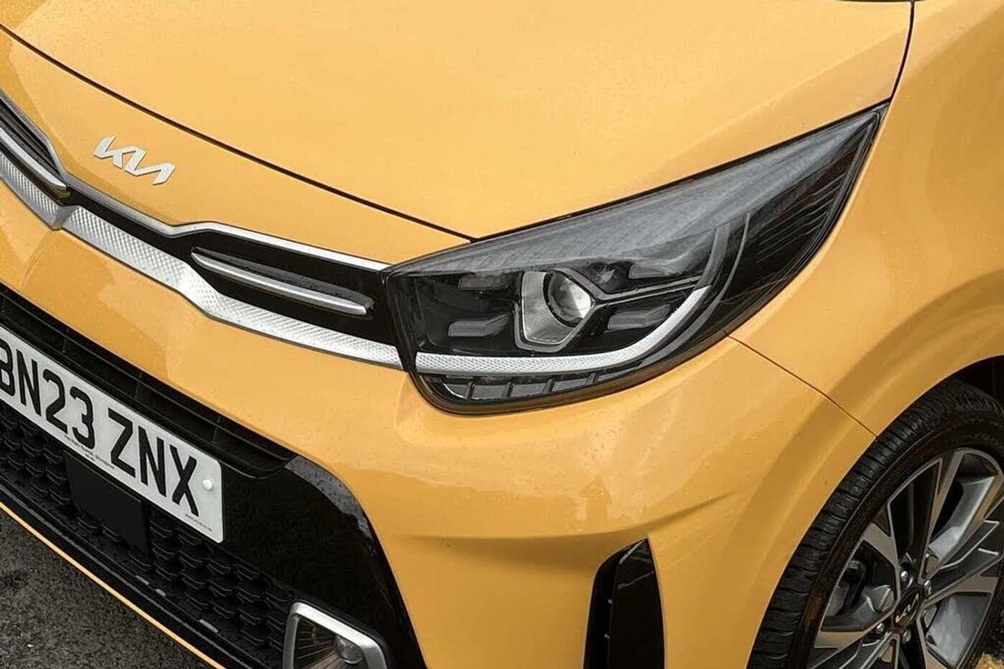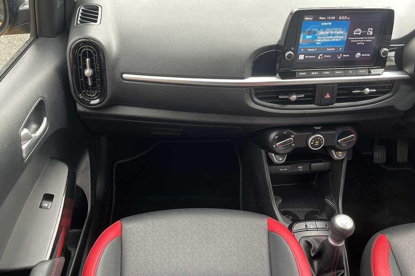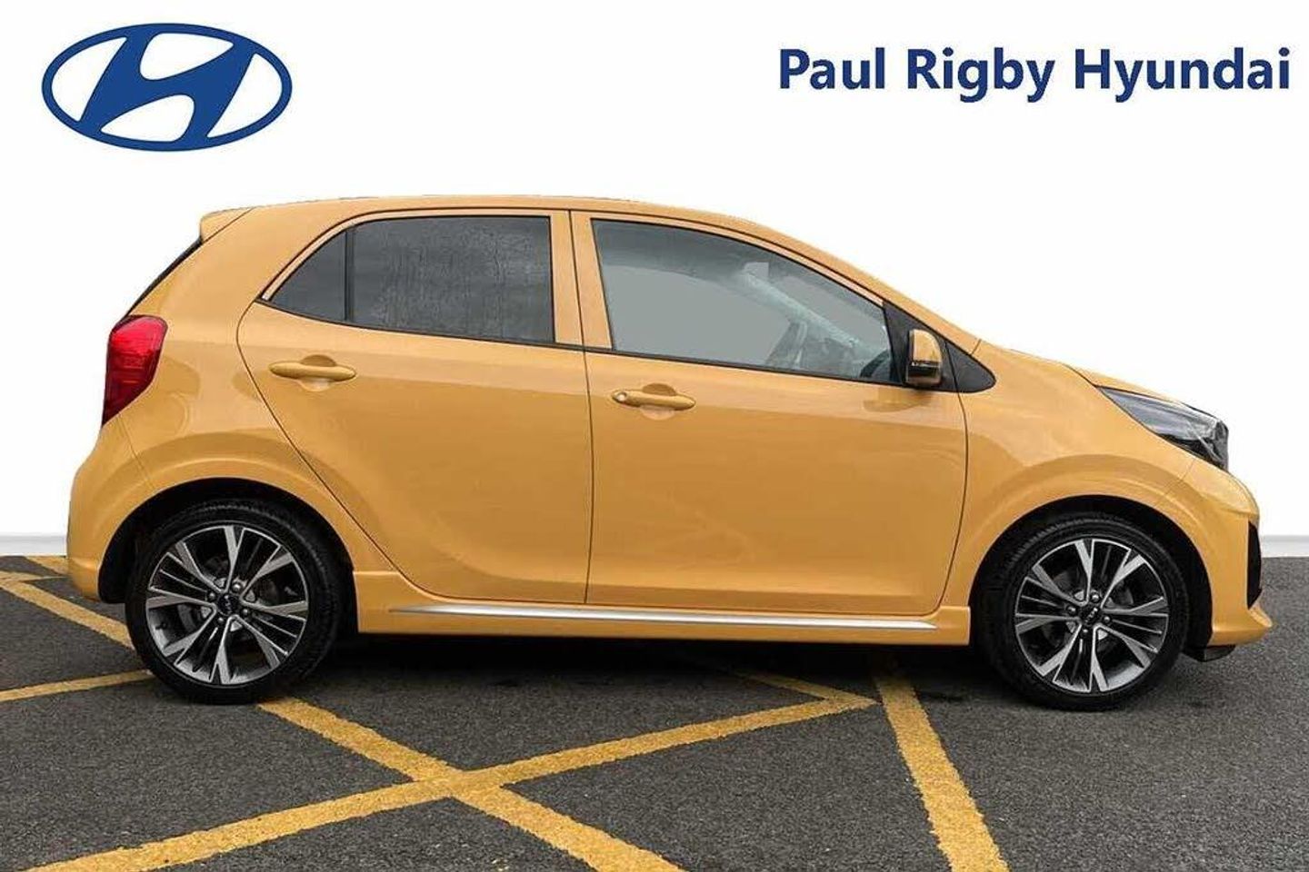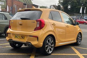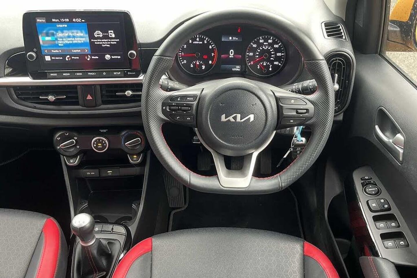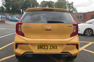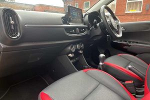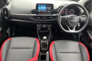 Solid - Honey bee, Faux leather - Black and Red, Front and rear electric windows with drivers's auto up/down function, Heated rear window, Privacy glass - Rear windows and tailgate, Rain sensor, Rear wash/wipe, Speed variable front wipers, Tinted glass, Black beltline mouldings, Black grille with silver surround, Body colour B pillars, Body colour bumpers, Body colour side sill mouldings, Rear side wing doors, Sports front and rear bumpers with gloss black skid plates twin exhaust, Visible VIN plate, Automatic headlight control system, Bi-function projection headlights, Front fog lights, Headlamp levelling, High mount brake light, LED daytime running lights, LED rear fog lights, LED rear lights, Welcome and follow-me home light functionality, ABS/EBD, ESC + BAS + VSM + HAC, Hill hold control, Torque vectoring brake based and straight line stability (SLS), Traction control, Emergency stop signalling system, Motor driven power steering, Reversing camera system with dynamic guidelines (Integrated into centre fascia screen), Body colour mirrors and door handles, Day/night rear view mirror, Electric adjustable/heated/folding door mirrors with LED indicators lights, 2 x 3-point rear seatbelts, Automatic unlocking of doors in case of impact, Dual front airbags, Front passenger airbag cut-off switch, Front seatbelt height adjusters, Front seatbelt pretensioners + load limiters, Knee airbags, Rear child proof door locks, Seatbelt warning, Side impact protection, Twin curtain airbags, Twin front side airbags, Tyre pressure monitoring system, Apple car play/Android Auto with voice control, 6 speaker audio system, Bluetooth with music streaming, Steering wheel mounted controls, USB ports for connection of a media device, 8'' touchscreen display with RDS and DAB, Emergency call service, External temperature gauge, Tachometer, Trip computer, Manual air conditioning, 1 x rear coat hook, 12V power point front, 3 x passenger assist grips, Black and red accents front door armrest, Centre Console with Storage Box and Sliding Armrest, Cupholders in centre console, D-cut steering wheel with red stitching, Faux leather upholstery, Glovebox, High gloss lower centre fascia trim, door armrest and air vents, Leather trimmed steering wheel and gearshift, Luggage area parcel shelf, Passenger front seatback pockets, Satin chrome interior door handles, Tilt adjustable steering wheel, Front cabin lights, Luggage area light, Driver and front passenger sunvisor with vanity mirror, Advanced Driver Assistance Pack - Picanto, 2 seat bench in 2nd row, 60/40 split/folding 2nd row of seats, All round height adjustable headrests, Driver seat height adjust, ISOFIX Child seat top tethers and anchor fixings, Single front passenger seat, Slide/reclining front seats, Anti theft alarm, Engine immobiliser, Folding key, Locking wheel nuts, Remote central door locking, 16'' alloy GT-Line wheels, Tyre mobility kit
