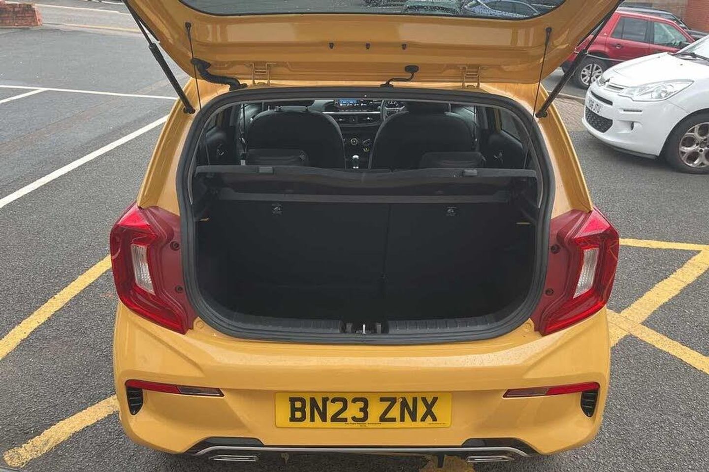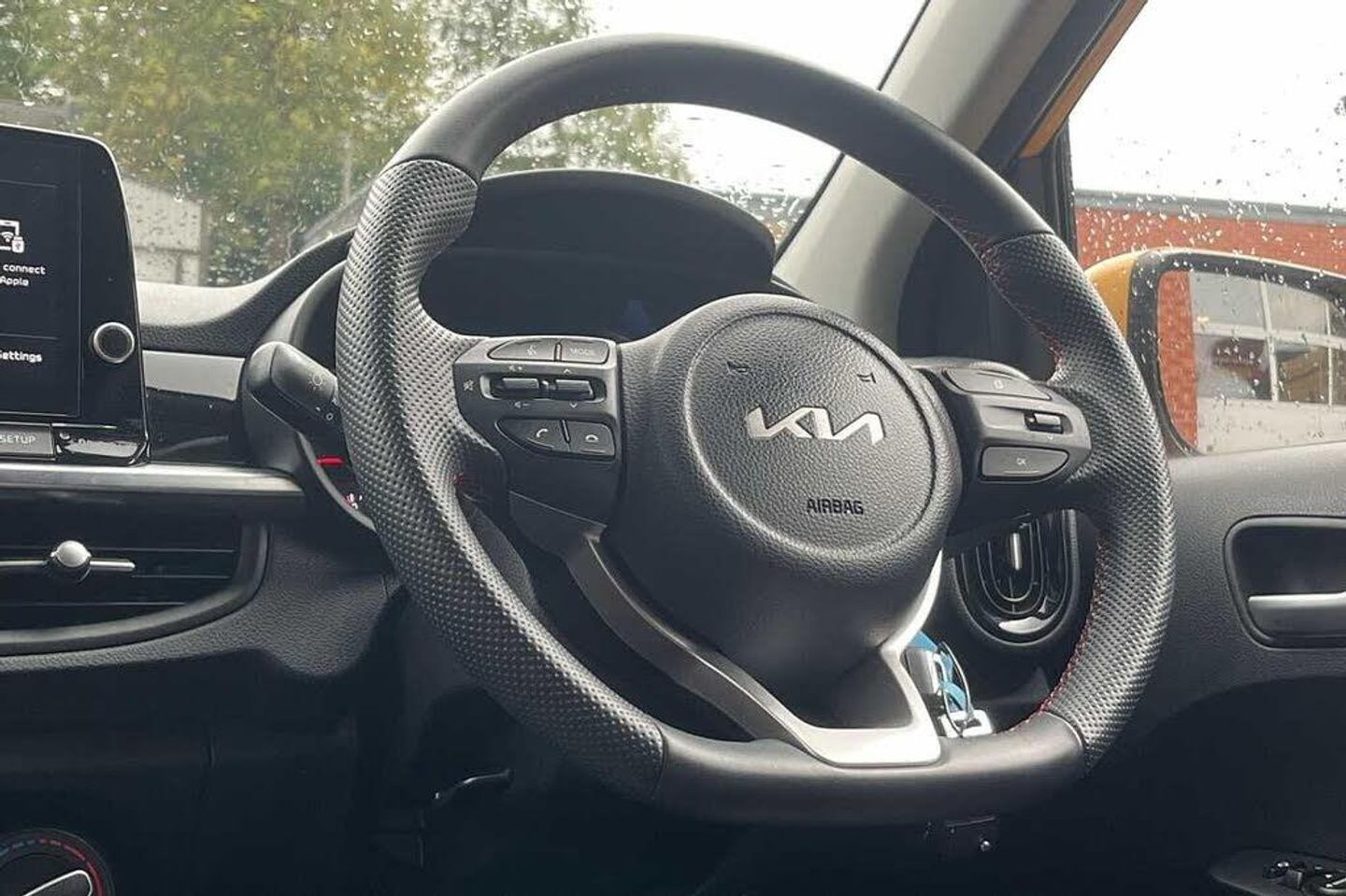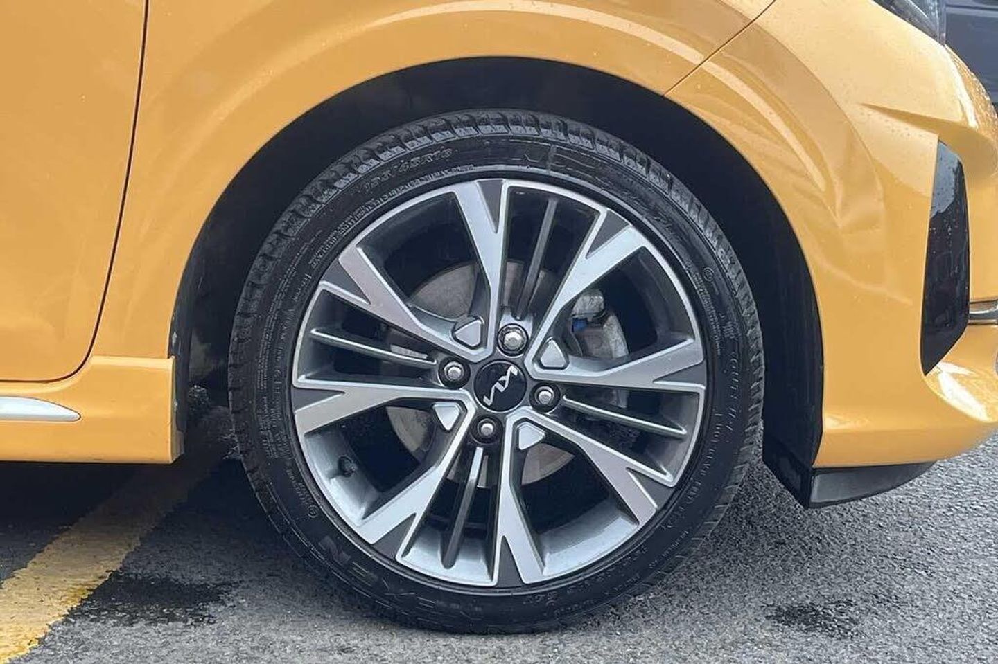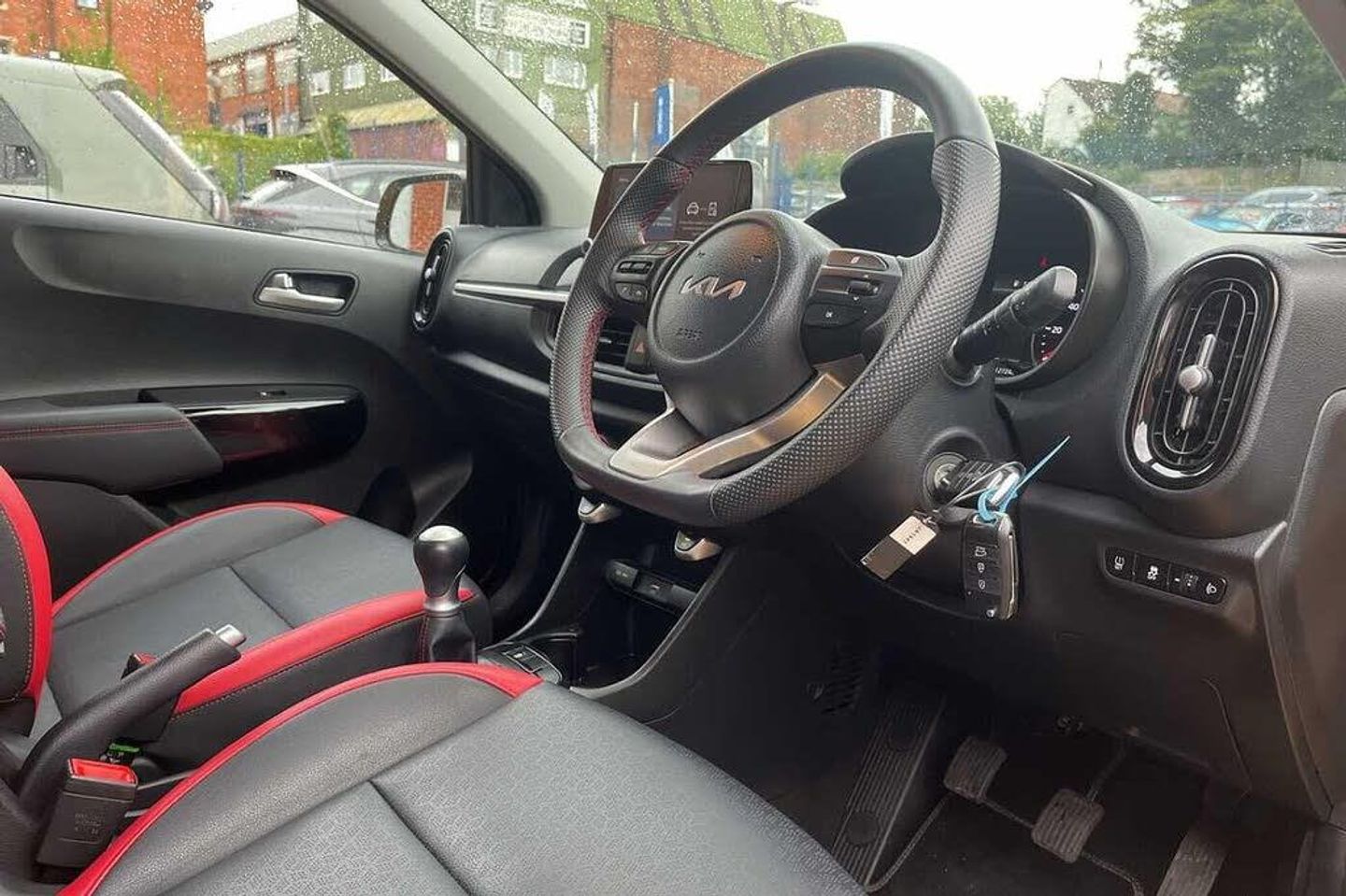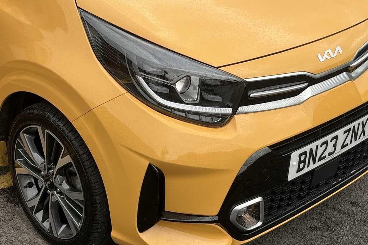 Solid - Honey bee, Faux leather - Black and Red, Front and rear electric windows with drivers's auto up/down function, Heated rear window, Privacy glass - Rear windows and tailgate, Rain sensor, Rear wash/wipe, Speed variable front wipers, Tinted glass, Black beltline mouldings, Black grille with silver surround, Body colour B pillars, Body colour bumpers, Body colour side sill mouldings, Rear side wing doors, Sports front and rear bumpers with gloss black skid plates twin exhaust, Visible VIN plate, Automatic headlight control system, Bi-function projection headlights, Front fog lights, Headlamp levelling, High mount brake light, LED daytime running lights, LED rear fog lights, LED rear lights, Welcome and follow-me home light functionality, ABS/EBD, ESC + BAS + VSM + HAC, Hill hold control, Torque vectoring brake based and straight line stability (SLS), Traction control, Emergency stop signalling system, Motor driven power steering, Reversing camera system with dynamic guidelines (Integrated into centre fascia screen), Body colour mirrors and door handles, Day/night rear view mirror, Electric adjustable/heated/folding door mirrors with LED indicators lights, 2 x 3-point rear seatbelts, Automatic unlocking of doors in case of impact, Dual front airbags, Front passenger airbag cut-off switch, Front seatbelt height adjusters, Front seatbelt pretensioners + load limiters, Knee airbags, Rear child proof door locks, Seatbelt warning, Side impact protection, Twin curtain airbags, Twin front side airbags, Tyre pressure monitoring system, Apple car play/Android Auto with voice control, 6 speaker audio system, Bluetooth with music streaming, Steering wheel mounted controls, USB ports for connection of a media device, 8'' touchscreen display with RDS and DAB, Emergency call service, External temperature gauge, Tachometer, Trip computer, Manual air conditioning, 1 x rear coat hook, 12V power point front, 3 x passenger assist grips, Black and red accents front door armrest, Centre Console with Storage Box and Sliding Armrest, Cupholders in centre console, D-cut steering wheel with red stitching, Faux leather upholstery, Glovebox, High gloss lower centre fascia trim, door armrest and air vents, Leather trimmed steering wheel and gearshift, Luggage area parcel shelf, Passenger front seatback pockets, Satin chrome interior door handles, Tilt adjustable steering wheel, Front cabin lights, Luggage area light, Driver and front passenger sunvisor with vanity mirror, Advanced Driver Assistance Pack - Picanto, 2 seat bench in 2nd row, 60/40 split/folding 2nd row of seats, All round height adjustable headrests, Driver seat height adjust, ISOFIX Child seat top tethers and anchor fixings, Single front passenger seat, Slide/reclining front seats, Anti theft alarm, Engine immobiliser, Folding key, Locking wheel nuts, Remote central door locking, 16'' alloy GT-Line wheels, Tyre mobility kit