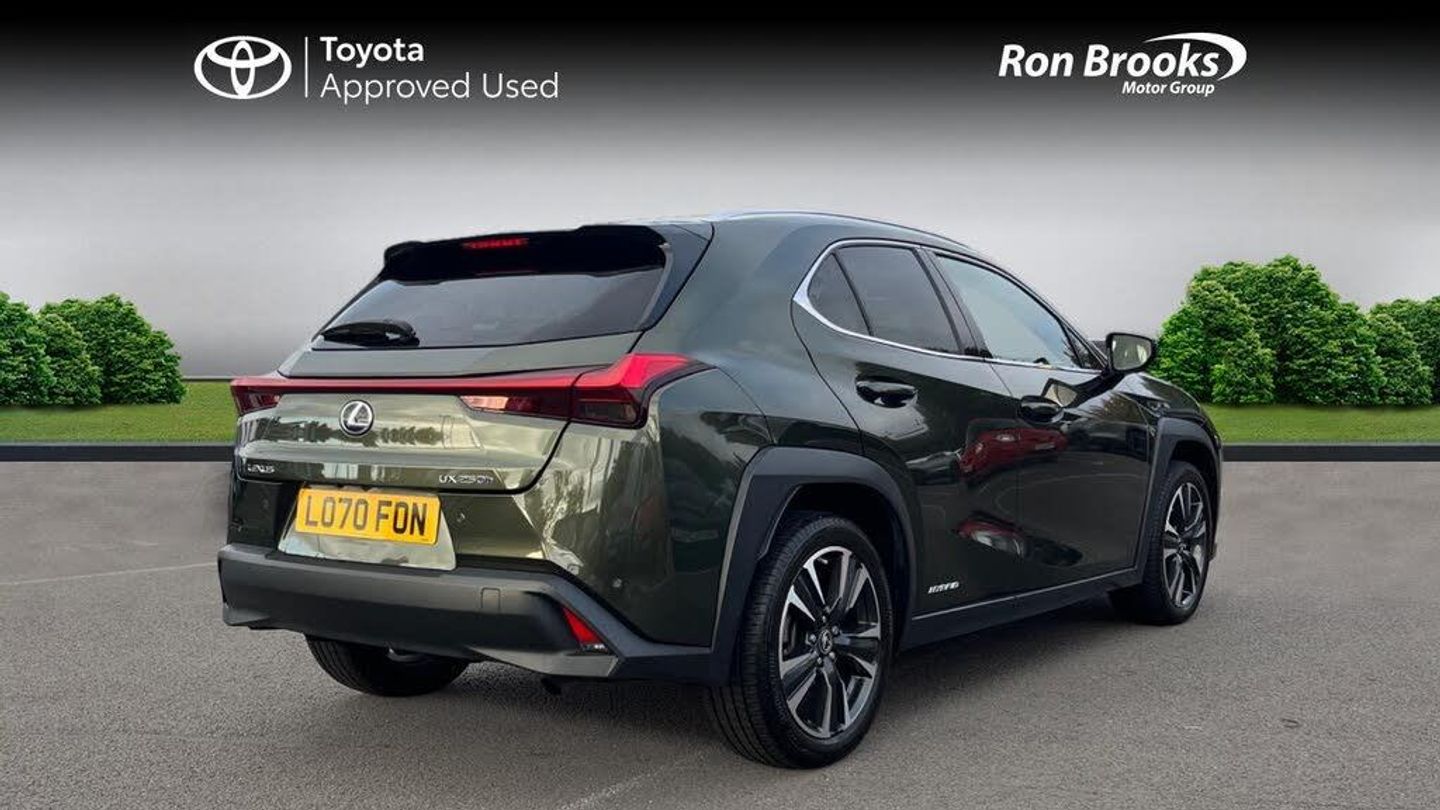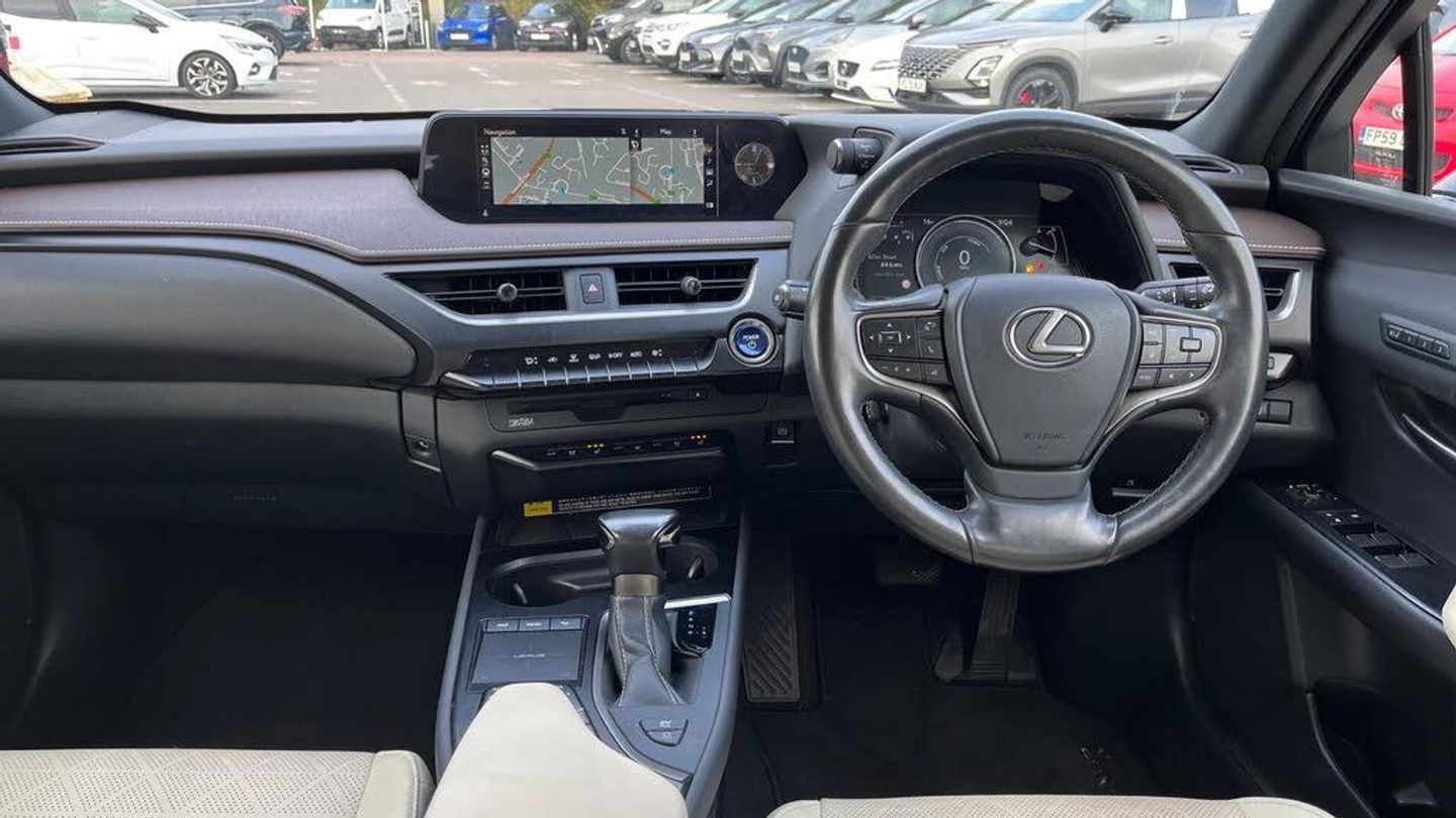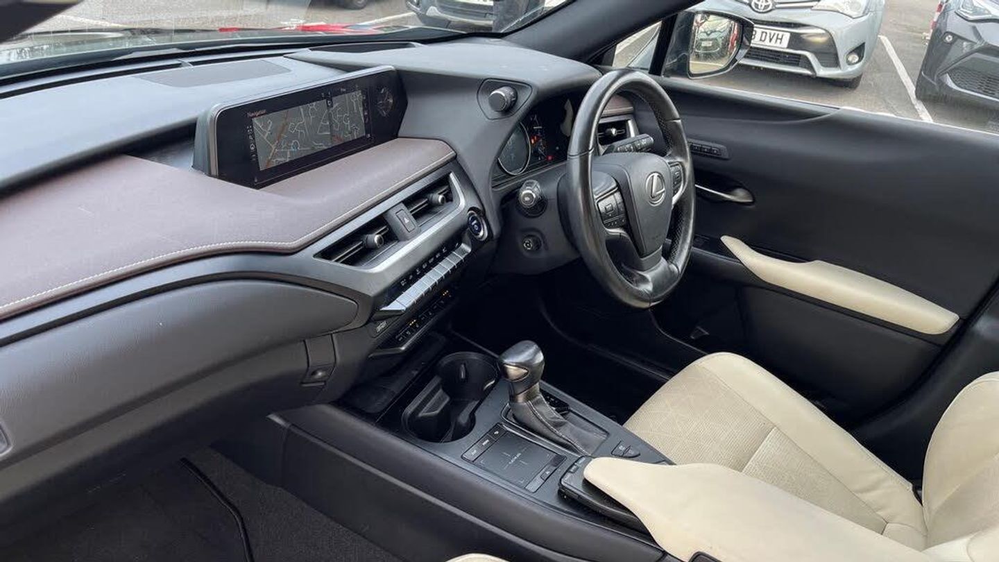 This 2020 Lexus UX 250h Takumi boasts a full service history, offering you complete peace of mind with a 12 month warranty. This stylish hybrid SUV features a 2.0L petrol engine and is Euro 6 compliant, contributing to its low CO2 emissions. Inside, you'll find a host of premium features designed for your convenience and comfort, including a wireless smartphone charger, a 360 panoramic view camera for effortless parking assistance, and smart keyless entry. The Takumi trim also includes a helpful head up display and heated front seats, ensuring an enjoyable driving experience in all conditions.The Lexus UX 250h Takumi stands out with its impressive performance, accelerating from 0 to 62 miles per hour in just 8.5 seconds, demonstrating its dynamic capability. Its hybrid technology not only enhances efficiency but also signifies a commitment to lower environmental impact, setting it apart from many other vehicles in its class. This combination of advanced technology, refined comfort, and efficient performance makes the 2020 Lexus UX 250h Takumi a compelling choice for those seeking a sophisticated and practical SUV.-Heads Up Display-FSH1-Ron Brooks Toyota Used Cars, 145 Point Check, Prepared to Toyota Standards & 1 Year Toyota Warranty