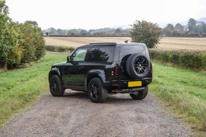The Land Rover Defender 90 D250 MHEV X-Dynamic S offered here at Autostorico is a 2022 “71 Plate” finished in Santorini Black with Ebony /Cream leather interior trim. . Having covered a mere 17,820 miles this immaculate two owner example boasts a comprehensive specification including 18” Black 5 spoke alloy wheels, Black exterior pack, Privacy glass, Front and rear park assist with cameras, Heated seats, Car play, Navigation, Xeno headlights and floor mats.