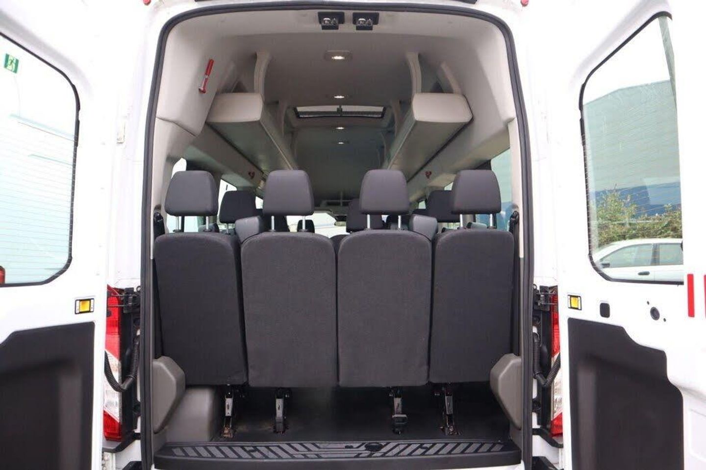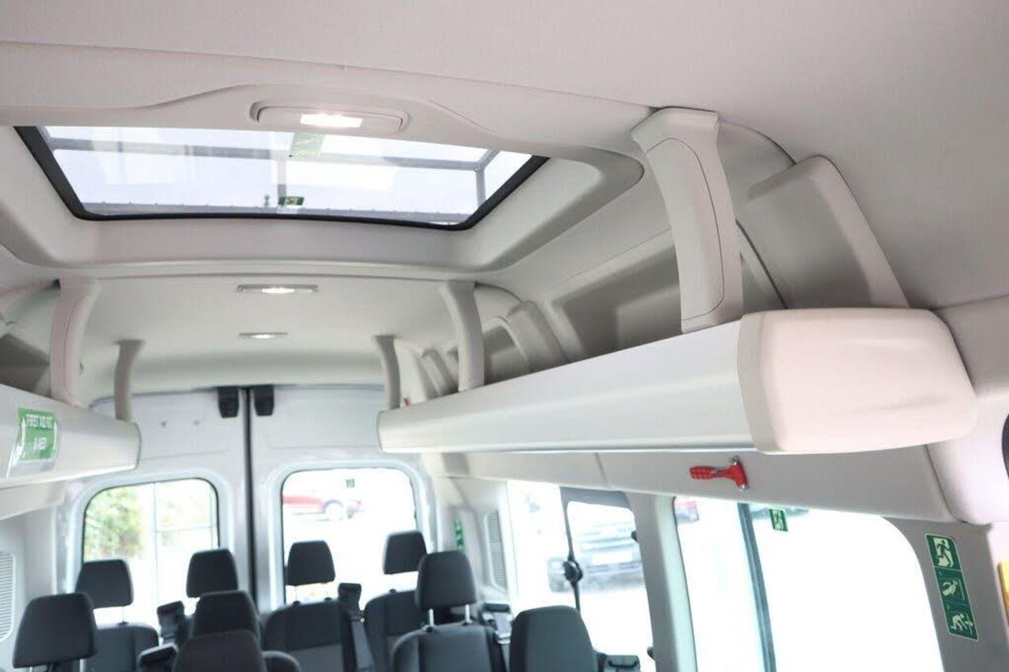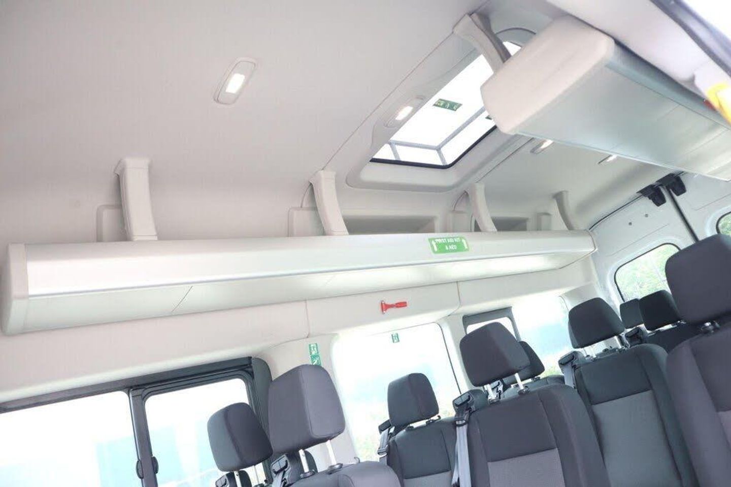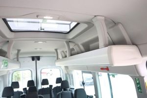 100kph - 62mph Fixed Engine Governer, 16in Steel Wheels, 270 Degree Rear Cargo Door with Magnetic Retention, 2nd Remote Key, ABS - Anti-lock Braking System, Airbag - Front Passengers with Deactivation Switch, Airbags - Driver, Auto Lights and Wipers, Battery - Cold Start -20 Degree C, Bluetooth, Bodyside Mouldings - Wide - Self Colour, Bottle Holder - Twin 2 litre Bottle Capacity - Facia-Mounted, Courtesy Lights - Front and Rear Lights and Map-Reading Lights with Theatre-Style Dimming, Curve Control, Daytime Running Lamps, Doors - Glazed Passengers Sliding Side Load Door Fitted with Emergency Release Hammer, EBA - Emergency Brake Assist, EDCC - Electronic Dynamic Cornering Control, ESP - Electronic Stability Programme, Electrically-Operated Front Windows with One-shot Up-down on Drivers Side, Emergency Brake Warning, Floor Covering - Complete - Easy-clean and Rubber Insulated, Ford Easy-Fuel Capless Refuelling System, Ford SYNC 8in Touch Screen with Emergency Assistance, Front - Independent MacPherson Struts - Coil Springs - Stabiliser Bar and Gas-Pressurised Shock Absorbers - Rear - Leaf Springs and Gas-Pressurised Shock Absorbers, Front Fog Lights, Front Grille - Chrome, Gearshift Indicator Light, Glovebox - with Lockable Lid and A4 File Storage Capability, Headliner - Complete - Covers Full Length of Vehicle, Heated Front Windscreen, Heater - PTC, Heavy Duty Front Axle, Hill Start Assist, ICE Pack 21, Immobiliser - Safeguard Passive Anti-Theft System - PATS - Insurance-Approved Category 2 Immobiliser, LAC - Load Adaptive Control, Lane Keeping Alert, Locks - Auto Relocking - Doors Relock after 45 Seconds if no Door is Opened, Locks - Key Operated Bonnet Release, Locks - Power Central Locking, Manual Air Conditioning, Mudflaps - Rear, Overhead Stowage Racks, Parking Aid - Front and Rear with Front Fog Lamps, Passenger Compartment Lights, Power Point Socket - 2x 12V, Power Step - Passengers Side Load Door, Pre-Collision Assist with Pedestrian Detection with Lane Keeping Aid, Privacy Glass - Dark Tinted, RSC - Roll Stability Control, Rear Air Conditioning, Rear Bumper - Self Colour with Integrated Step, Rear Seats - M1 Standard - Adjustable Headrest Design, Remote Central Locking, Seatbelts - 3 Point Diagonal Inertia Reel - All Seats, Seats - Rear Recline with Armrests, Selectable Drive Mode, Spare Wheel - Steel, Standard Duty Alternator - 150amp, Steering Column - Rake and Reach Adjustment, Steering Wheel - 4 Spoke Leather Trimmed, Storage - Drivers Side - Storage Compartment on Facia Top with Lift Up Lid, Storage - Front Door Map Pockets, Trip Computer, Vehicle Identification Number - VIN - Visible, Vehicle Maintenance Monitor, Water in Fuel Filter with Sensor, Windows - 2nd Row - Drivers Side Slide Opening, Windows - Fixed 3rd Row, Windows - Flip Opening 4th Row, Windows - Rear-heated, Wipers - Rear with Auto Reverse Wipe and Electrically-operated Wash, Adaptive Cruise Control, Assist Handle - Located on B-pillar, Assist Handle - Located on Passenger A-Pillar, Battery - Twin Improved Flooded - IF - 80Ah - 700 CCA, Courtesy Light - Footwell Illumination - Side Load Door Only, Door Handles - Self Coloured, Door Mirrors - Blind Spot Eliminator and Integrated Side Indicator, Doors - Glazed Rear Doors - Hinged for 180 Degree Opening - Positive Stop at 90 Degree, Drivers 8-Way Seat Adjustable with Armrest, Drivers Sunglasses Holder, Emergency Release Hammer, Fire Extinguisher 2L, Ford Eco Mode - Driver Information System, Front Bumper - Self Colour, Headlights - Projector Style Halogen Reflector Lights with Chrome Background and Static Cornering Lights, Headlights Courtesy Delay - 30 Seconds Duration, Interior Lighting - Battery Saver - 30min, Overhead Console - Front Includes 2 DIN, Power Assisted Steering, Power Door Mirrors - Heated, Rear Coat Hooks, Rear Overhead Shelving with Individual Air Conditioning Vents and LED Lights, Rear Seats - Fifteen Seat Position, Roof Escape Hatch, Seats - Front Passenger 8-Way Adjustment, Standard Key, Wipers - Front - Variable Interval-Intermittent with Electrically-operated Wash