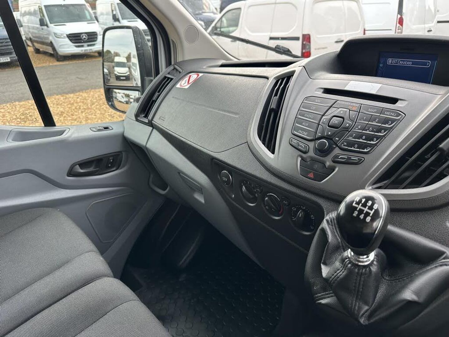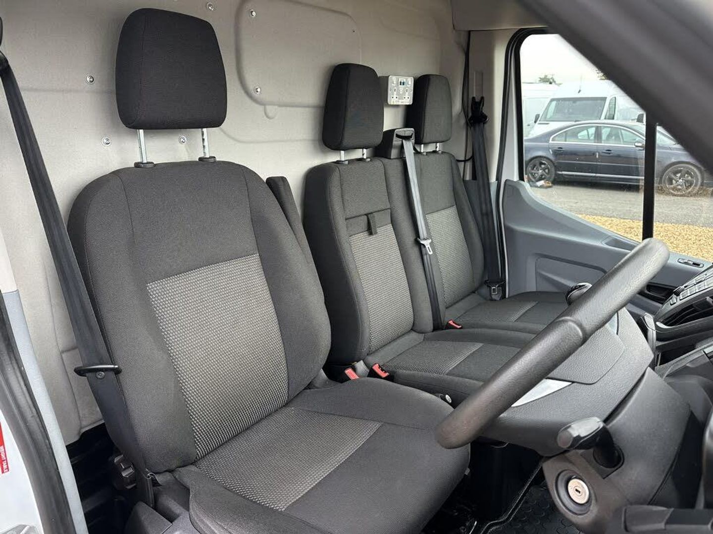 16in Steel Wheels,ABS - Anti-lock Braking System,AUX Connection,Airbags - Driver,Armrest - Drivers,Auto Locking On Drive Away - Door Auto Lock - 5mph,Auxiliary Connection Point - 3X60 Amp - Located Under Driver Seat Pedestal,B Pillar Assist Handle,Bluetooth Hands-free Phone,Bottle Holder - 2x Facia-Mounted,Bulkhead - Full Steel,Bumper - Front Body Colour - Partial,Cab Floor Covering - Rubber,Courtesy Light - Overhead with Theatre-Style Dimming,Curve Control,Daytime Running Lamps,Dead-Lock,Door - Auto Relocking Enabled,Door Handles - Self Coloured,Door Mirrors - Blind Spot Eliminator,Door Mirrors - Manual Adjust,Doors - Passengers Sliding Side Load Door and Step,Driver Seat Belt Minder,EBA - Emergency Brake Assist,EDCC - Electronic Dynamic Cornering Control,ESP - Electronic Stability Programme,Electric Windows - Front,Emergency Brake Warning,Fold Out Front Passenger Seat Table,Ford Easy-Fuel Capless Refuelling System,Ford Eco Mode - Driver Information System,Front Grille - Sterling Grey,Gearshift Indicator Light,Glovebox with A4 File Storage,Headlights - Courtesy Delay,Headlining - Cab - Moulded,Hill Start Assist,Immobiliser - Safeguard Passive Anti-Theft System - PATS - Insurance-Approved Category 2 Immobiliser,LAC - Load Adaptive Control,Load Compartment - Tie Down Loops x8,Loadspace Compartment Light,Locks - Audio Mis-Lock Feedback,Locks - Configurable Unlocking,Locks - Key Operated Bonnet Release,Mud Flaps - Rear,Overhead Storage Shelf,Power Steering,ROM - Roll Over Mitigation,Radio,Rear Doors - 180° Opening - Unglazed - Positive Stop at 90°,Rear Step - Integrated in Bumper,Recirculation Heater - Front,Remote Central Locking,Seats - Drivers 8-Way Adjustment,Seats - Dual Passenger,Speakers - x4 Front,Standard Duty Alternator - 150amp,Steering Column - Rake and Reach Adjustment,Steering Wheel - 4 Spoke PU,Steering Wheel - Multifunction,Storage - Drivers Side - Storage Compartment on Facia Top with Lift Up Lid,Storage - Front Door Map Pockets,Stowage Box - Front Passenger Underseat Area,TVC - Torque Vectoring Control,Traction Control - TC,Trailer Sway Control,Trip Computer,Two 12V Power Socket,Tyre Inflator Kit,USB Connection - iPod Connectivity,Wheel Covers - Half Caps,Wide Bodyside Mouldings,Windows - Fixed 2nd Row - Side,Wipers - Front Variable Intermittent