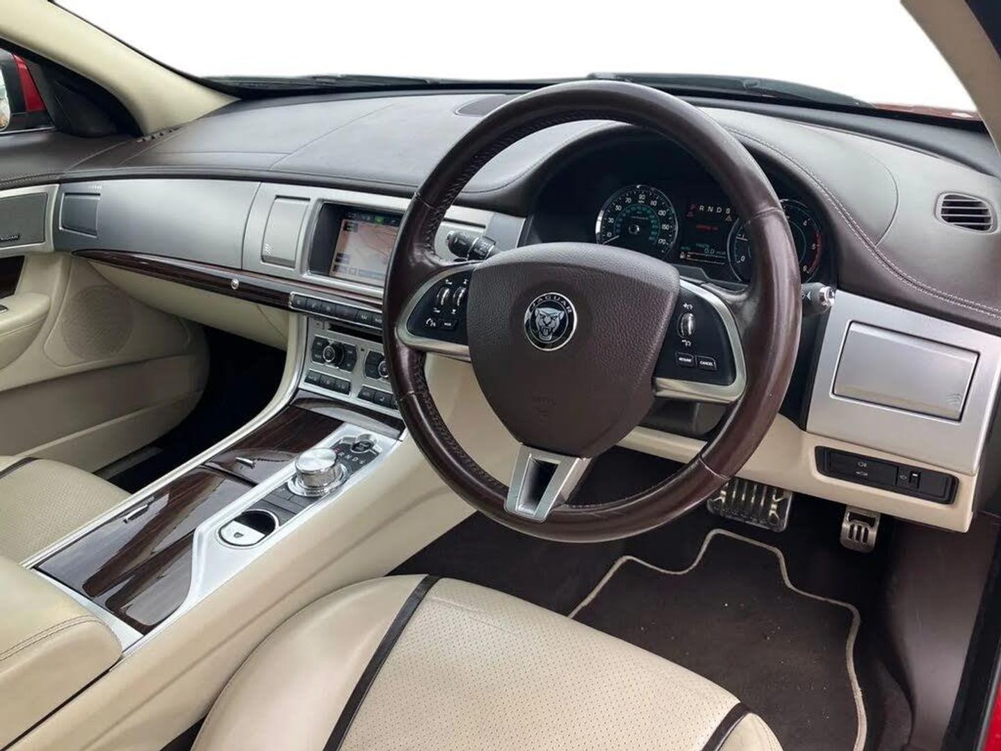 7" colour screen,Blind spot monitor,Bluetooth telephone connectivity,Driver information centre,Front parking aid,Navigation system with HDD mapping, RDS/TMC + DVD player,Rear parking sensor,Reversing camera,Service interval indicator,Servotronic PAS,Trip computer with dual function,Auxiliary input socket,Bluetooth audio streaming,DAB digital radio module,Media interface,Steering wheel mounted audio/cruise controls,Approach lamps,Auto dimming rear view mirror,Automatic headlights,Bi-Xenon headlights with LED day running lights,Black window surrounds,Body colour bumpers,Chrome grille,Electric adjustable heated door mirrors,Electric folding and auto dimming door mirrors,Electric front/rear windows with one touch/auto up/down,Headlight washers,Heated front windscreen and timer,Heated rear window with timer,Laminated windscreen,LED tail lights,Rain sensor windscreen wipers,12V socket in rear of vehicle,16 way driver/12 way passenger electrically adjustable seats with driver memory,2 X front 12v power sockets,3 rear seat head restraints,3 spoke leather steering wheel,60/40 asymmetric split folding rear seats,Auxiliary heater,Coat hooks,Driver/passenger lumbar adjustment,Drivers footrest,Dual zone climate control,Folding rear centre armest,Footwell lights,Front armrest,Front centre console storage box,Front seat and rear pockets,Heated and cooled front seats,Heated front seats,Interior mood lighting,Isofix child seat preparation,Jaguar sense,JaguarDrive selector,Reach/rake electric adjustable steering column + entry/exit tilt away,Rear centre head restraint,Softgrain leather instrument panel and door top rolls,Softgrain leather upholstery,Steering wheel gearshift paddles,Sunvisors with illuminated vanity mirrors,Twin front cupholders,Twin rear cupholders,ABS+EBA,Anti-whiplash front headrests,Brake pad warning light,Cornering brake control,Driver/Front Passenger airbags,DSC - Dynamic Stability Control,Electronic parking brake,Front/rear seatbelt pre-tensioners,Side airbags,Side curtain airbags,Three 3 point rear seatbelts,Tyre pressure monitoring system,Alarm/immobiliser,Deadlocks,Drive away door locking,Keyless entry system,Keyless Start,Remote central locking,Knurled Aluminium IP Finisher