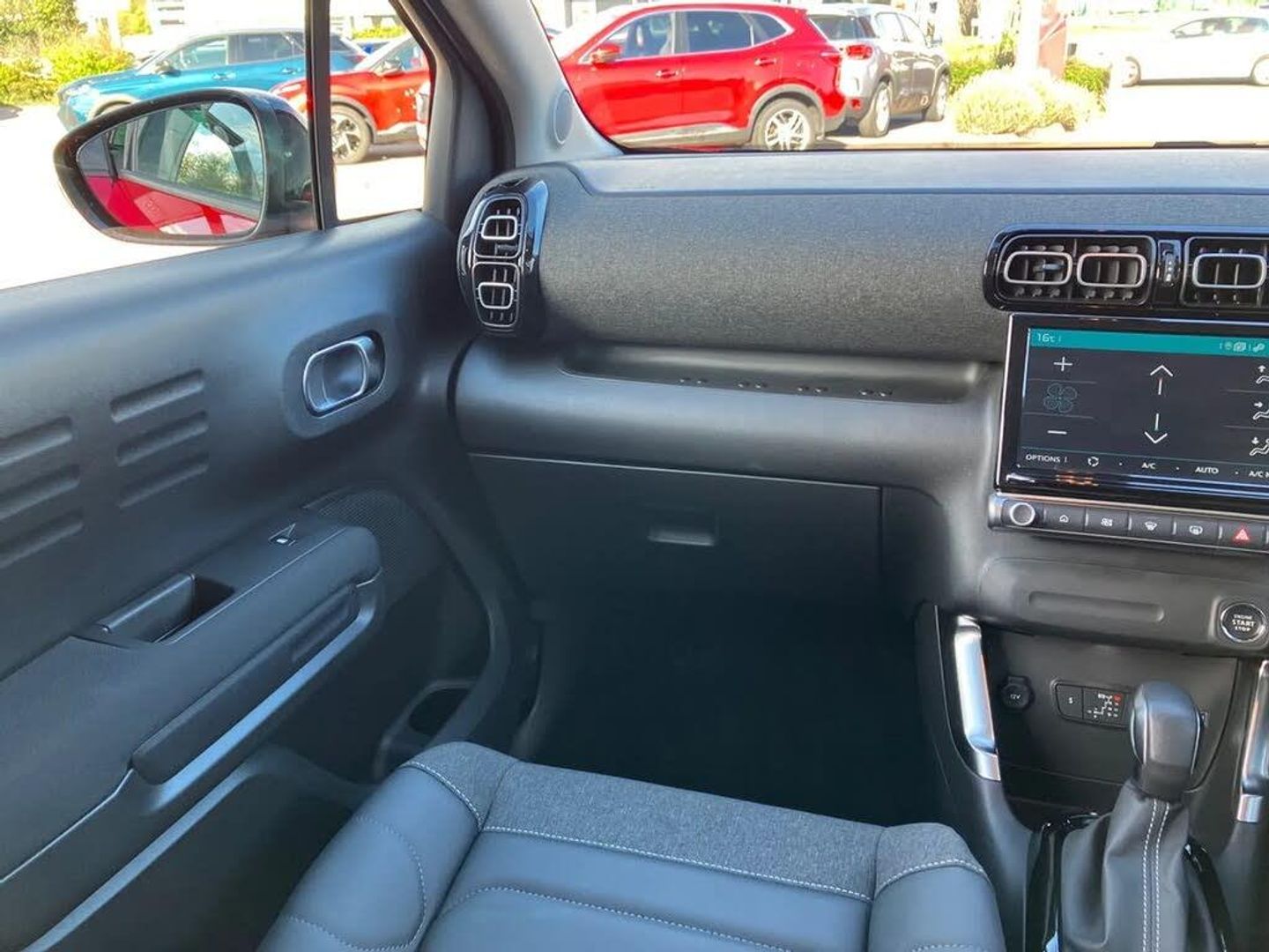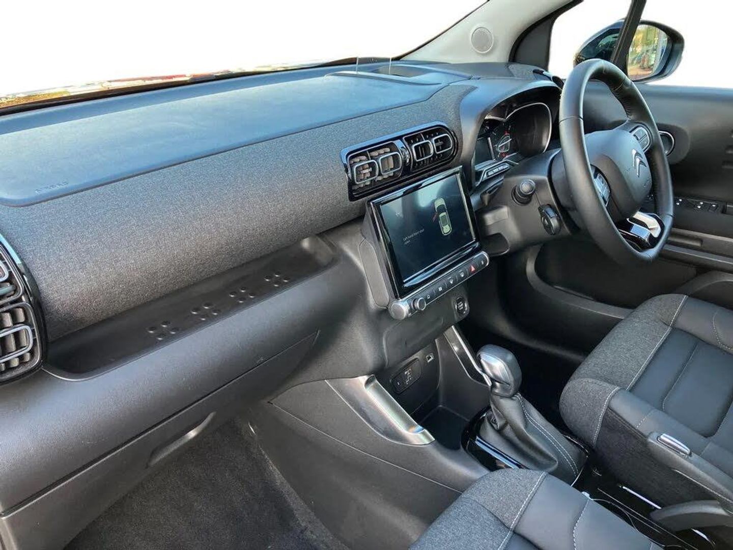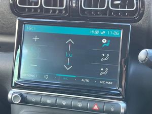 3.5" head up display,9" Touchscreen display,Citroen connect box emergency and assistance system,Citroen Connect Nav with 3D navigation,Coffee Break Alert,Cruise control with speed limiter,Driver instrument cluster including trip computer and rev counter with white text LCD display and white needles and chrome decor,eCall emergency call system,Engine start button,Lane departure warning system,Mirror screen with Apple CarPlay and Android auto,Outside temperature sensor,Rear parking sensors,Tailgate,Top rear vision reversing camera,Traffic signs and speed limit recognition and recommendation,Variable assistance power steering,Voice recognition for radio, navigation and telephone features,Bluetooth hands free and media streaming with USB socket,Citroen connected DAB radio with 6 speakers,Steering wheel mounted controls for stereo and telephone,3D effect LED rear lights,Automatic Eco LED headlights,Automatic lights and windscreen wipers,Black roof bars,Body colour painted door handles,Chrome chevrons front grille,Electric front windows + one touch + anti-pinch,Electric rear windows with one touch/anti-pinch,Electrically adjustable door mirrors,Electrically folding door mirrors,Electrochrome rear view mirror,Fog lights integrated into front bumper,Front and rear body coloured bumpers,Heated door mirrors,Integrated roof spoiler,LED daytime running lights,LED third brake light,Rear side wing doors,Rear wiper,Roof aerial,Tinted rear windows and rear quarterpanel glass,Variable front intermittent wipers,12v socket in front,12V socket in rear of vehicle,60/40 split folding rear seats with sliding rear bench, centre armrest and ski flap,Automatic air conditioning,Boot light,Brasilia leather effect and flecked cloth upholstery with metropolitan graphite ambience, advanced comfort seats and wrapped dashboard,Central adjustable armrest on drivers seat,Centre console with closed storage and chrome insert,Driver and front passenger cup holders,Driver and passenger sunvisor with courtesy mirror,Flex load/Pull out boot floor,Front and rear courtesy reading lights,Front and rear door storage,Front head restraints,Front passengers seat flat folding,Glovebox with closable lid,Height adjustable driver's seat,Height and reach adjustable steering wheel,Leather steering wheel with satin chrome inserts and radio controls,Manual handbrake with chrome insert,Passenger compartment headlight adjustment,Rear isofix mounting points (outside seats) with top tether,Row 2 - Three seats with individually adjustable head rests,Satin chrome interior door handles,Single front passenger seat,Gloss black colour pack - C3 Aircross Max,3 point, height adjustable, pre tensioned front seatbelts,ABS with Electronic brakeforce distribution and Emergency braking assistance,Active safety brake including Forward collision warning,Automatic illumination of hazard warning lights,Curtain airbags,Driver airbag,Drivers/passengers and rear seats unfastened seat belt warning,ESC (Electronic Stability Control),Front lateral airbags,Front passenger airbag,Front passenger airbag deactivation switch,Hill start assist function,Mono-tone horn,Rear door child safety locks,Three 3 point rear seatbelts,Tyre pressure monitor,Automatic door and boot locking when moving off with automatic unlocking in case of impact,Automatic locking of the vehicle (after 30 seconds if door or boot unopened),Immobiliser,Keyless entry and keyless start,Perimetric and volumetric anti theft alarm,Remote central locking + deadlocks,Vehicle locater function (headlights illuminate when button on key pressed),Gloss black centre console,Satin chrome air vent decors