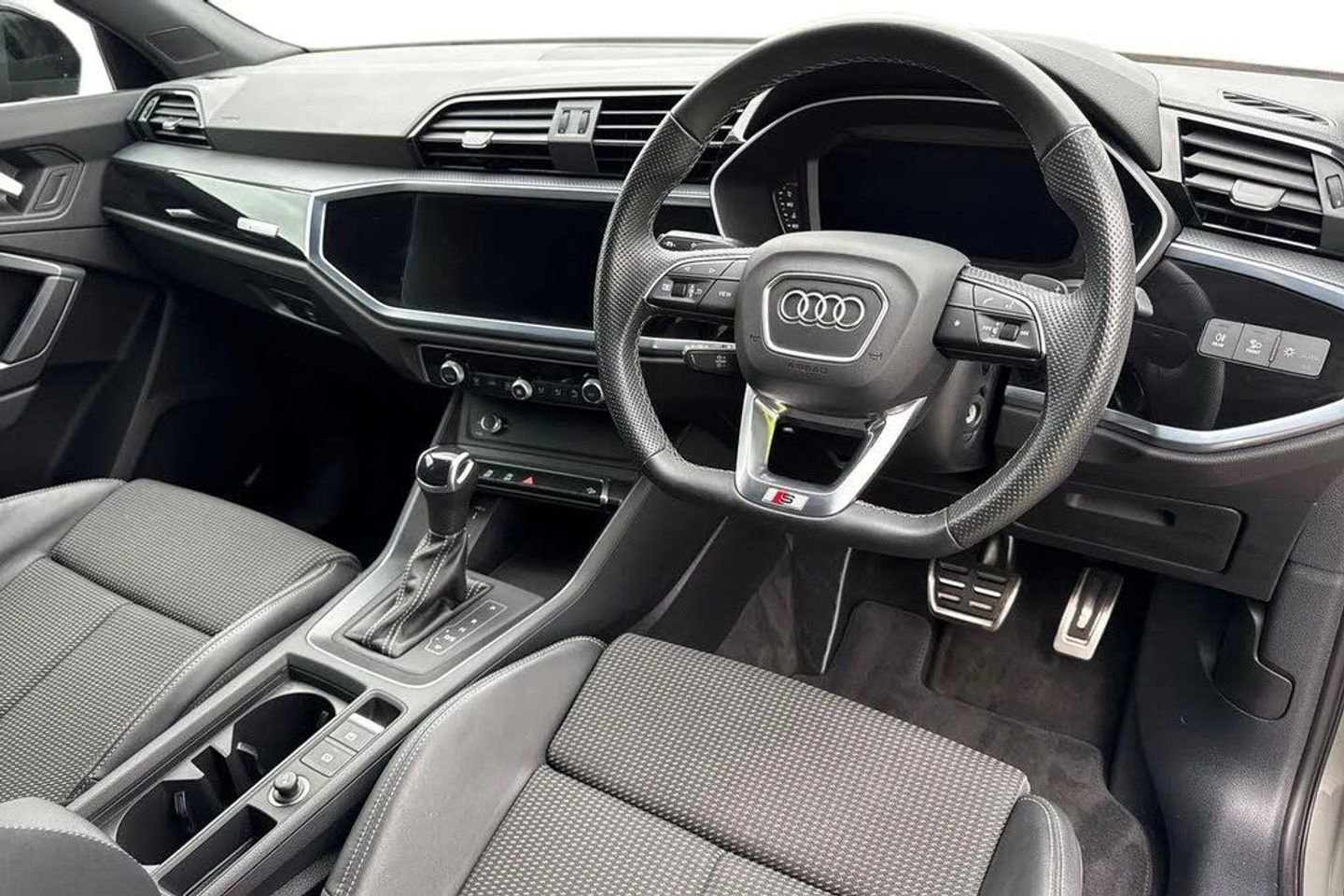 Alloys, Ambient Lighting, Advanced Safety, Apple CarPlay/Android Auto, Bluetooth, Cruise Control, DAB, AC/Climate, Isofix, Light and Rain Sensor, Sat Nav, Touchscreen, Parking Sensor;This Approved Used Audi Q3 Black Edition Sportback in sleek Chronos Grey blends bold coupe-inspired styling with advanced technology and everyday practicality. Powered by a 1.5-litre TFSI Petrol engine with Cylinder on Demand and paired with the smooth S Tronic automatic gearbox, it delivers efficiency and performance in equal measure. The exterior stands out with the Black Edition styling pack, featuring black door mirrors, high-gloss black detailing and S line bumpers with Manhattan Grey inserts. Striking 19-inch 5-twin-arm Audi Sport alloy wheels in matt grey with diamond cut finish, LED headlights with daytime running lights, dynamic range control and LED rear lights with dynamic indicators further enhance its sporty road presence. Privacy glass and power-operated tailgate add practicality and style. Inside, the cabin is finished to a high standard with front sport seats embossed with the S logo, piano black inlays and stainless steel pedals. The flat-bottomed leather steering wheel with gear-shift paddles, leatherette door armrests and ambient lighting pack highlight the premium feel, while the adjustable rear bench with centre armrest and cupholders ensures flexibility for passengers. Technology includes the intuitive MMI Navigation Plus with 10.1-inch touchscreen, Audi Virtual Cockpit digital display and Audi Smartphone Interface with wireless Apple CarPlay. Entertainment is delivered through DAB radio and Bluetooth connectivity, while dual-zone climate control ensu...