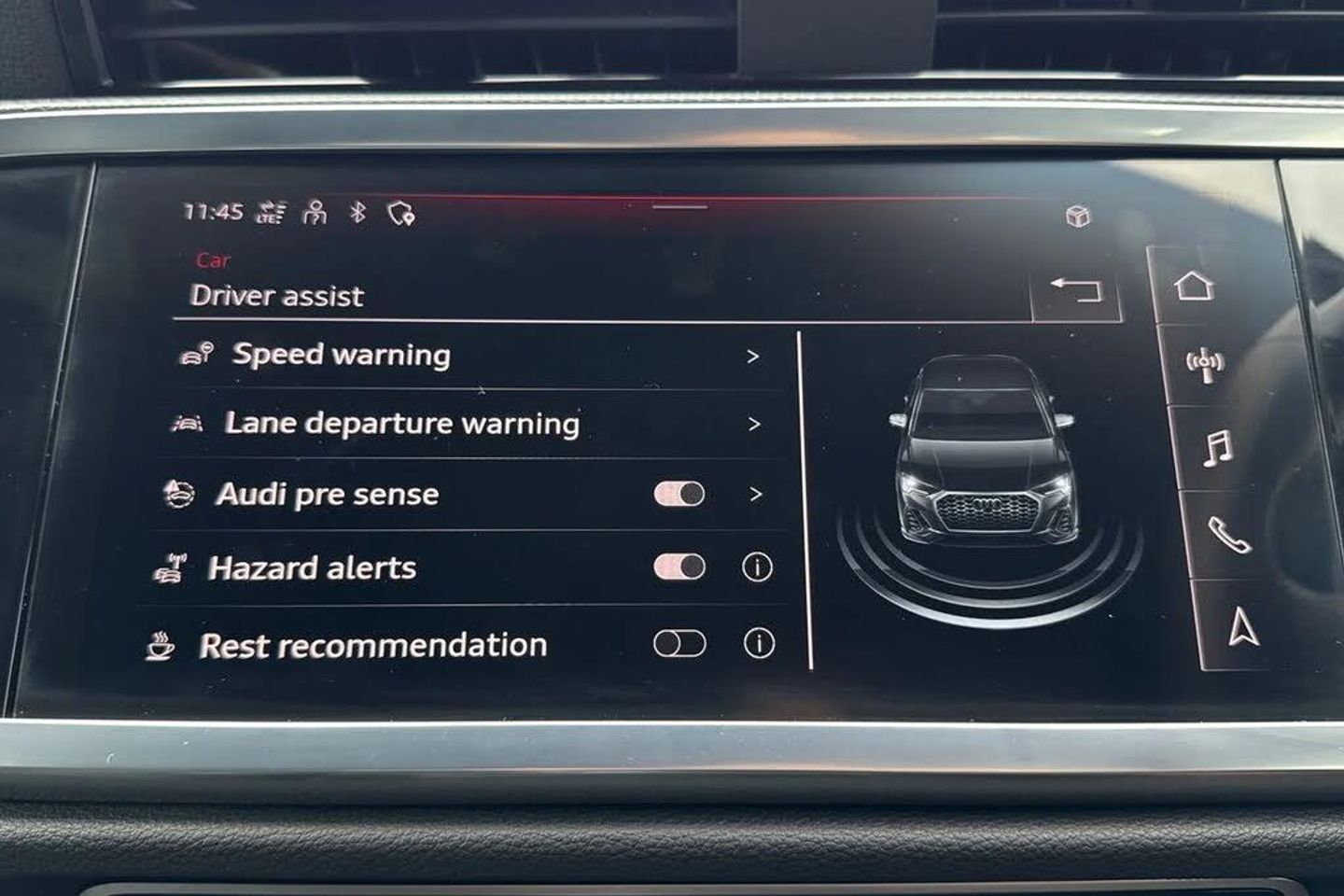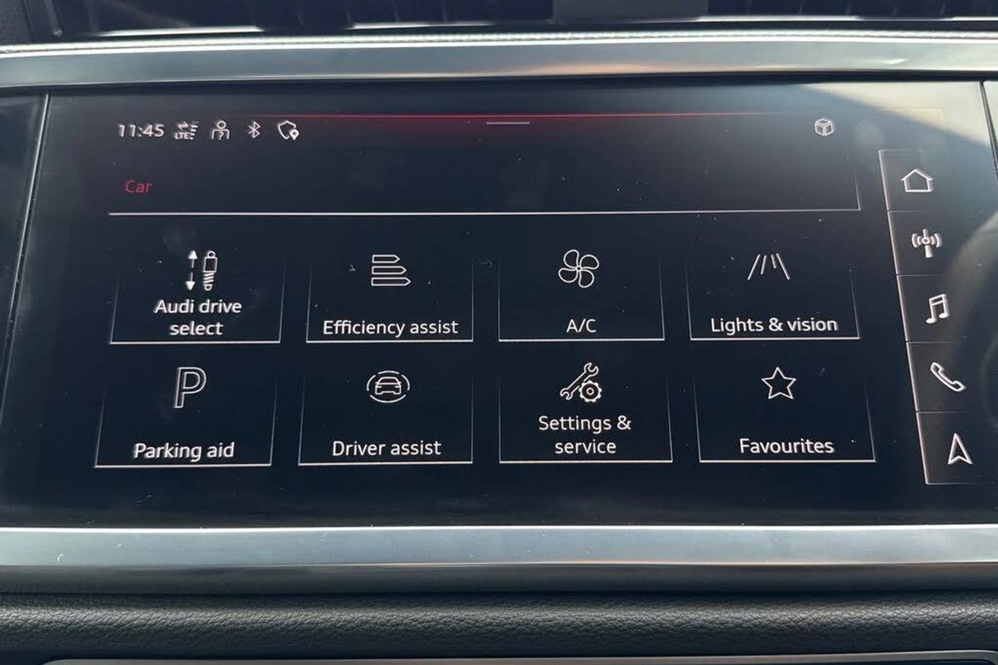 LED headlights and LED rear lights,Manual child lock and standard interior lighting,Interior lighting,Black Edition Pack,Flat-bottomed 3-spoke leather multi-function Sport steering wheel with gear-shift paddles,Model and technology designation at rear,Without roof insert (standard roof),4H3,Black Styling Pack,19" x 8.5J '5-twin-arm' design Audi Sport alloy wheels in matt grey look - diamond cut finish - with 255/45 R 19 tyres,Inlays in Piano black,Black door mirrors,LED headlights,Dynamic headlight range control (self-adjusting while driving),8SQ,Equipment options subset for Great Britain,19in Alloy Wheels - 5-Twin-Arm Design in Matt Grey Look - Diamond Cut Finish - Audi Sport,19in Alloy Wheels - 5-Twin-Arm Design in Matt Titanium Look - Diamond Cut Finish - Audi Sport,2 USB-C Ports with Charge and Data Functions,20in Alloy Wheels - 8.5J 5-V-Spoke - Star Design in Matt Grey - Gloss Turned Finish - Audi Sport,6 Passive Loud Speakers,6-Airbag System,Adjustable Rear Seat Bench-Backrest with Centre Armrest and Cupholder,Aluminium Look Interior Elements,Ambient Lighting Pack,Anti Theft Locking Wheel Bolts,Anti-Theft Alarm,Audi Beam,Audi Connect Infotainment Services Plus including Amazon Alexa Integration (3 Year Subscription From New),Audi Connect Safety and Service - e-call,Audi Drive Select,Audi Pre-Sense Basic,Audi Pre-Sense Front with Pedestrian and Cyclist Recognition,Audi Smartphone Interface includes Wireless Apple CarPlay,Audi Virtual Cockpit - 10.25in Display,Auto Dimming and Frameless Rear View Mirror,B and C-Pillar Trim in High-Gloss Black,Black Styling Package,Bluetooth Interface,Camera-Based Traffic Sign Recognition,Child Locks - Manual,Cloth Headlining in Black,Cruise Control System with Speed Limiter,DAB Digital Radio,Detail in Dashboard Around the MMI Touch Colour Display in Glass Look - Black with Surround in Aluminium Look,Diffuser Grille in Grained Matt Black,Diffuser Trim in Selenite Silver,Door Mirrors - Electrically Folding - Adjustable and Heated with Integrated LED Side Indicators and Kerb-view Function for Passenger Side,Dual-Zone Electronic Climate Control,Electric Windows - Front,Electromechanical Parking Brake,Electronically Operated Child Locks,ESC - Electronic Stabilisation Control inc ABS - ASR and EDL,First Aid Kit and Warning Triangle,Flat-Bottomed 3-Spoke Leather-Trimmed Multi-Function Sport Steering Wheel with Gear-Shift Paddles,Front and Rear Floor Mats in Black with Contrast Stitching,Front Centre Armrest,Front Sport Seats with S Embossed Logo,Front Underbody Protection in Manhattan Grey Paint Finish,Gear Knob in Perforated Leather,Hill Descent Control,Hill Hold Assist,Inlays - Piano Black,Interior Lighting,ISOFIX Child Seat Mounting for the Front Passenger Seat with Front Passenger Airbag Deactivation and ISOFIX Child Seat Mounting and Top Tether for the Outer Rear Seats,Lane Departure Warning,Leatherette Door Armrests,LED Headlights with LED Daytime Running Lights,LED Headlights with LED Daytime Running Lights and Dynamic Rear Indicator,LED Interior Lighting Pack,LED Rear Lights,Legal Emergency Call - E-Call,Light and Rain Sensor,Luggage Compartment Sill Protection in Stainless Steel,Manually Adjustable Front Seats,MMI Navigation Plus with High Resolution 10.1in Touchscreen Colour Display,Non-Smoking Package,Pedals in Stainless Steel,Power Operated Tailgate,Privacy Glass - Dark-Tinted Rear and Rear-Side Windows - From B-Pillar Backwards,Progressive Steering,Rear Parking Sensors,Rear Underbody Protection in Matt Black,S Line Badges on the Front Wings,S line Front and Rear Bumpers and Side Skirts in Contrasting Manhattan Grey Paint Finish,Seat Belt Monitoring,Seats - Electric Lumbar Support,Sport Suspension,Tool Kit,Tyre Pressure Warning Light,Tyre Repair Kit,Voice Control System with Natural Language Interaction,Windscreen in Acoustic Glazing