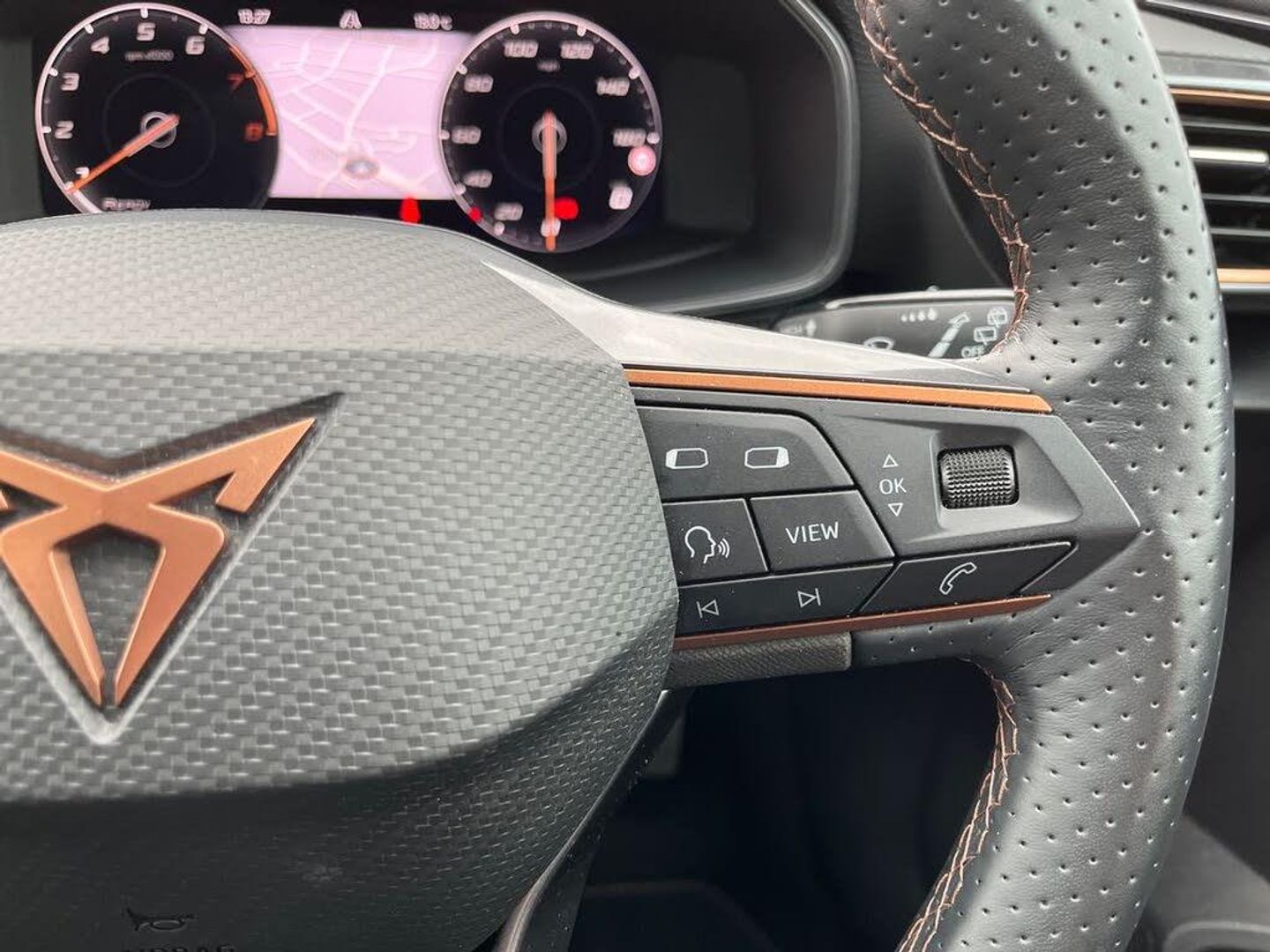 12V Power Supply in Centre Console 18in Alloy Wheels - Sport Machined - Black and Silver ABS - Anti-Lock Braking System Adaptive Cruise Control with Follow-to-Stop and Speed Limiter Anti-Theft Alarm System - Interior Monitoring - Backup Horn and Towing Protection Auto Dimming Rear View Mirror Brake Control System - ESC and Brake Booster Breakdown Kit CUPRA Black Brake Calipers CUPRA Connect - Safety - Service - Remote and Online CUPRA Drive Profile CUPRA Leather Flat Bottomed - Perforated Steering Wheel with Gearshift Paddles CUPRA Sports Bumpers Chrome and Copper Detailing Dark Tinted Rear Windows Digital Cockpit Door Mirrors Electrically Adjustable - Folding and Heated Driver and Front Passenger Airbags with Front Passenger Airbag Deactivation - Front Side and Curtain Airbag Drivers and Passenger Seats - Manual Height Adjustment Electric Front and Rear Windows Electronic Parking Brake Extended Safety System Five Headrests Folding Boot Cover Front Assist - Forward Collision Warning Braking Reaction to Vehicles - Pedestrians and Cyclists Front Centre Armrest Front Seats Manual Lumbar Adjustment Front and Rear Reading Lights - Four Front and Rear Seat Belt Reminders Full Link Smartphone Integration Headlining - Grey ISOFIX Points in Outer Rear Seats with Top Tether Anchorage Points Illuminated Front Door Sill Illuminated Sunvisor with Mirror Interior Ambient Lighting KESSY Advanced - Keyless Start - Keyless Entry LED Front Fog Lamps with Cornering Function LED Headlight LED Rear Fog Lamps Lane Assist Lockable Tailgate Media System Plus with Navigation Park Assist - including Front and Rear Sensors Power Steering Rain Sensing Wipers Rear Bench Seats with 60-40 Split and Armrest Rear Diffuser with Twin Exhaust Pipe on Each Side Rear View Camera Safety and Driving Pack M Separate Daytime Running Lights with Automatic Headlight Control and Coming Home Feature Seven Speakers Sports Seats Three Zone Climate Control Tiredness Recognition System Tool Kit - with Jack Tyre Pressure Monitoring System USB Type C x4 - x2 Front and x2 Rear Wireless Phone Charger