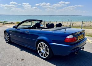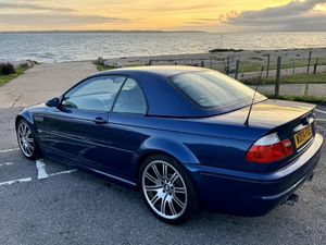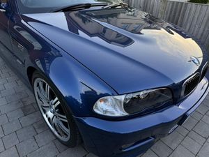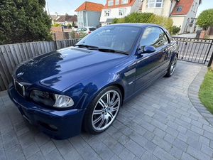 04 E46 M3 in Mystic blue fitted with matching hardtop and unmarked black soft top. This a fully documented low mileage car and has been in a private collection for many years having been kept in the owners dealership showroom. It has been fastidiously maintained with regular oil and brake fluid changes during this time when the owner has taken the opportunity to drive it. The black nappa leather interior and exterior body work are in superb condition. Everything works as it should. The car drives beautifully with a strong smooth 3.2 litre engine. It has had no mods or additions since manufacture.