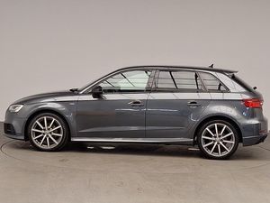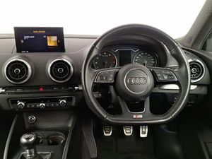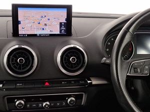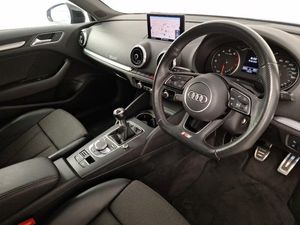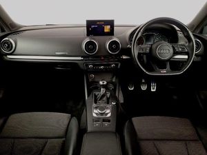 Voice recognition for navigation system, Dual zone electronic climate control, Audi connect, Audi drive select, Audi smartphone interface, Automatic start/stop system, Mobile telephone preparation - bluetooth interface, Speed limit display, Voice control system, Audi music interface, MMI radio plus with 7" colour MMI screen and MMI controller, DAB Digital radio, Electrically adjustable and heated door mirrors with integrated LED side indicators, LED daytime running lights, Privacy glass - dark tinted rear and rear side windows from B-pillar backwards, Adjustable front centre armrest, Isofix child seat preparation for front passenger/outer rear seats inc passenger airbag deactivation, Black styling pack - A3/S3, LED interior light pack - A3/RS3, Non smoking pack - A3, Storage and luggage pack - A3/RS3, Hill hold assist, Manual rear child locks, 18" 10 spoke design alloy wheels in matt titanium look with diamond cut finish
