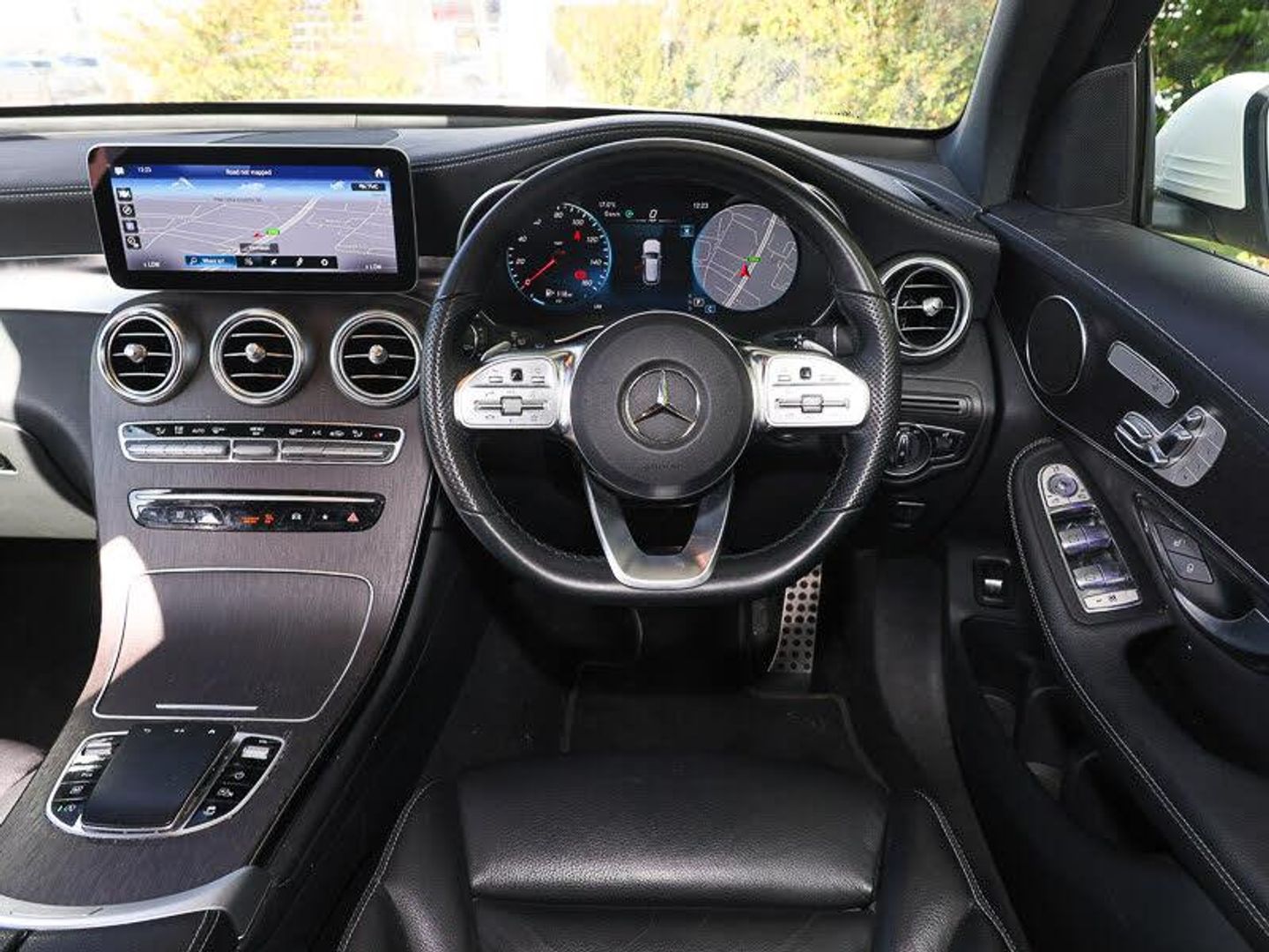360 degree camera, Active parking assist with parktronic system, DYNAMIC SELECT with a choice of driving modes (ECO, Comfort, Sport, Sport+ and Individual), Instrument cluster with12.3-inch digital instrument cluster display. High resolution instrument cluster screen with choice of three display styles, Smartphone integration with Apple CarPlay and Android auto, Traffic sign assist, 9G TRONIC plus automatic transmission with steering column gear selector, DIRECT SELECT steering wheel gearshift paddles, Sports suspension tuned for improved handling and driving dynamics, 4MATIC permanent four wheel drive, MBUX multimedia system with DAB digital radio and touchpad, Media display 10.25-inch touchscreen display, AMG bodystyling - AMG front apron with sporty air intakes and chrome trim element, AMG diffuser-look rear apron with insert in black, Electric panoramic glass sunroof, LED high performance headlamps with integrated LED daytime running lights, Radiator diamond grille, 3-spoke multifunction sport AMG steering wheel in black nappa leather with flattened bottom section, chrome insert and perforated leather in grip area, Ambient lighting, AMG sports seats, Artico man-made leather upper dashboard with contrast topstitching, Heated front seats, Interior lighting pack - GLC, Memory pack - GLC, Mirror pack - GLC, Storage pack - GLC, Keyless Go entry and starting function, Anthracite open pore oak wood trim, 20" AMG 5 twin spoke alloy wheels painted in titanium grey with high sheen finish