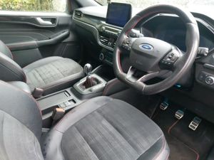 Heated Rear Seats, Heated steering wheel, LED daytime running lights, Rear parking sensor, 12.3" digital colour instrument cluster, Ford easy fuel, Ford SYNC 3 with 8" TFT LCD touchscreen, App Link, andriod auto/apple carPlay, emergency assistance and navigation with Ford pass connect, Front and rear parking sensors, Hands free power tailgate, Lane keeping aid with lane departure warning, Power assist steering, Rear view camera, Selectable drive modes, Service interval indicator, Twist beam rear suspension, Sports suspension, B&O premium audio system with 10 speakers and subwoofer, 2 USB ports, DAB radio/CD, Auto headlamps with high and low beam, Black roof rails, Day/night rear view mirror, Front LED fog lamps, Large rear spoiler, LED daytime running lights, LED rear lights, Power folding heated door mirrors with puddle lights, Power front/rear windows with global close, Power opening panoramic roof, Privacy glass, Quickclear heated windscreen, ST Line body styling kit with unique front and rear fascia and bumper, rear painted diffuser, front painted skid plates, dark mesh upper grille, ST Line front scuff plates, Third brake light