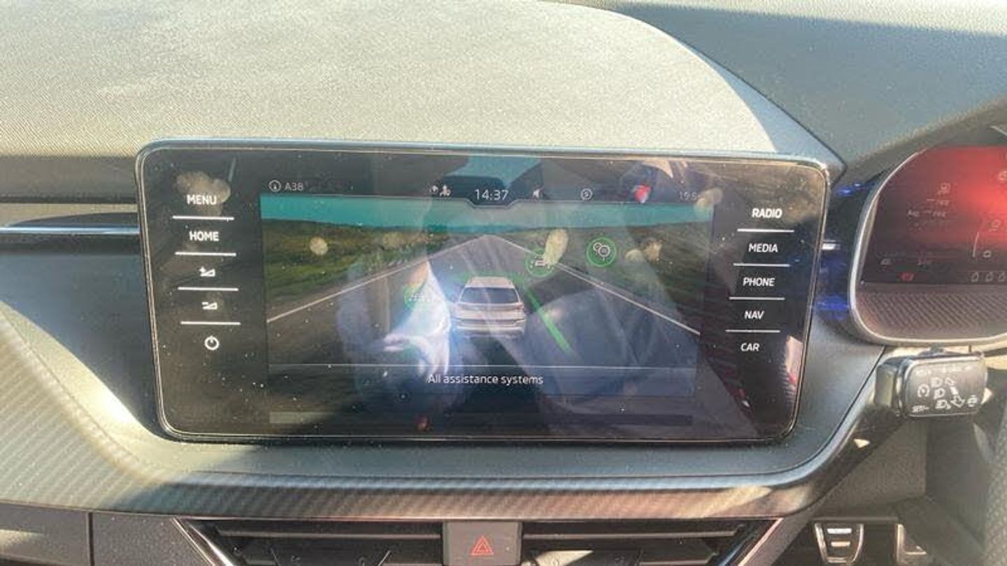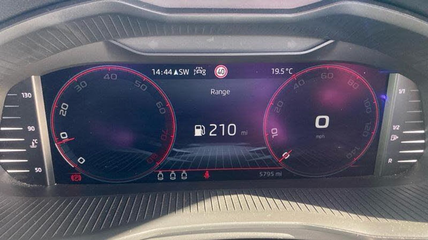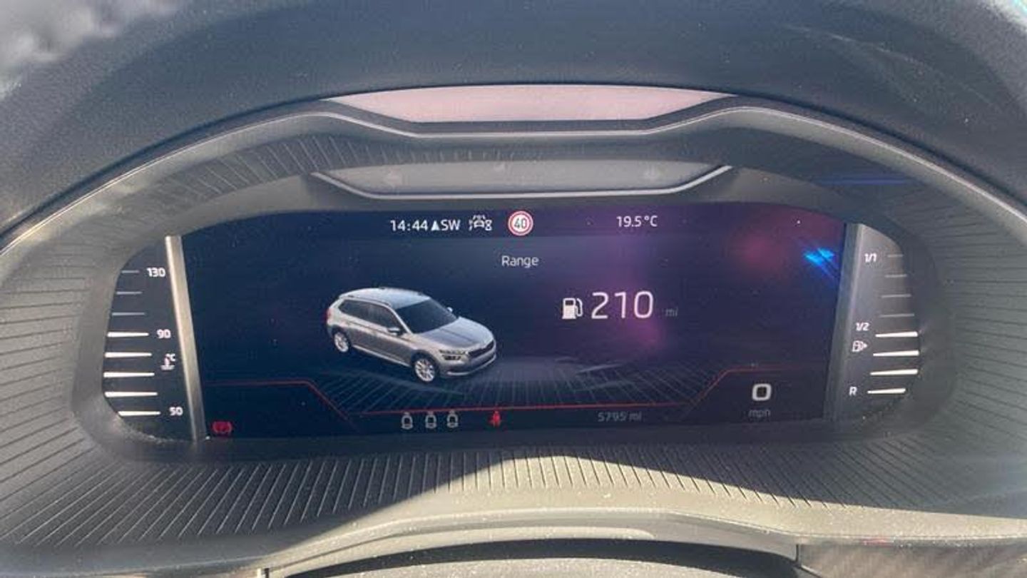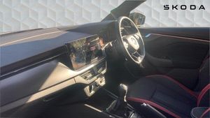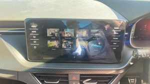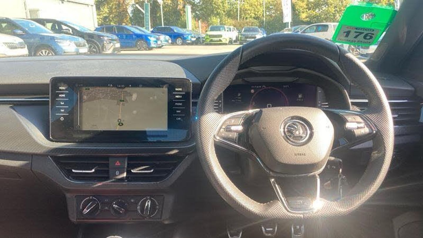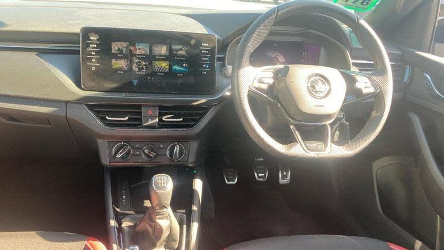 Metallic paint, Front and rear parking sensors, Metallic - Graphite grey, Cloth - Black with Red trim, Heated rear window, Rain sensor, Rear wiper, Black radiator grille, Black rear diffuser, Body colour bumpers, Body colour door handles, Body colour roof spoiler, Boot lettering in black, Chrome grille surround, Front sport bumper, Rear side wing doors, Full LED headlights with adaptive front light system, cornering function, fog lights and dynamic indicators, Headlight range control, High functionality rear led lights with dynamic indicators, LED daytime running lights, LED third brake light, ESP, Hill hold control, Traction control, Front assist system, PAS, Black door mirrors, 3x3 point rear seatbelts, Airbags - driver and front passenger, Front passenger airbag deactivation switch, Front side airbags with curtain airbags, Manual rear child locks, Seatbelt reminder for driver an co-driver, Tyre pressure monitor, 12V Accessory socket in centre console, Black ceiling for black/beige interior, Chrome inner door handles, Cloth upholstery, Glove compartment with illumination, Leather gear lever, Rake/reach adjustable steering wheel, Umbrella in driver's door, Reading lights, Sun visors with illumination on front passenger, Bluetooth system, 8 Speakers, Auxiliary input socket, DAB Digital radio, Amundsen satellite navigation with 9.2 glass colour touchscreen display, web radio, voice control and traffic sign recognition, Service indicator, Wireless Smartlink for Apple CarPlay (wired for Android Auto), Chrome air vent surrounds, 3 seat bench in 2nd row, Front head restraints, Height adjustable front passenger seat, Isofix child seat fittings on outer rear seats, ISOFIX on front passenger seat, Single front passenger seat, Sports seats, Anti-theft alarm system with interior monitoring, backup horn, towing protection and remote central locking with SAFE system, Anti-theft wheel bolts, Electronic engine immobilizer, 18 Vega alloy wheels in black, [Audio and Communications]E-call, [Drivers Assistance]Cruise control, [Exterior]Front and rear electric windows, Privacy glass, Monte carlo plaque, Panoramic sunroof with black roof rails, Rear fog lights, Electrically adjustable and heated door mirrors, [Interior]Dual zone climate control, Light sensors, KAMIQ Door sills, Manual parking brake, Dimming rear view mirror with black surround, Textile floor mats, Aluminium pedals, Black roof lining, Ice scraper, Gesture control, Manual lumbar support for front seats, Third rear headrest, [Performance]Speed limiter, [Safety and Security]Rear disc brakes, One tone horn, Top tether for front passenger seat