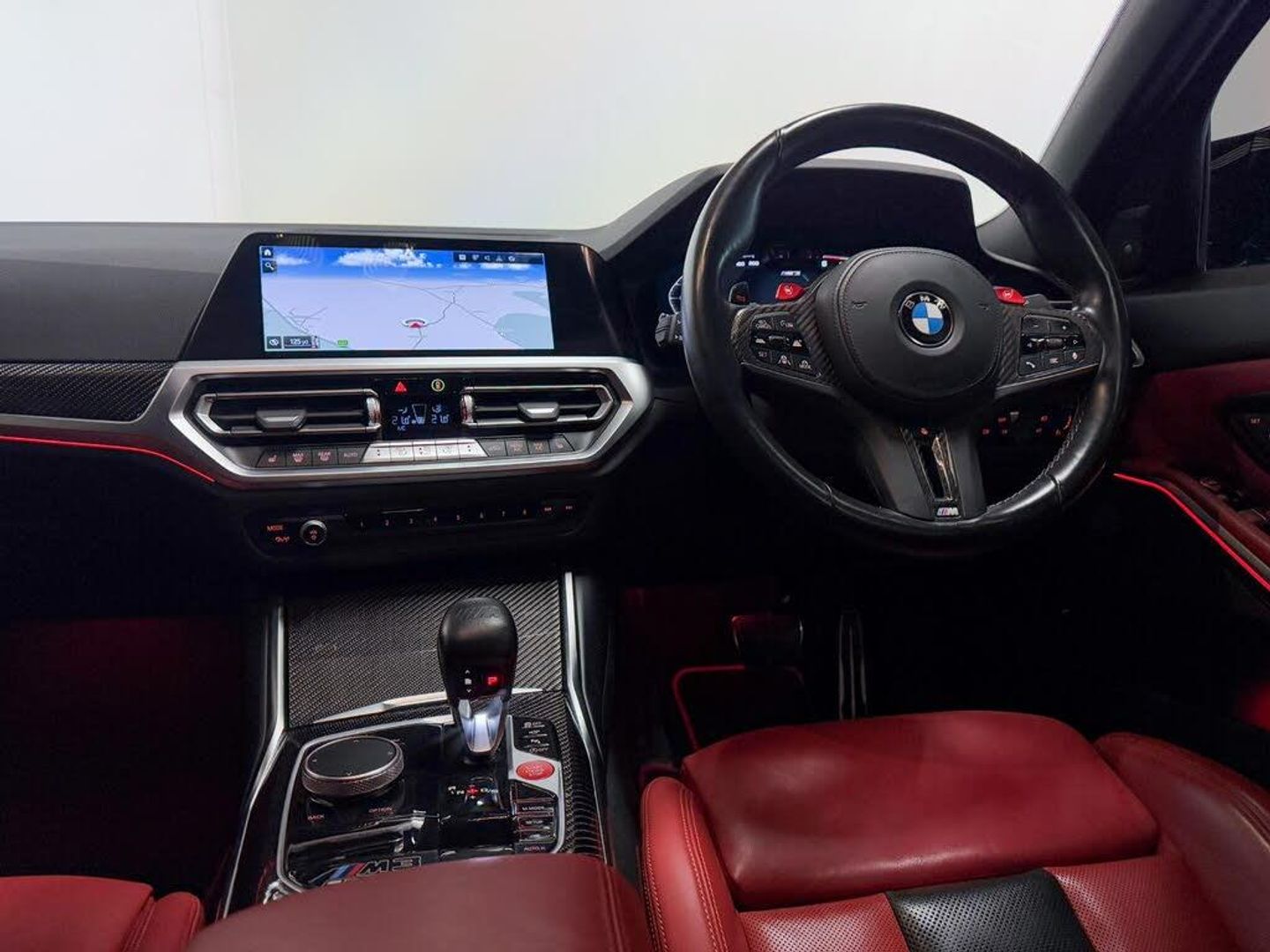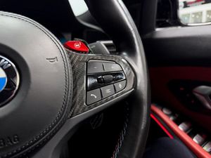 19in Front - 20in Rear Alloy Wheels - M Double Spoke - 826 - Forged - Jet Black with Mixed Tyres, Acoustic Glazing, Active Guard Plus, Air Conditioning - Automatic with Three-Zone, Airbags, Alarm, Ambient Lighting, Armrests, Automatic Start-Stop Button, BMW ConnectedDrive Online Services, BMW Emblem on Engine Compartment Lid and Tailgate, BMW Emergency Call, BMW Individual Lights - Shadowline, BMW Kidney - Frameless with Horizontal Double Grille Slates - Black High-Gloss with Model Badge, BMW Live Cockpit Professional, BMW TeleServices, Battery in Luggage Compartment, Bumper System, Centre Armrest in Rear - Folding with 2 Cup Holders, Centre Lock Switch, Closing System with Central Locking, Condition Based Service, Connected Package Professional, Crash Sensor, Cruise Control including Speed Limiting Function - LIM Button, Cupholder, DAB Digital Radio, DSC - Dynamic Stability Control Plus, Door Sill Finishers with Aluminium Inserts and Model Inscriptions, Double-Jointed Spring-Strut Front Axle, Driving Assistant, Driving Experience Switch, Electric Memory Seats, Electric Vehicle Immobiliser, Electric Window, Electro Mechanical Parking Brake, Enhanced Bluetooth and Wireless Charging, Extended Storage, Exterior Mirror Caps and Rear Spoiler in High-Gloss Black, Exterior Trim - Extended High Gloss Shadowline, Exterior Trim - High-Gloss Shadowline, Floor Mats - Velour, Folding Wing Mirrors with Auto-Dimming, Follow-Me-Home Function, Front Lumbar Support, Front and Rear Apron Plastic in Body Colour, Galvanic Controls, Glove Compartment - Illuminated, Harman Kardon Surround Audio Sound System, Head-Up Display, Headlight Beam-Throw Control, Headlining - Anthracite, Heat Protection - Sun Protection Glazing, Heated Seats - Front, High-Beam Assistant, Illuminated Bow-Type Door Handles - in Body Colour - Drivers Side with Door Lock, Interior Trim - Black High Gloss, Interior Trim - Carbon Fibre, LED Rear Lights, Language Version English, Lower Edges of Bumpers - Side Sills - Edge Binding of Diffuser and Diffuser in Black High-Gloss, Luggage Compartment Lights, M Adaptive Suspension, M Compound Brakes with Red High Gloss, M Drive, M Drive Professional, M Seat Belts, M Sport Differential, M Sport Seats, M Steering Wheel, Model Badges in Black, Model Logo - Rear Right M3 Competition Inscription, Multifunction for Steering Wheel, Oil Sensor For Level and Grade, Parking Assistant, Power Socket - 12V, Power Sockets, Rear Backrest - Foldable and Dividable by 40-20-40, Rear Folding Headrests, Rear-View Mirror with Auto-Dimming, Reversing Light, Roof Aerial Bulge and Roof Mouldings in Black High-gloss, Runflat Indicator, Safety Battery Terminal Clamp, Shifting Point Display, Side Impact Protection, Smartphone Integration, Steering Column Adjustment, Strakes in Front Side Panel - Black Matt-Black High-Gloss with Model Badge, Sun Protection Glazing, Sun Visors with Ticket Holder and Illuminated Vanity Mirror, Tailpipe Finishers in Black Chrome, Third Brake Light, Through-Loading System, Tool Kit Located in Luggage Compartment, Tyre Pressure Sensors, Tyre Repair Kit, Variable Sport Steering, Warning Triangle, Washer Jets - Heated, Welcome Light, WiFi Hotspot, Technology Plus Pack, Visibility Pack, Individual Extended Merino Leather - Fiona Red, Steering Wheel - Heated, Parking Assistant Plus, Drive Recorder, Comfort Pack, Dravit Grey